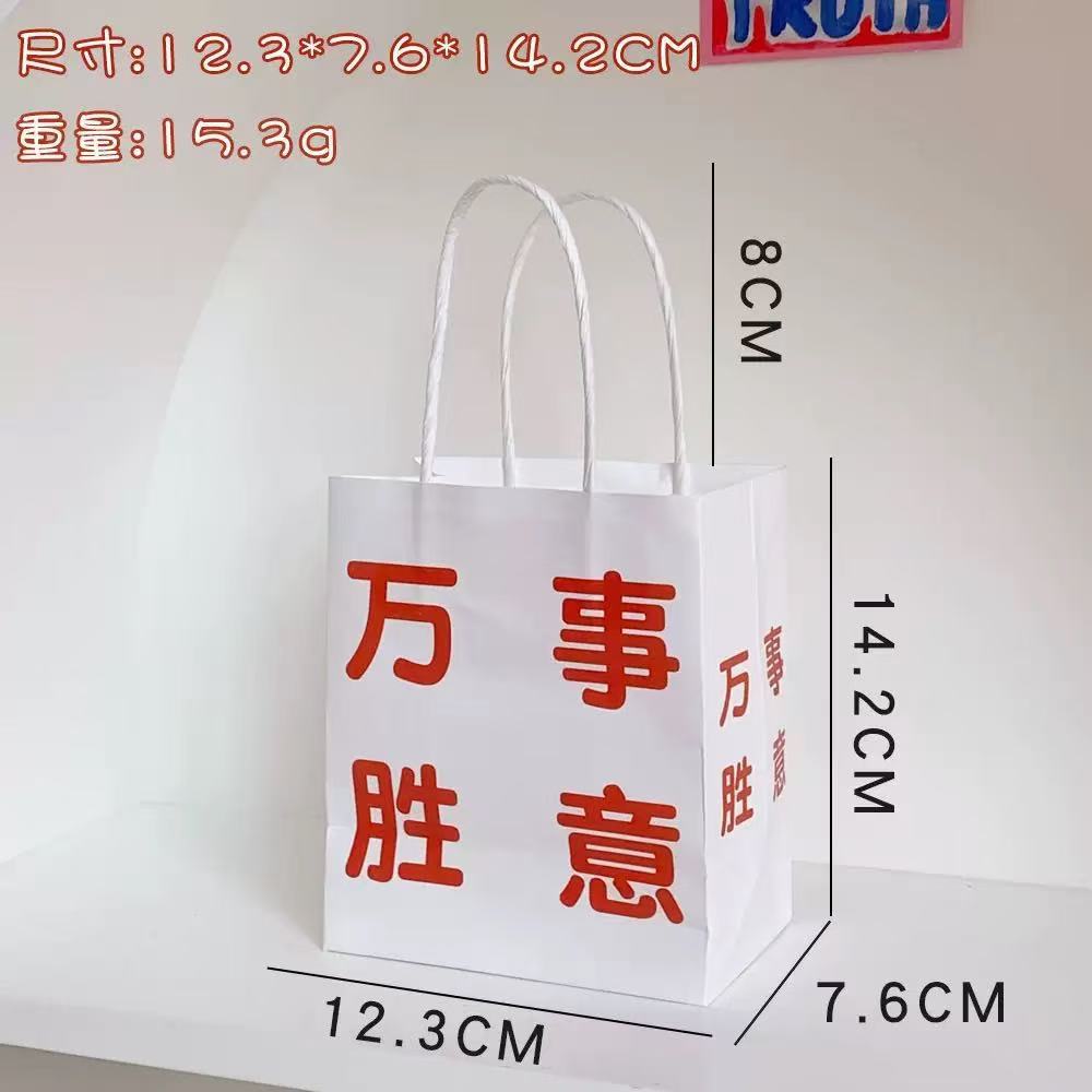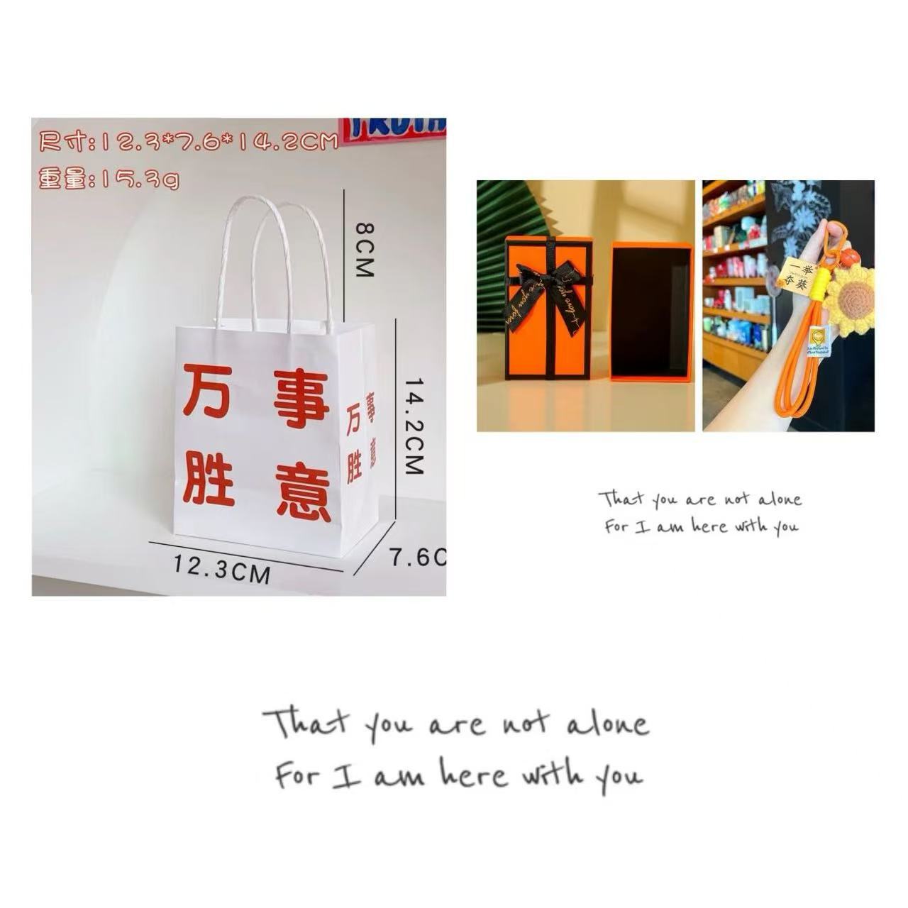 Стиль 1-подарочная коробка оранжевого цвета; длина 13 см х ширина 7 см х высота 4,6 см; Стиль 2-подвесная коробка [оранжевая]; длина 11см х 11см х высота 2см; Стиль 3-подвесной ящик [зеленый]; длина 11см х 11см х высота 2см; Стиль 3-подвесная коробка [красная]; длина 11см×11см×высота 2см; Стиль 4-Сумочка [Все будет успешно]; длина 12,3 см × ширина 7,6 см × высота 14,2 см; Стиль 4-Сумочка [подарок]; длина 12,3 см х ширина 7,6 см х высота 14,2 см