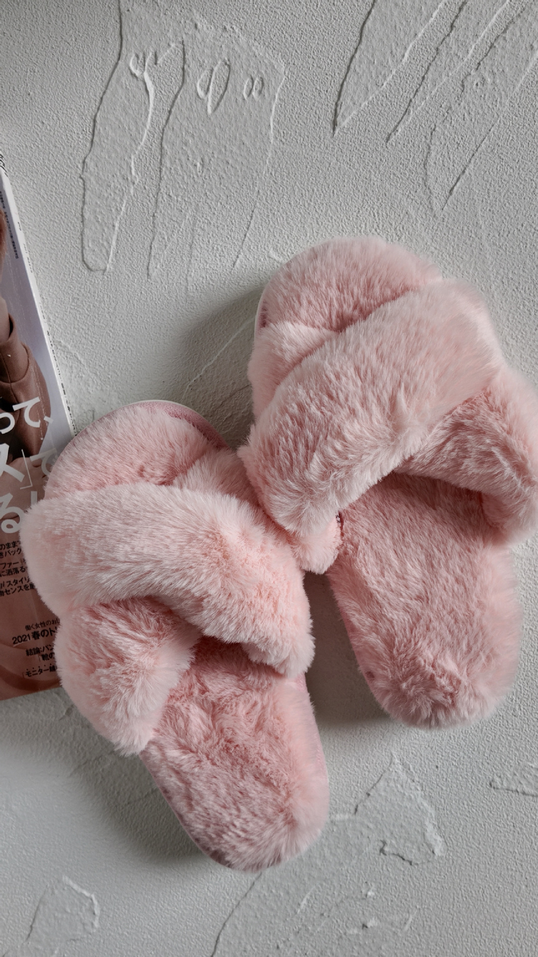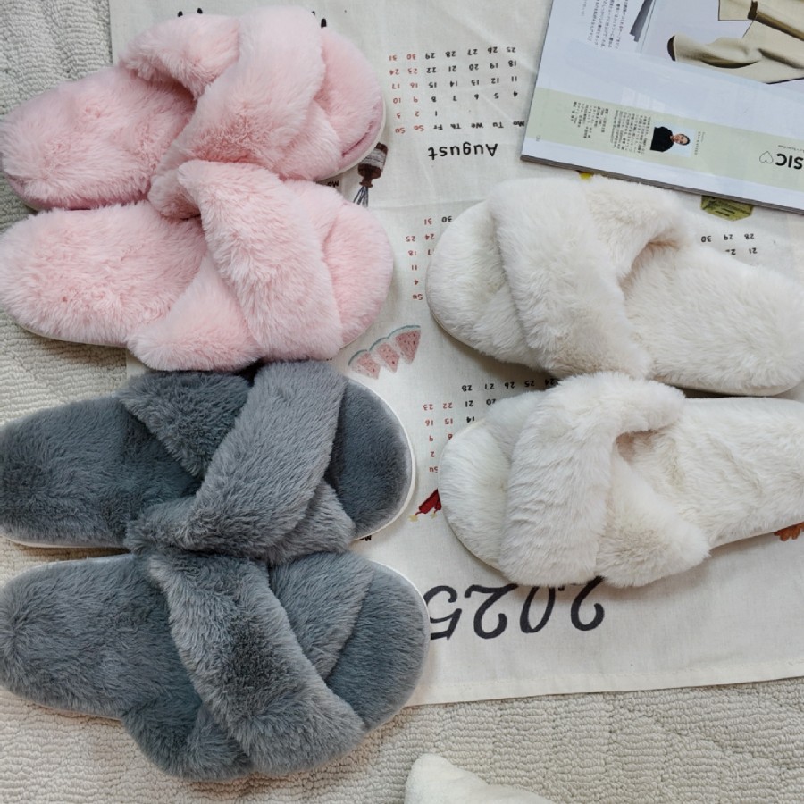 外贸出口毛绒交叉家居拖鞋