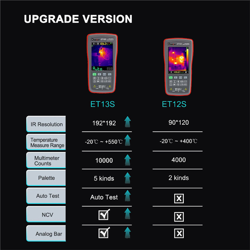 TOOLTOP ET13S обновленная версия с разрешением 192*192, тепловизор, 9999, счетный мультиметр 2 в 1
