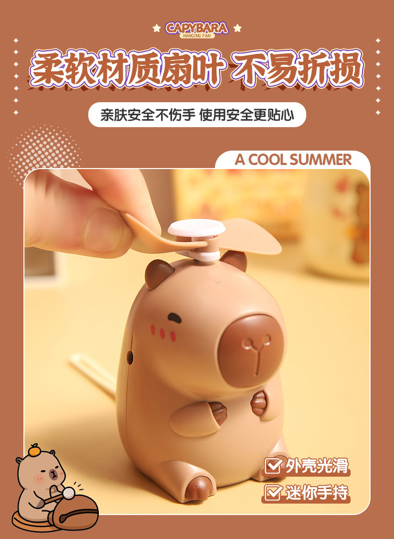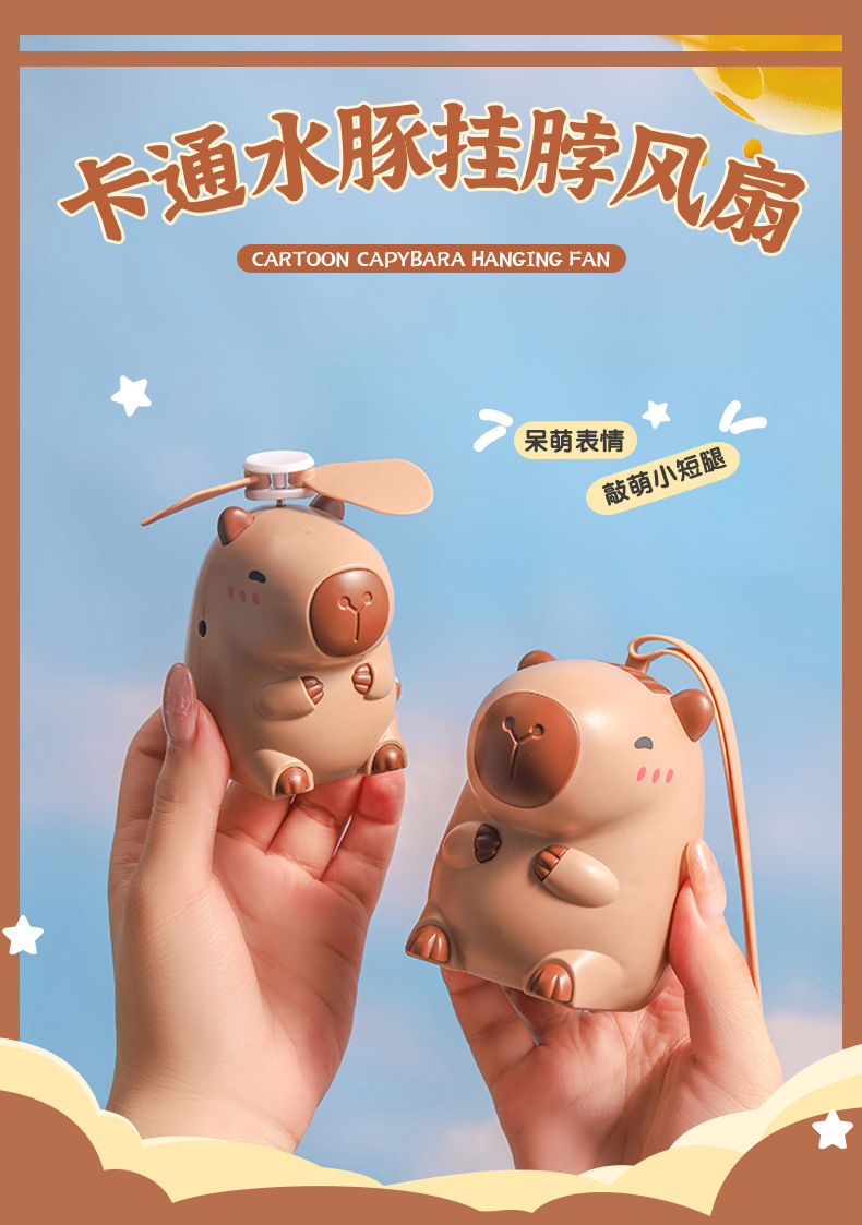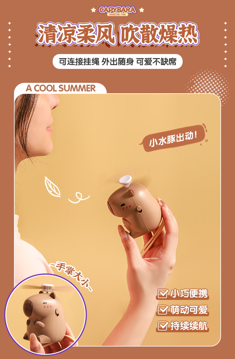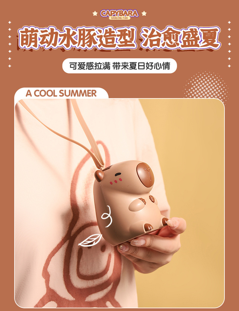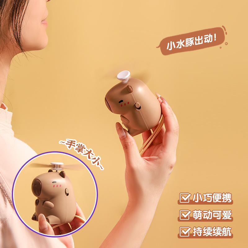 Капибара usb зарядный маленький вентилятор мини портативный детский мультфильм капибары висит шея маленький вентилятор