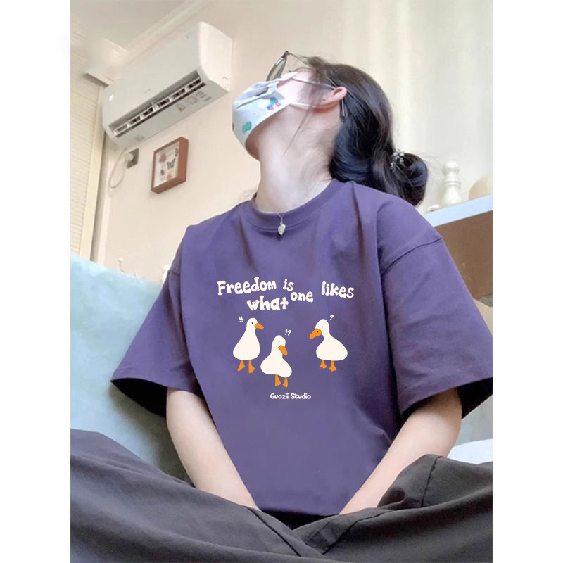 100% хлопок допамина Фиолетовая футболка с короткими рукавами женская летнее лето 2025 новый американский ретро свободный тонкий топ