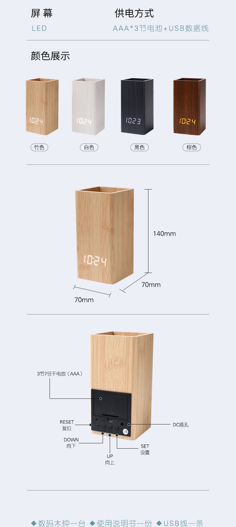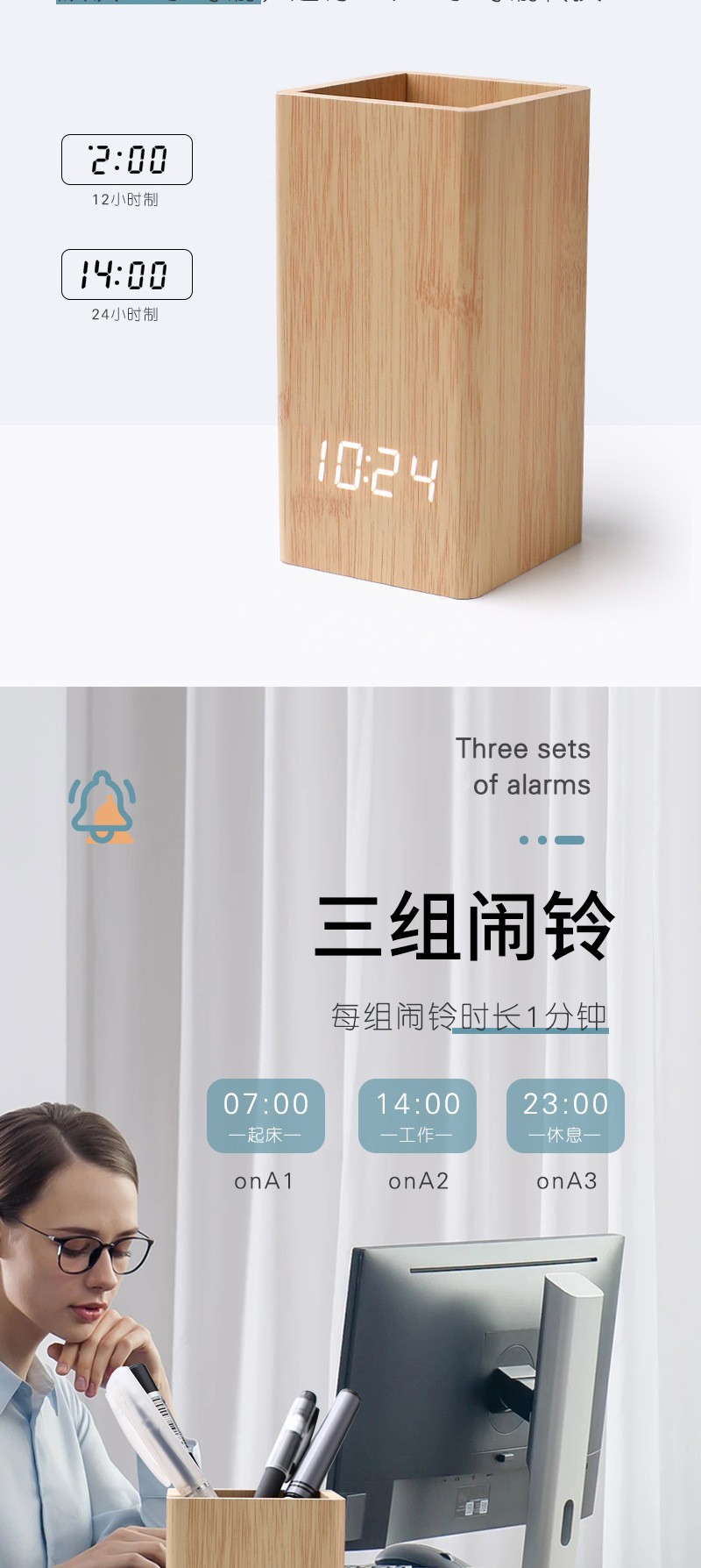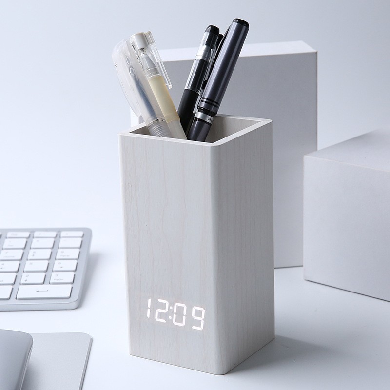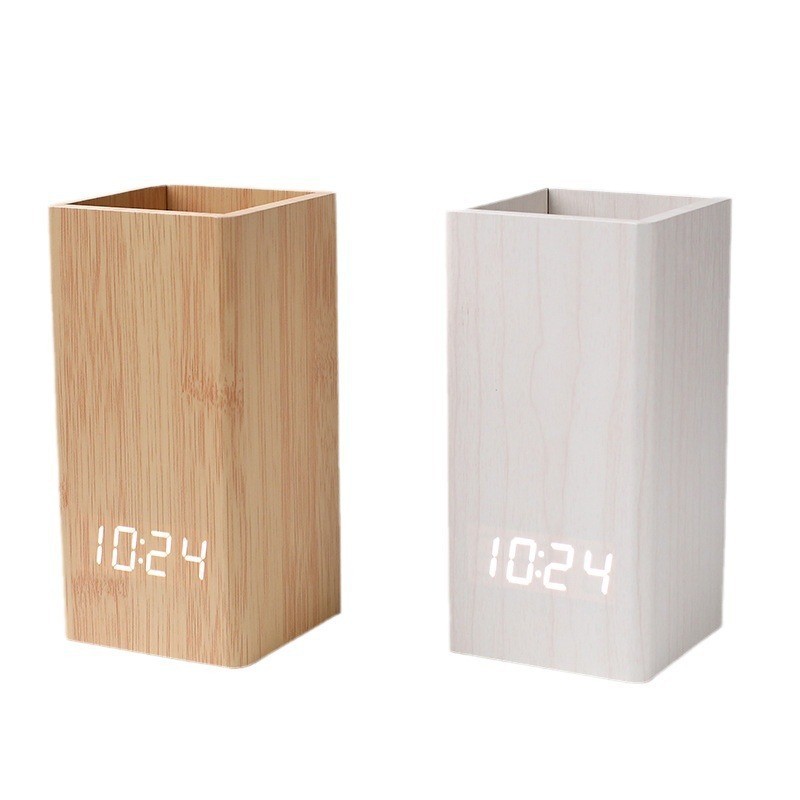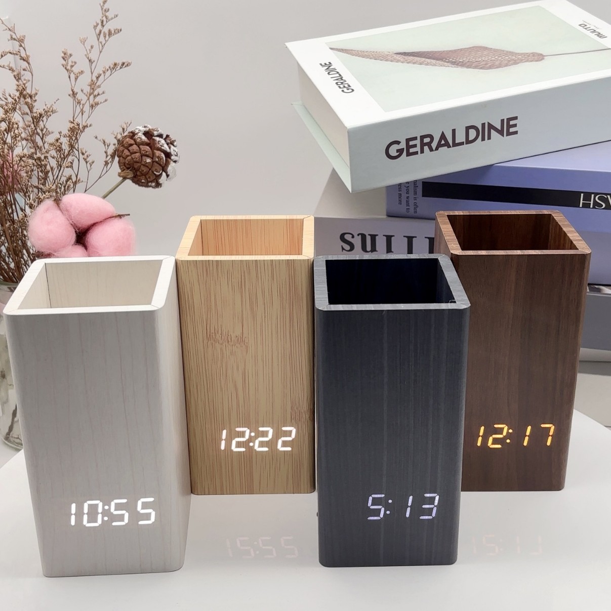 Простые деревянные настольные LED-часы, электронные деревянные часы, офисный декор, подставка для ручек, студенческий будильник, LED-будильник