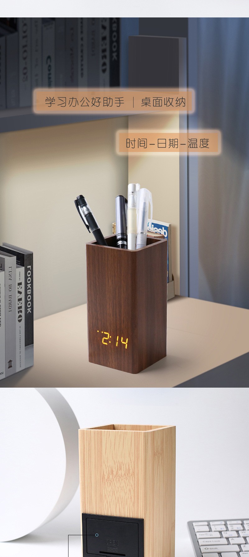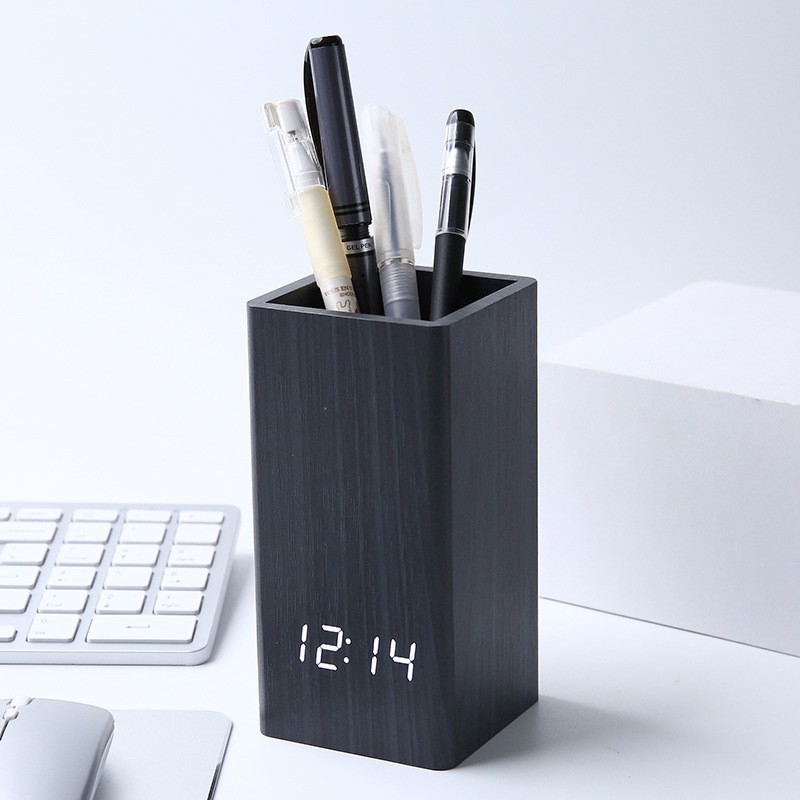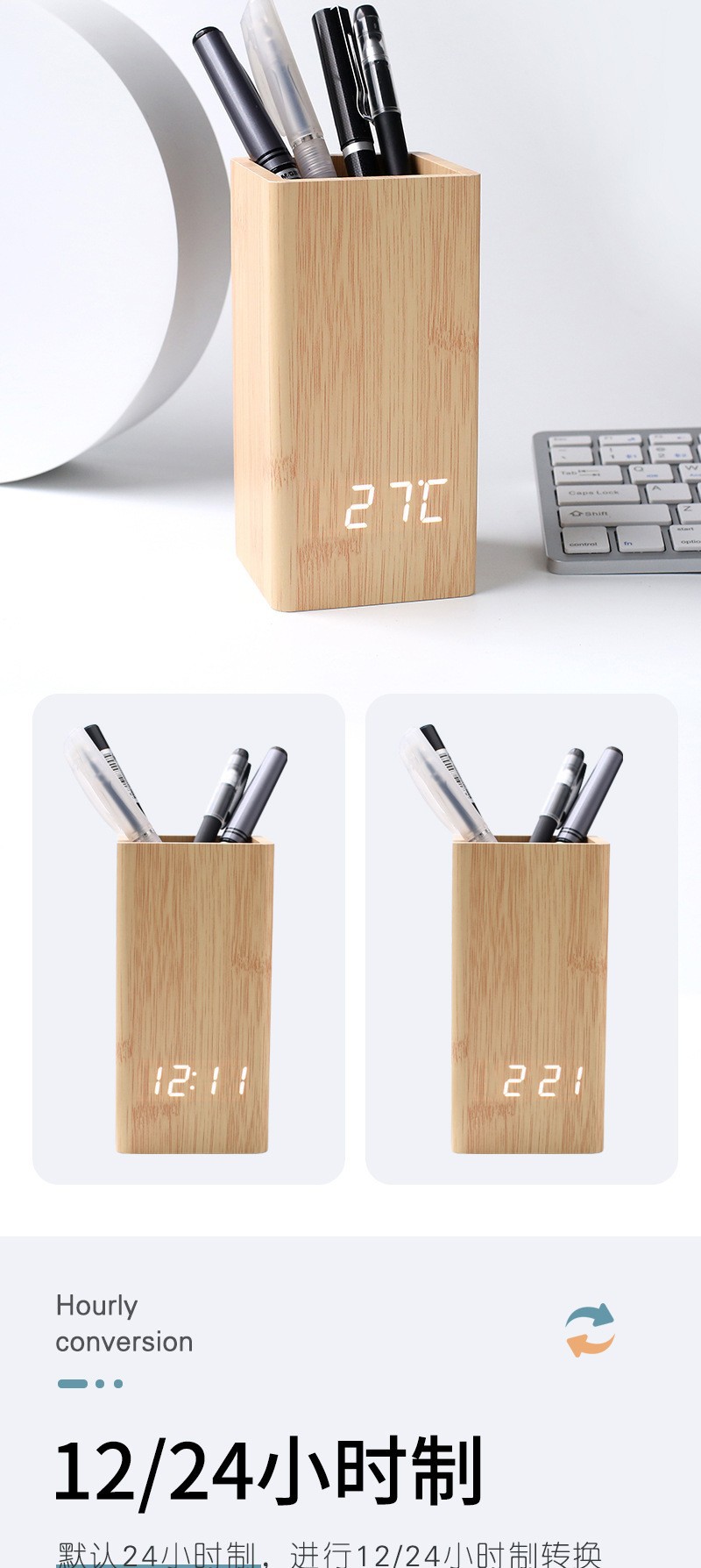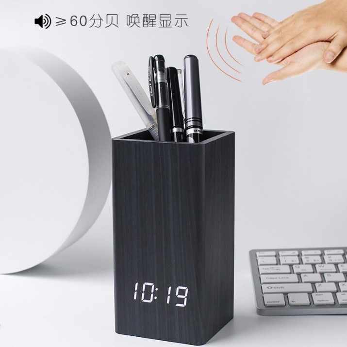 Простые деревянные настольные LED-часы, электронные деревянные часы, офисный декор, подставка для ручек, студенческий будильник, LED-будильник