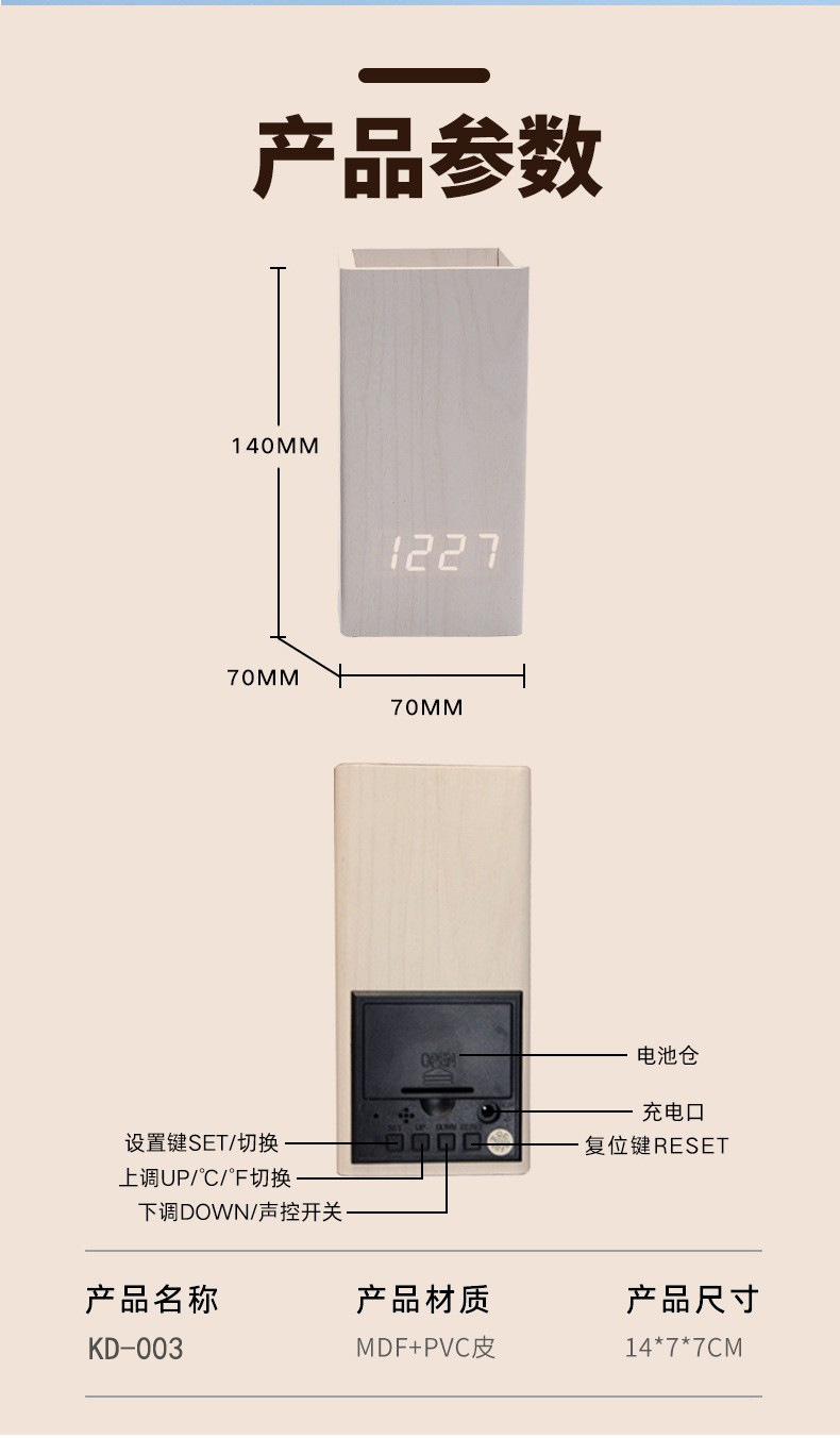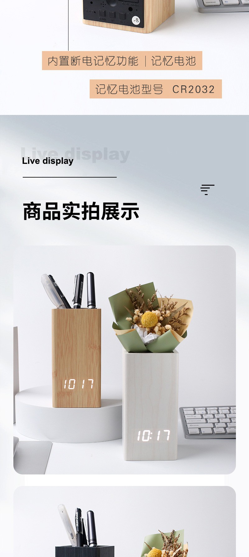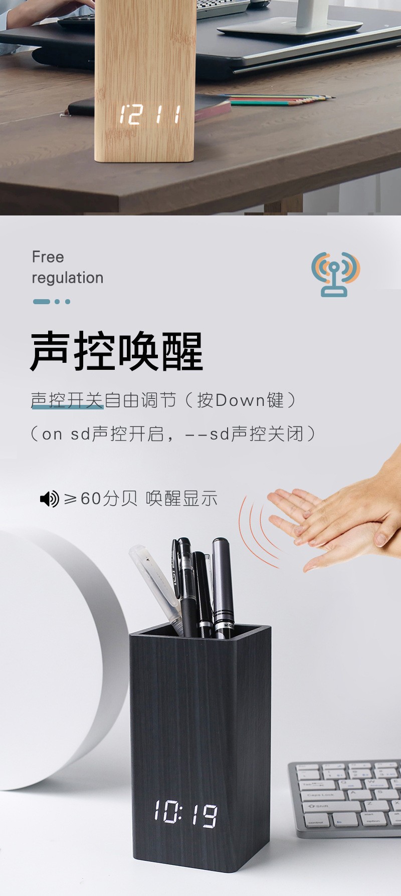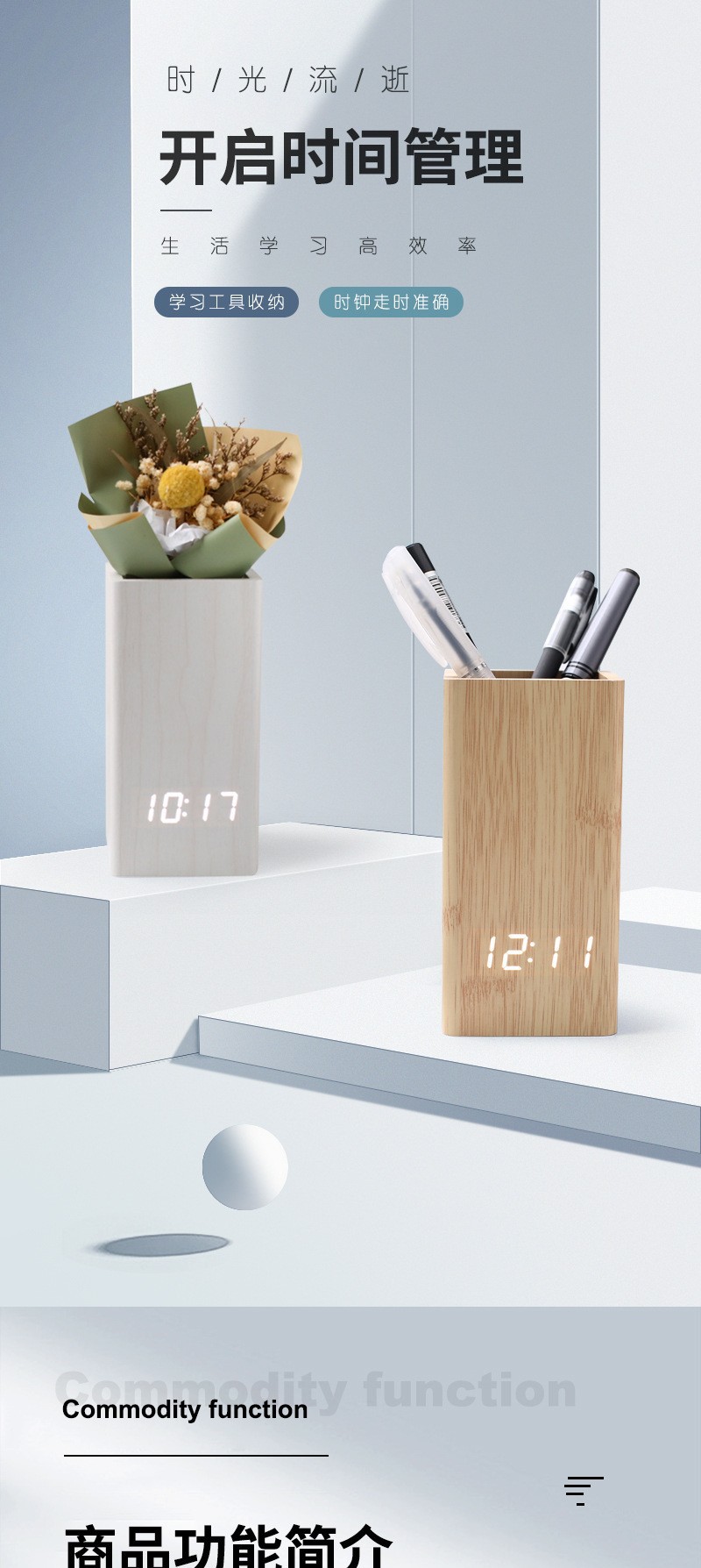 Простые деревянные настольные LED-часы, электронные деревянные часы, офисный декор, подставка для ручек, студенческий будильник, LED-будильник