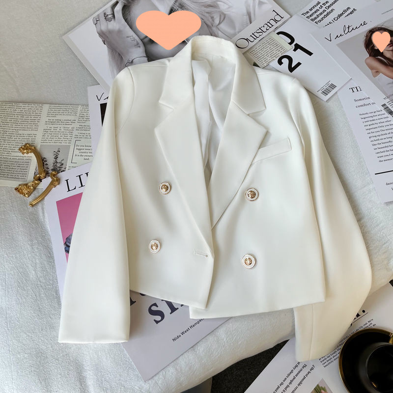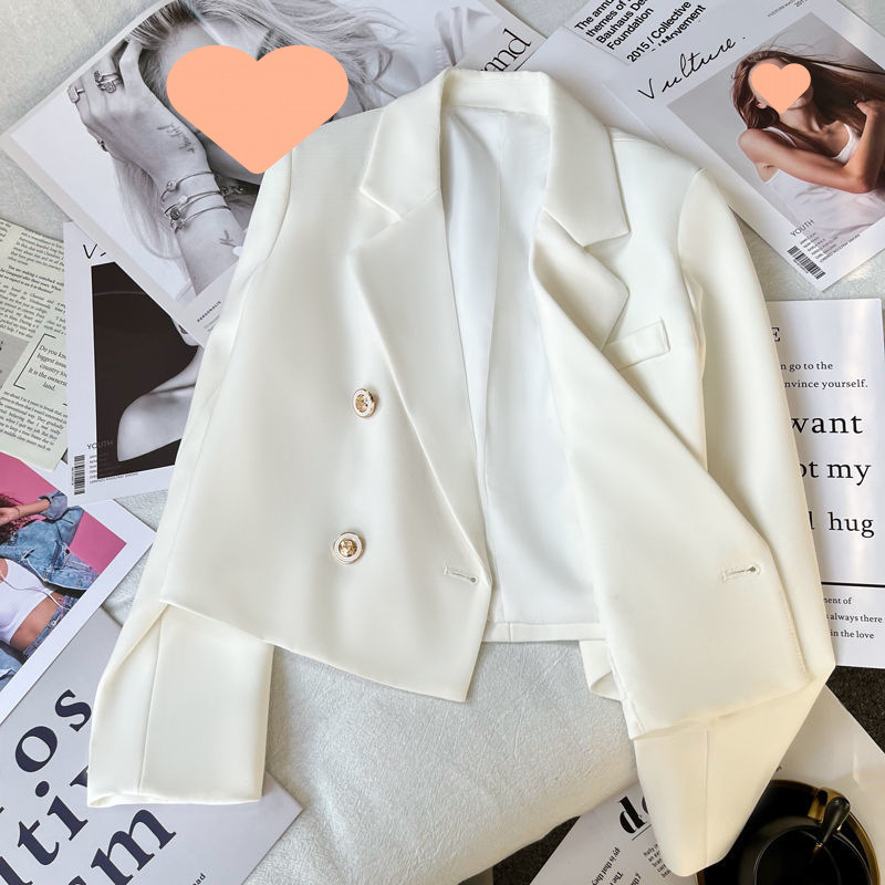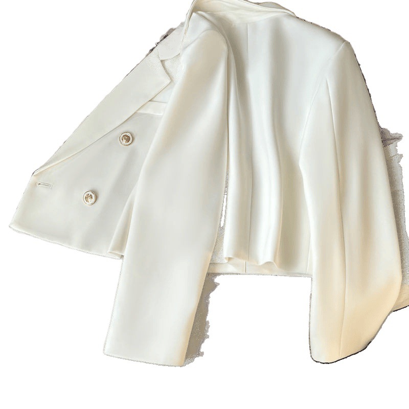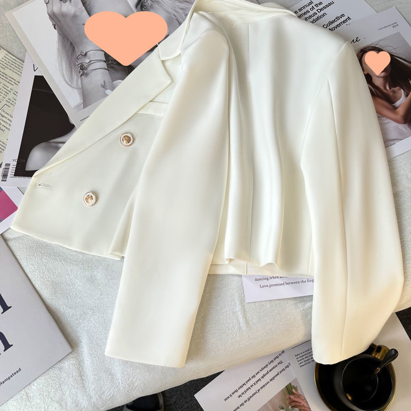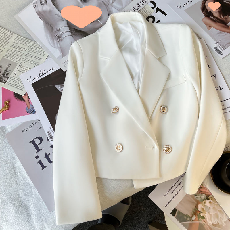 Женский белый двубортный блейзер, приталенный, однотонный, миниатюрный, элегантный, с длинными рукавами, короткий костюм, весна 2025