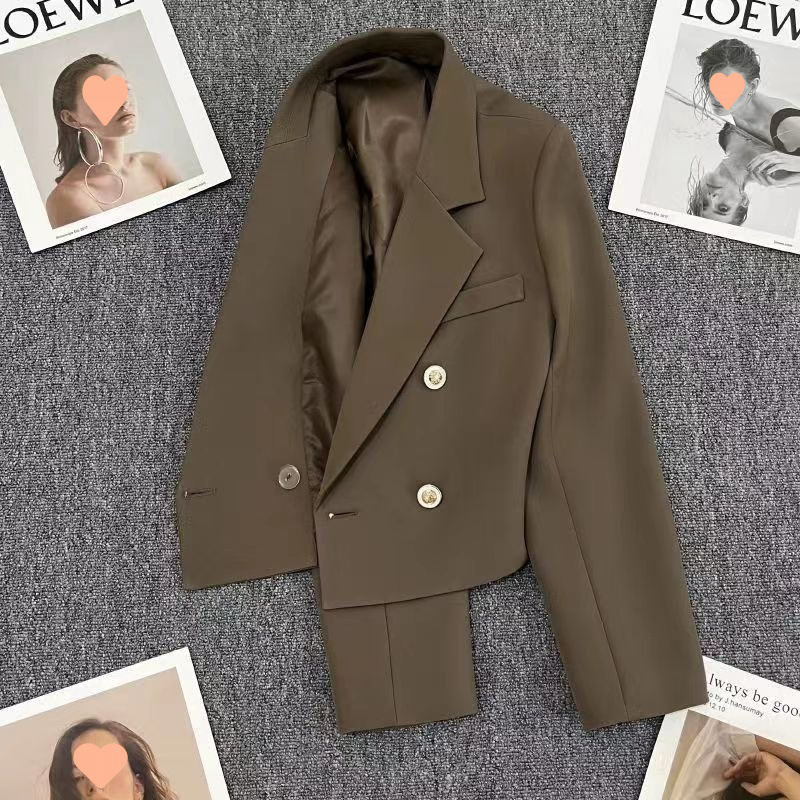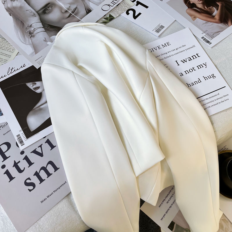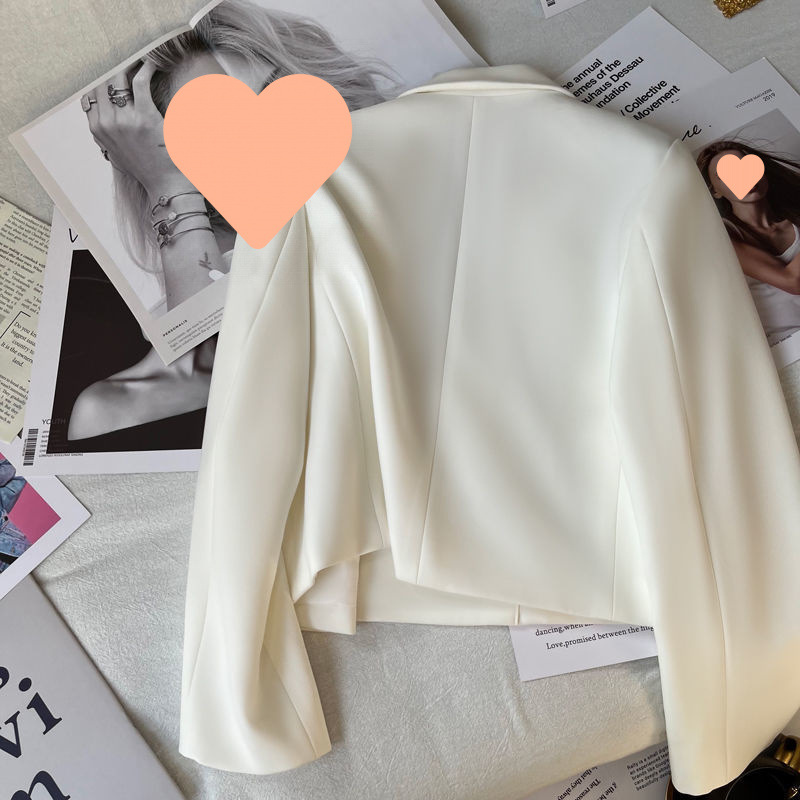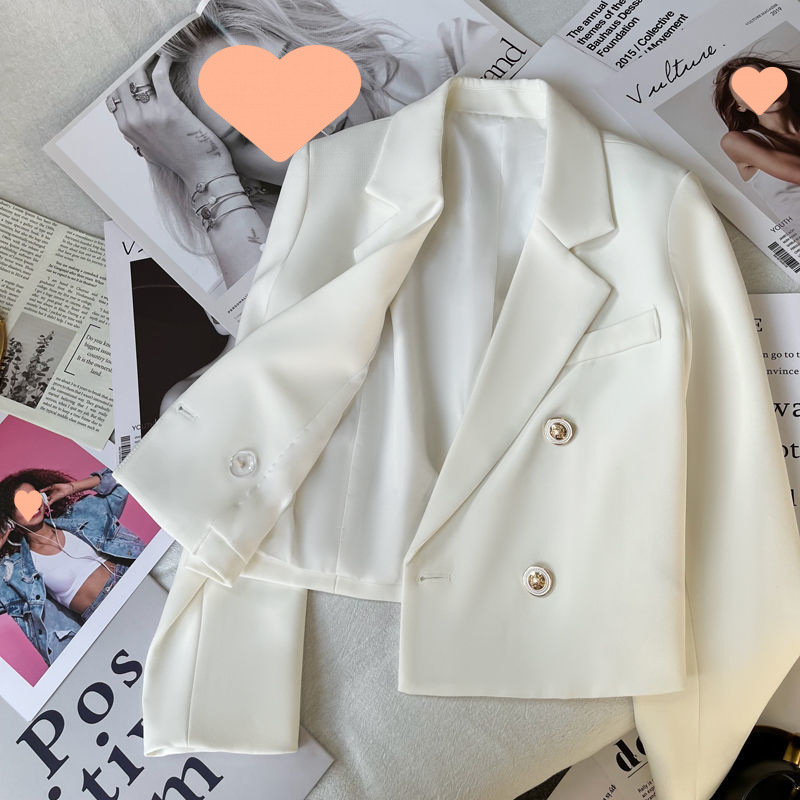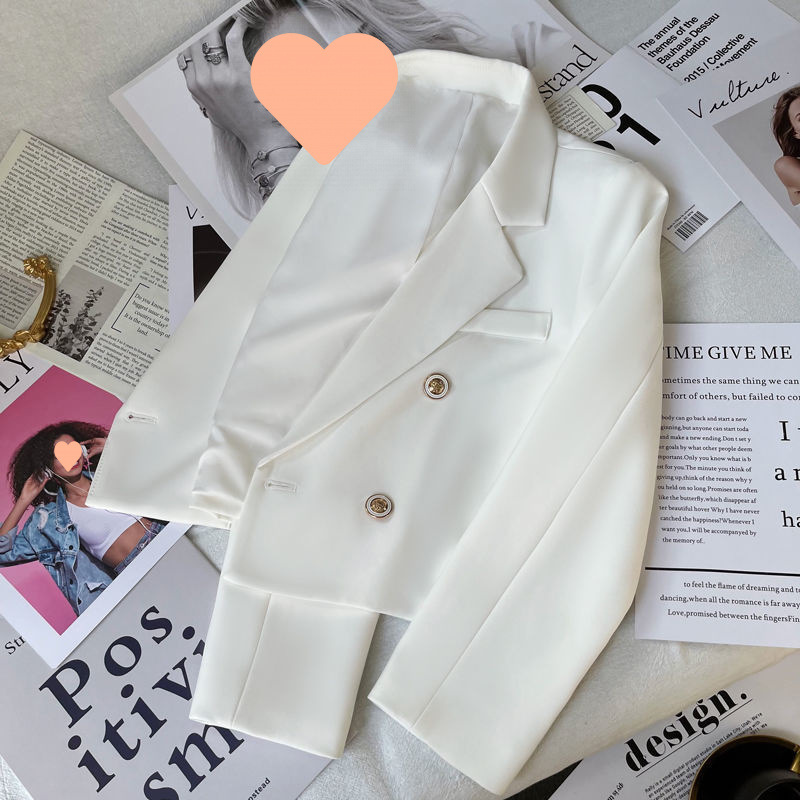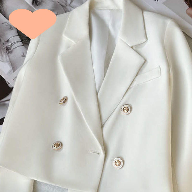 Женский белый двубортный блейзер, приталенный, однотонный, миниатюрный, элегантный, с длинными рукавами, короткий костюм, весна 2025