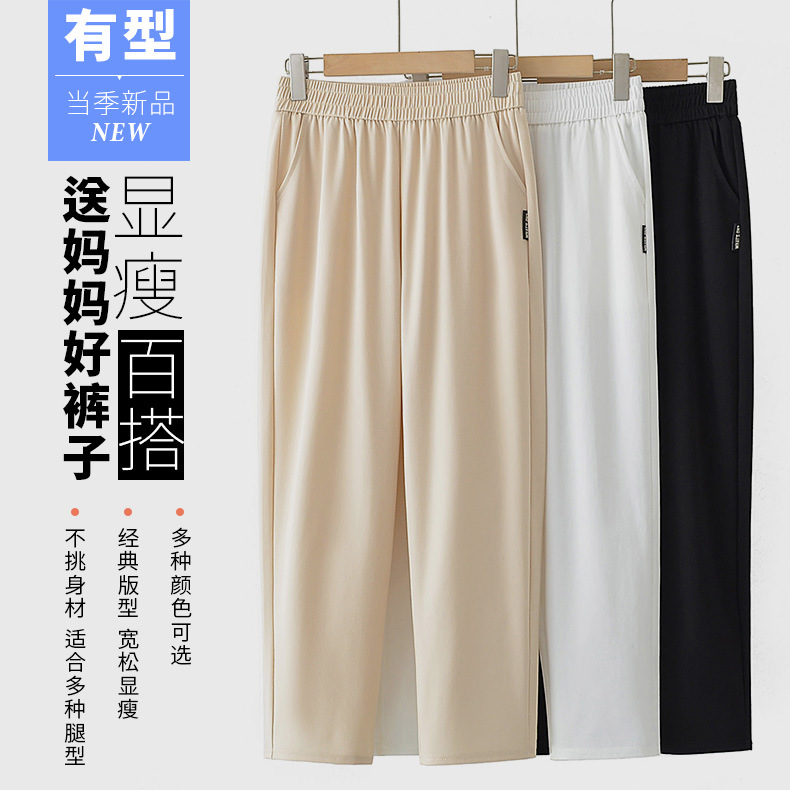 Модные женские брюки среднего возраста Летние тонкие дышащие мамы брюки модные брюки для детей 40-60 лет