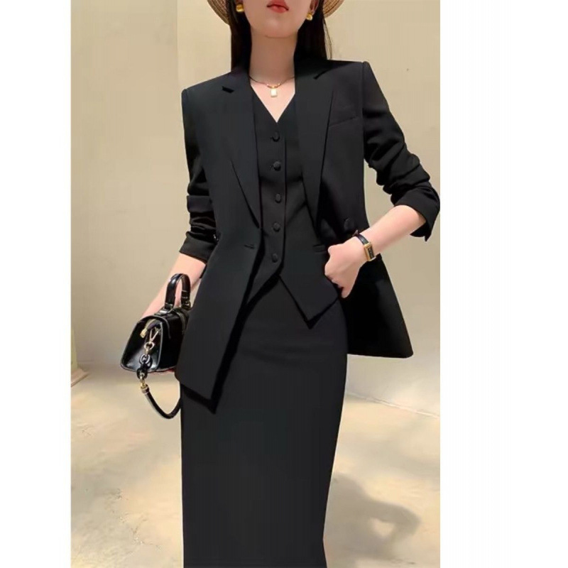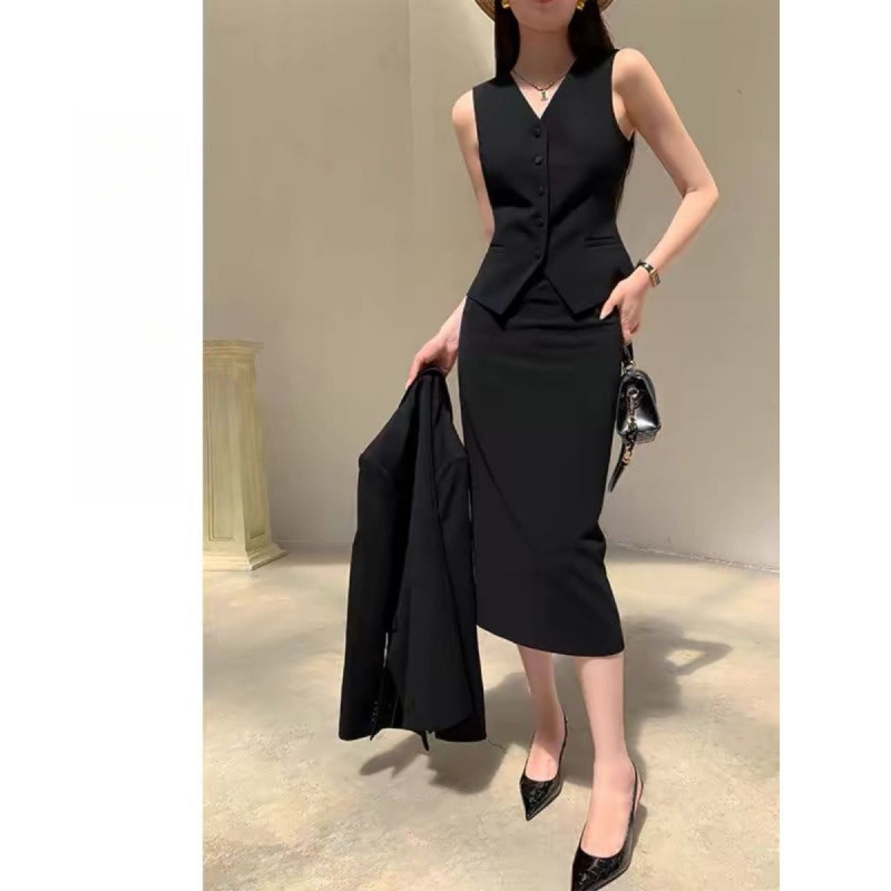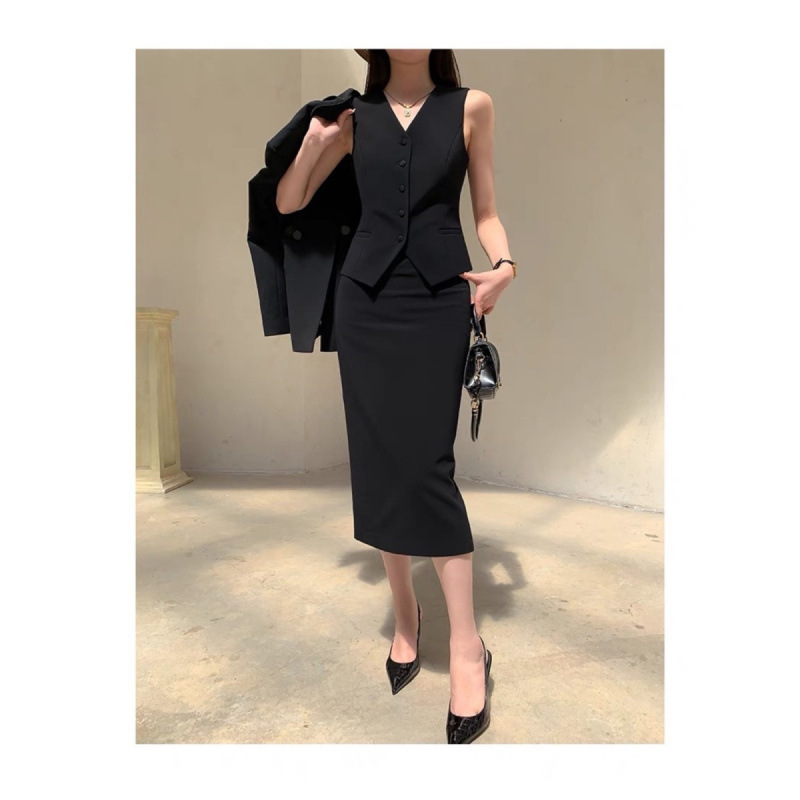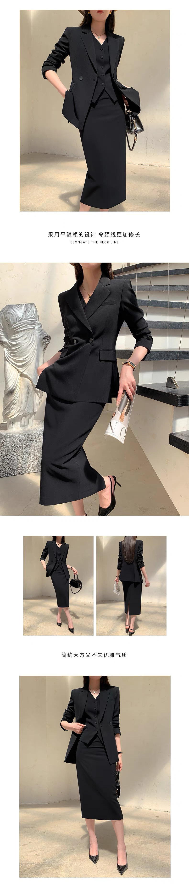 Весенний костюм 2025 года, юбка, жилет, трёхпредметный профессиональный элегантный деловой костюм высокого класса чёрного цвета