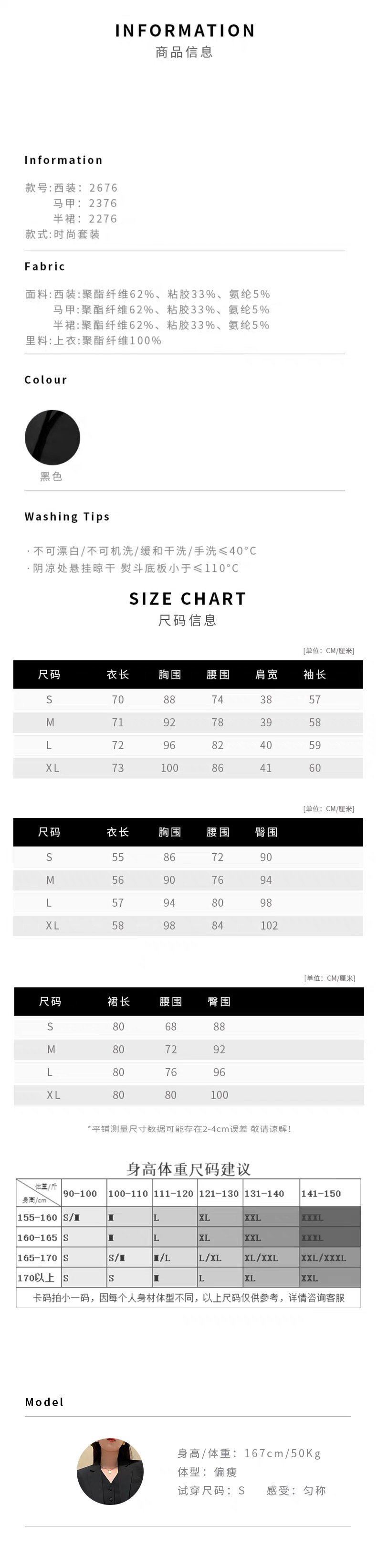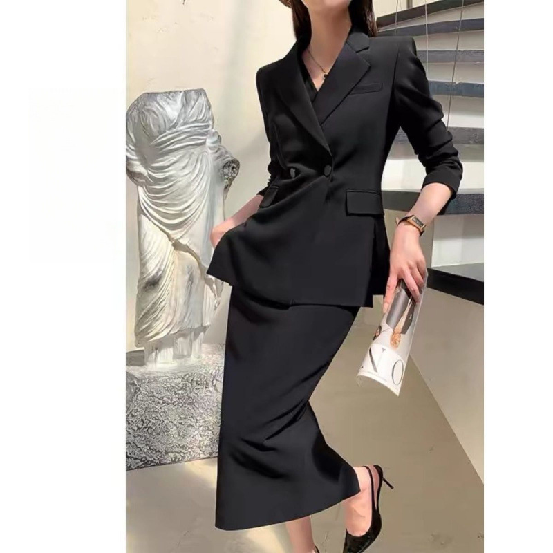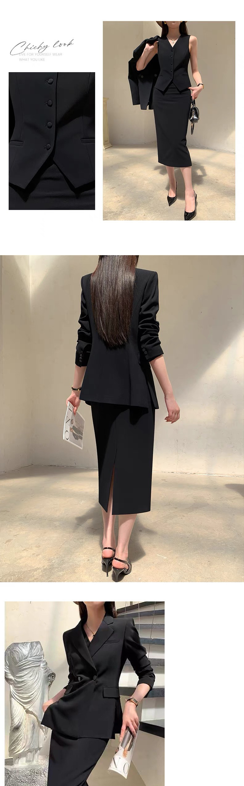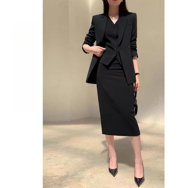 Весенний костюм 2025 года, юбка, жилет, трёхпредметный профессиональный элегантный деловой костюм высокого класса чёрного цвета