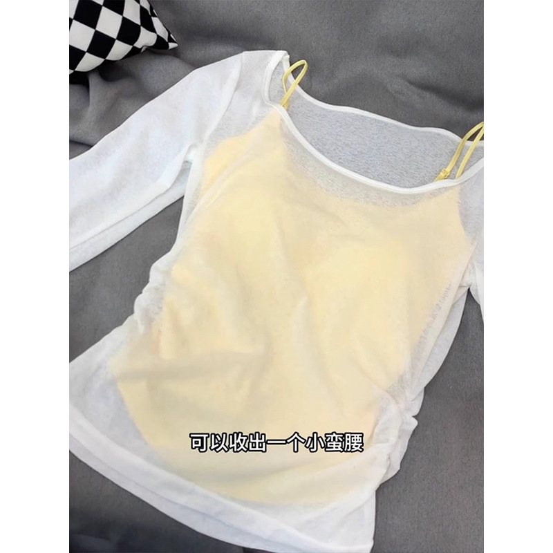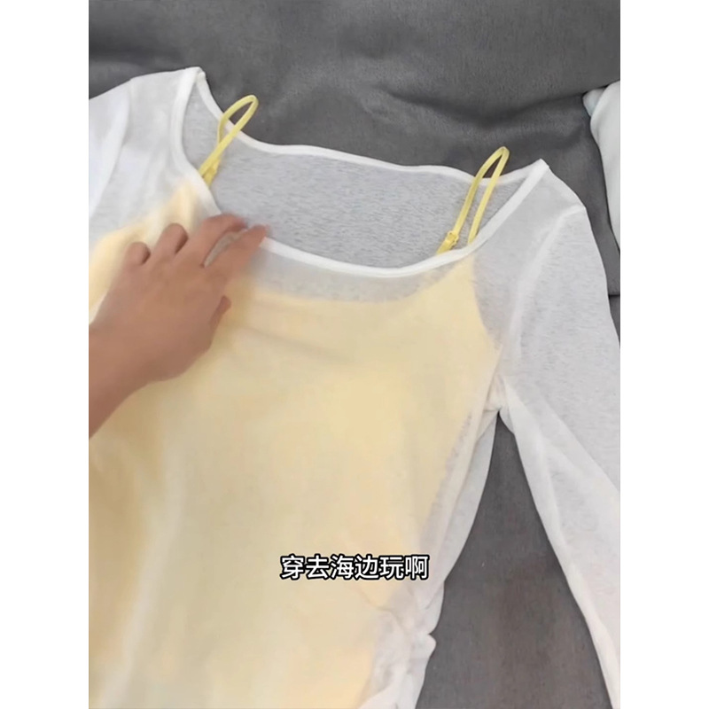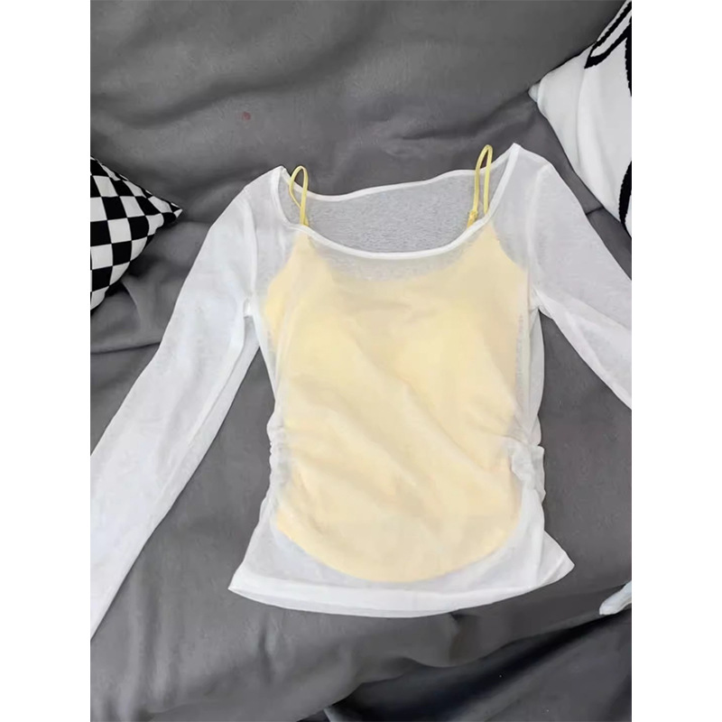 Женский летний комплект блузок кремово-желтого цвета в нежном стиле с милой тонкой футболкой с защитой от солнца, облегающей талию.
