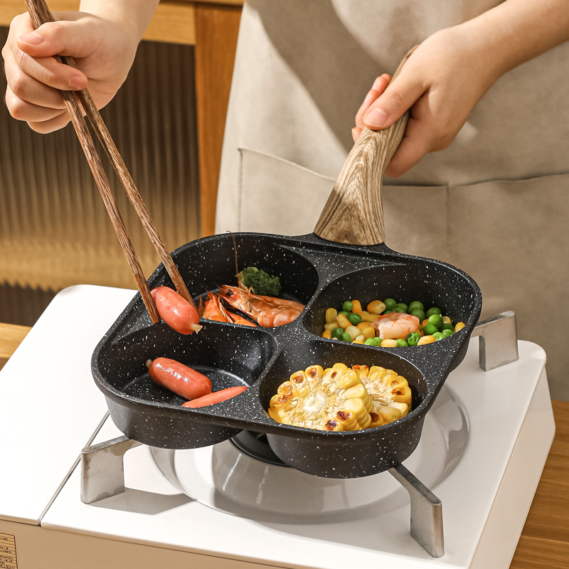 Многофункциональная сковорода для завтрака, бытовой артефакт для омлета, сковорода с антипригарным покрытием, маленькая сковорода с четырьмя отверстиями, сковорода для блинов, сковорода для яичного гамбургера
