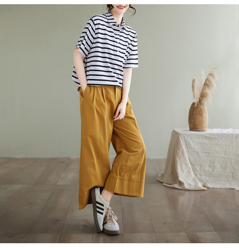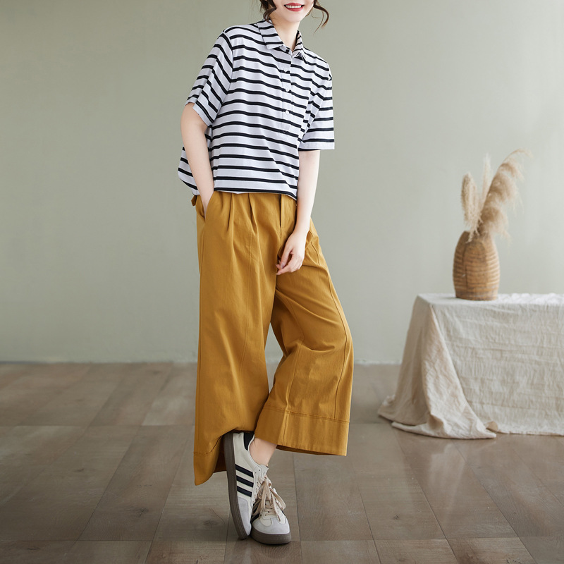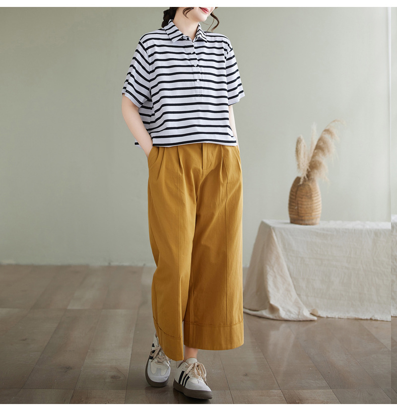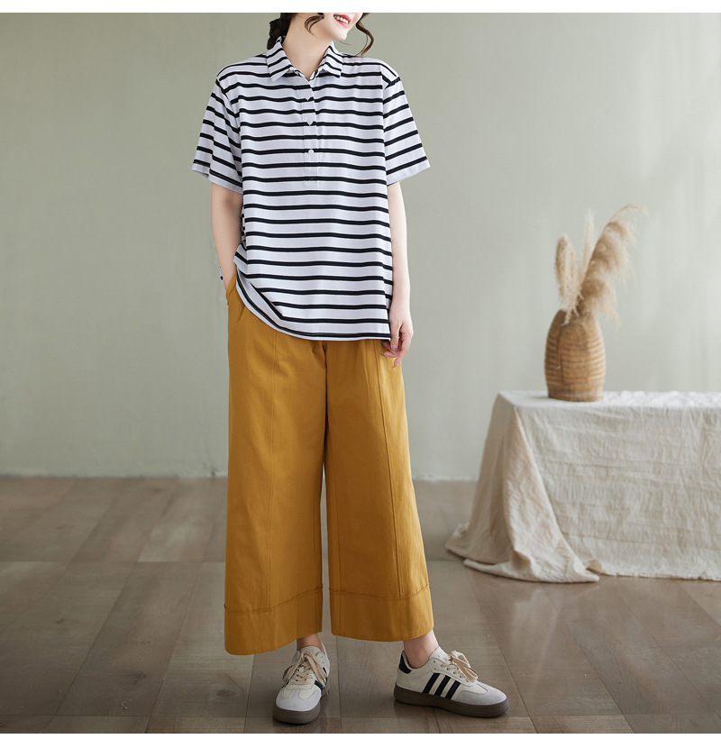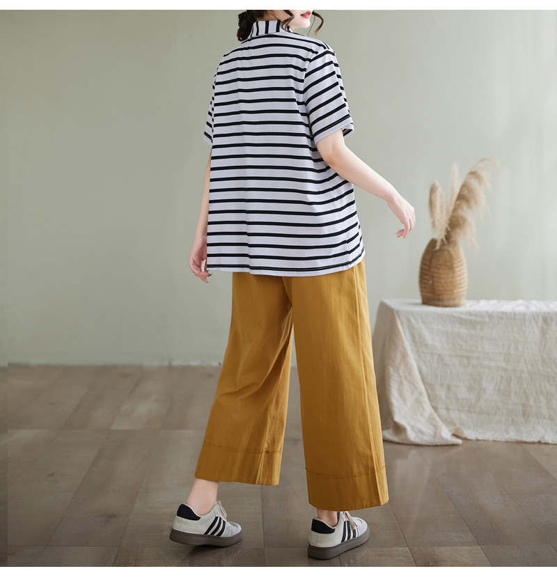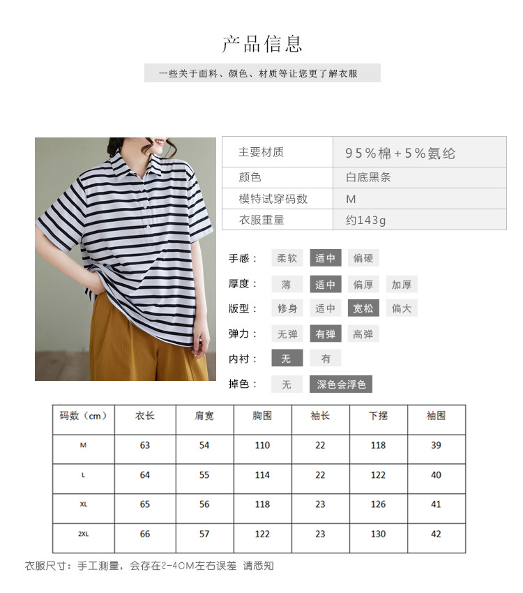 Художественно-простой пригородной свободная хлопковая футболка с короткими рукавами Polo с воротником в полоску топ для женщин