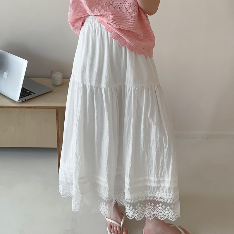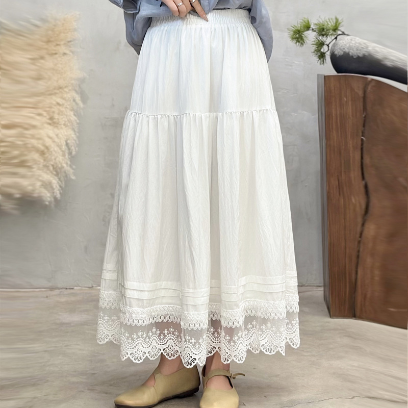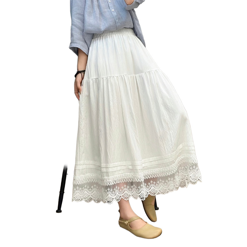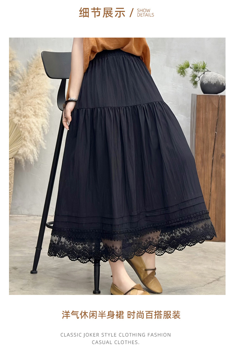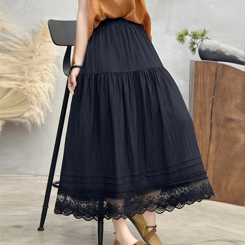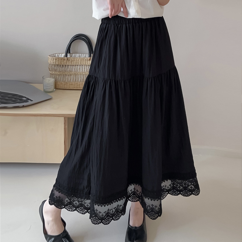 Женская юбка-миди весна-лето 2025, новая модель, суперпопулярная, стройнящая, с кружевными вставками, высокая талия, А-силуэт, повседневная