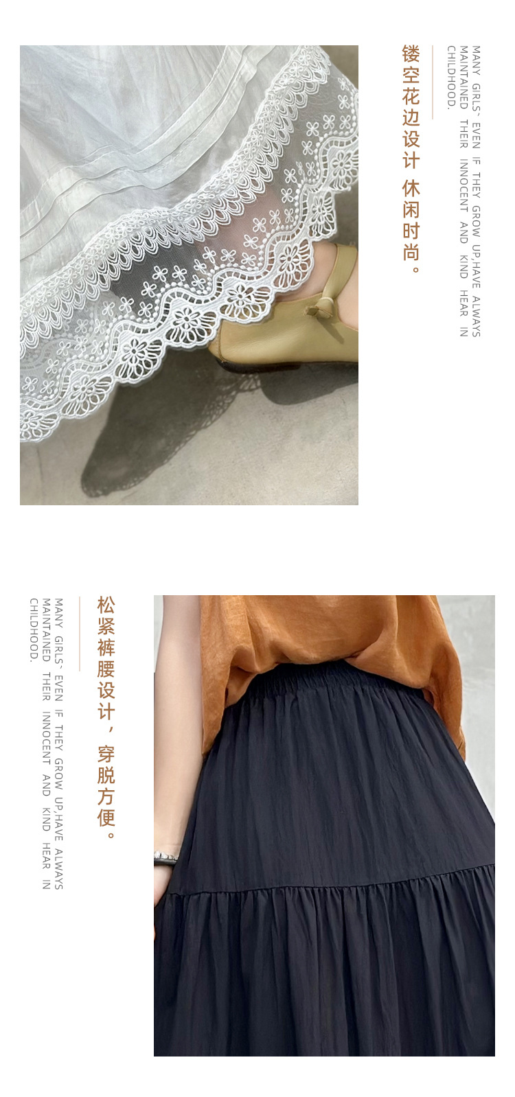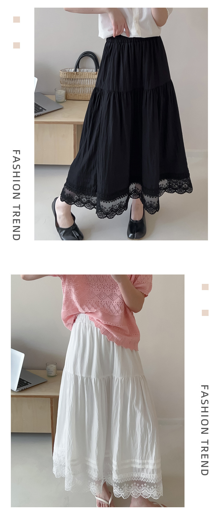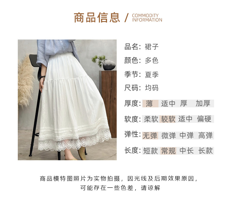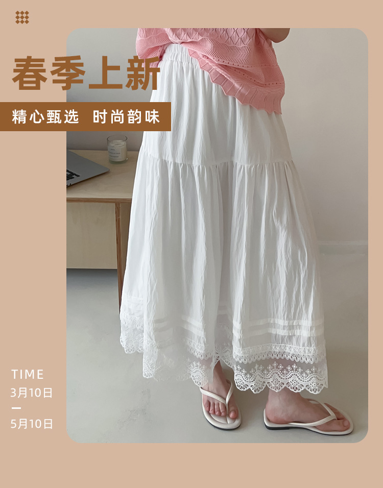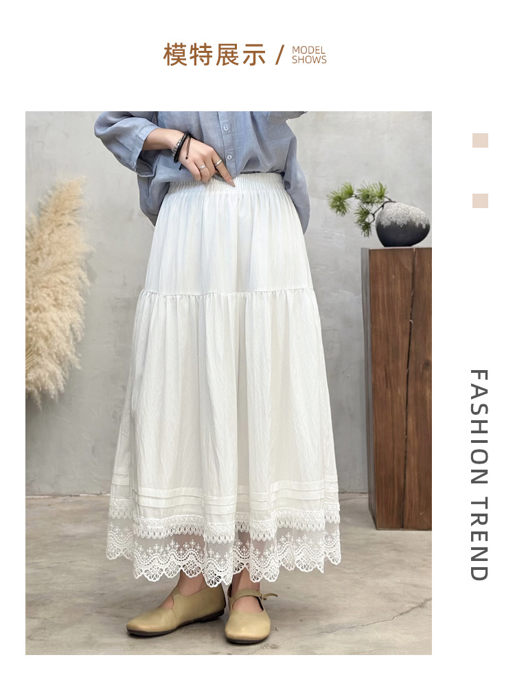 Женская юбка-миди весна-лето 2025, новая модель, суперпопулярная, стройнящая, с кружевными вставками, высокая талия, А-силуэт, повседневная