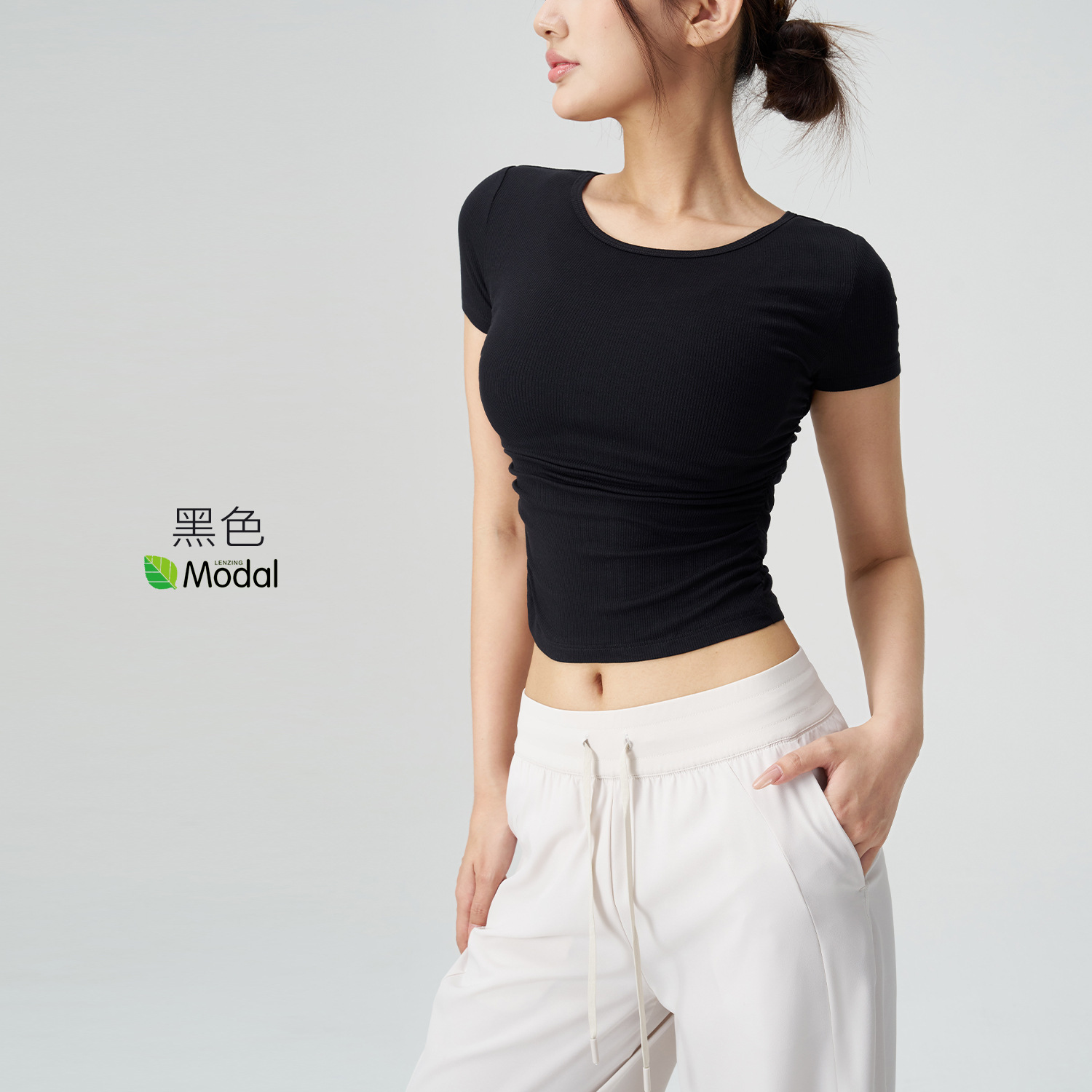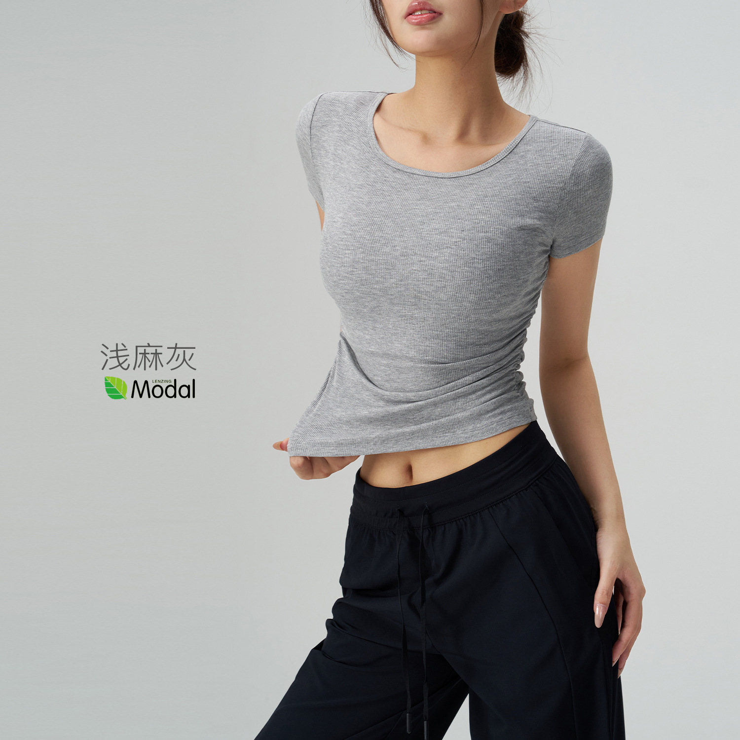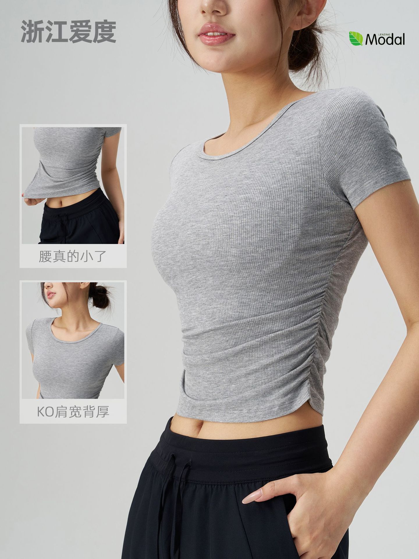 Модальная облегающая футболка для йоги с короткими рукавами до плеч, с утягивающим эффектом на талии, женская спортивная футболка для бега и фитнеса, облегающая накидка