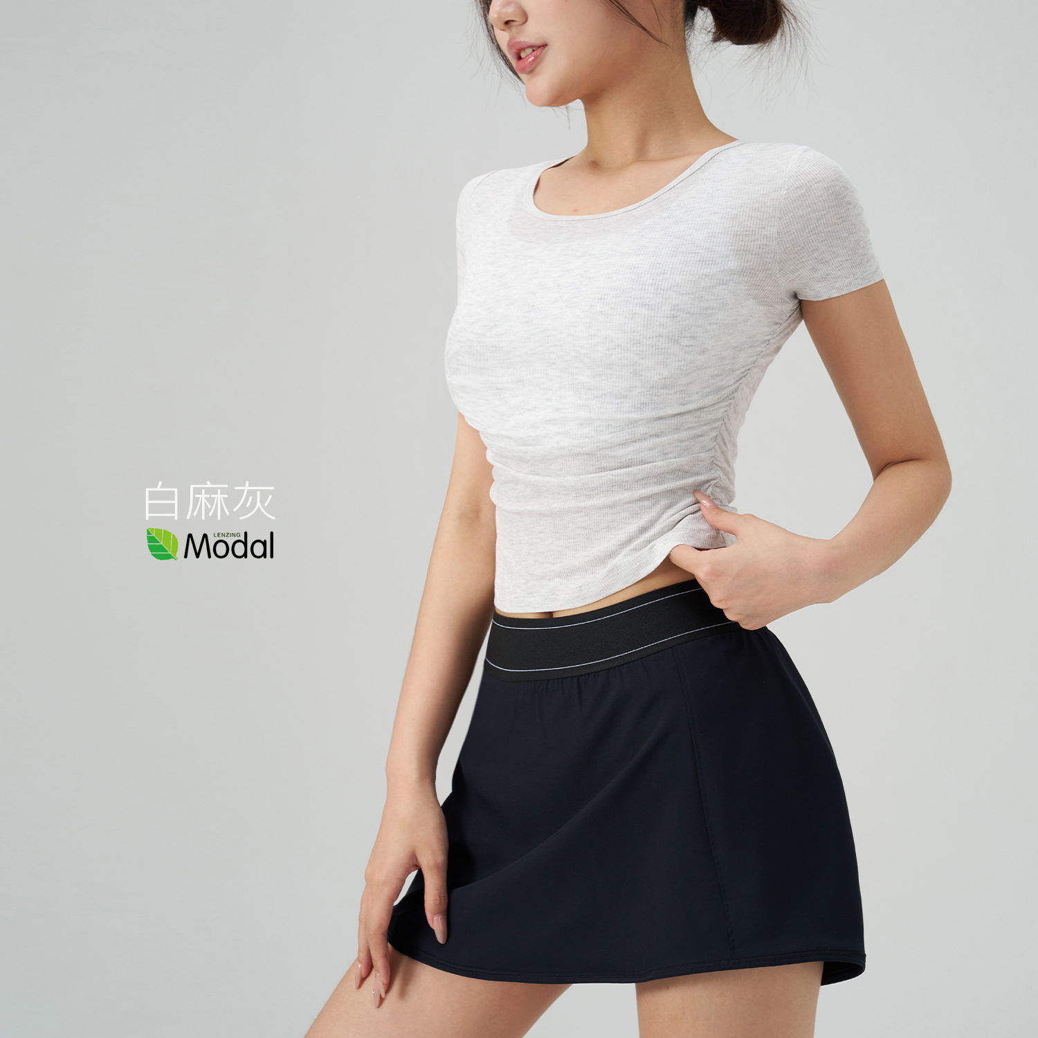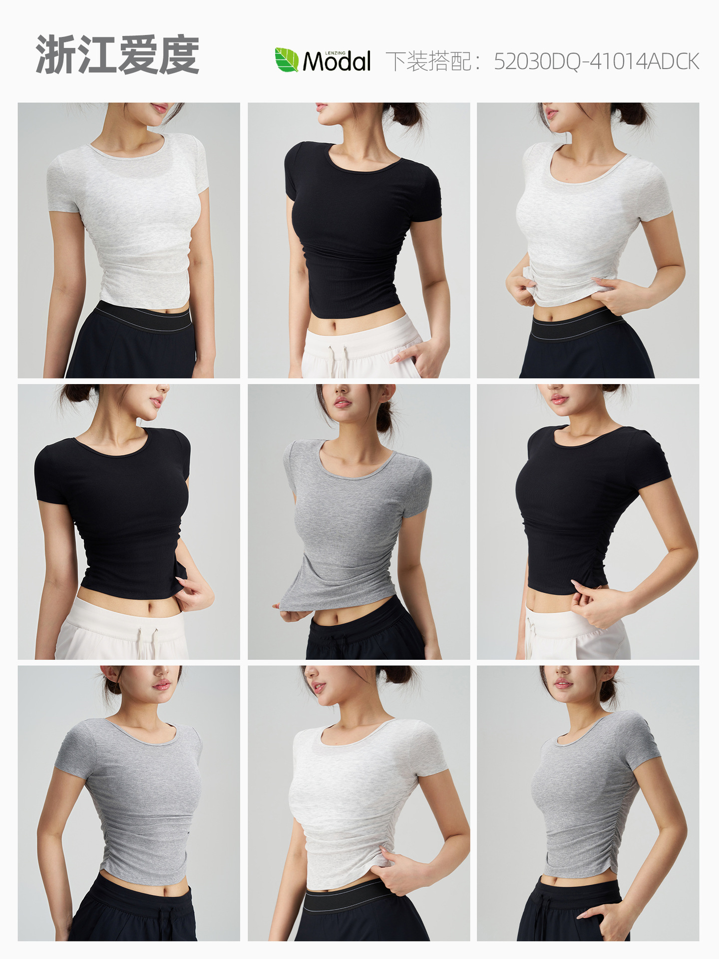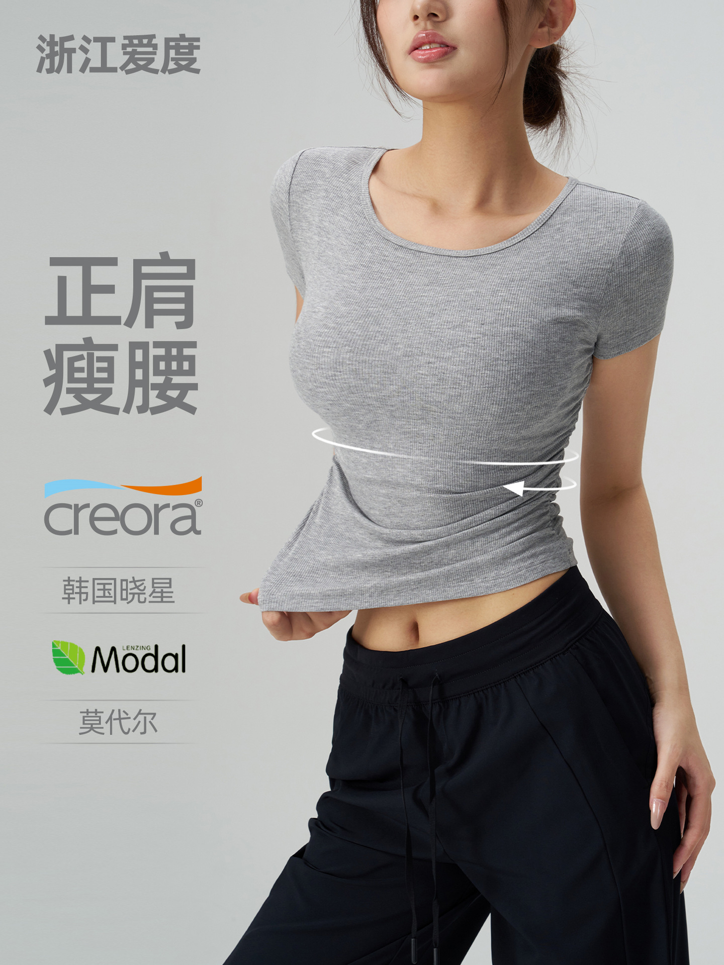 Модальная облегающая футболка для йоги с короткими рукавами до плеч, с утягивающим эффектом на талии, женская спортивная футболка для бега и фитнеса, облегающая накидка