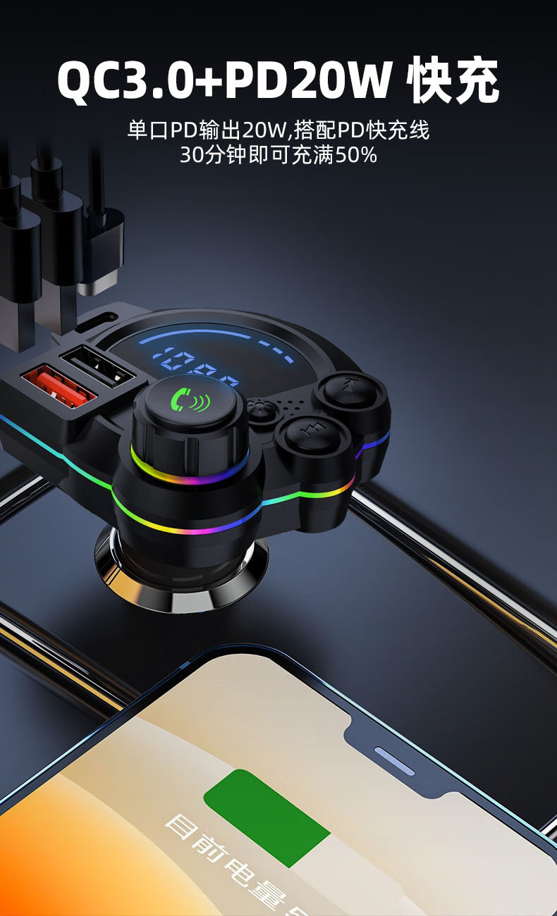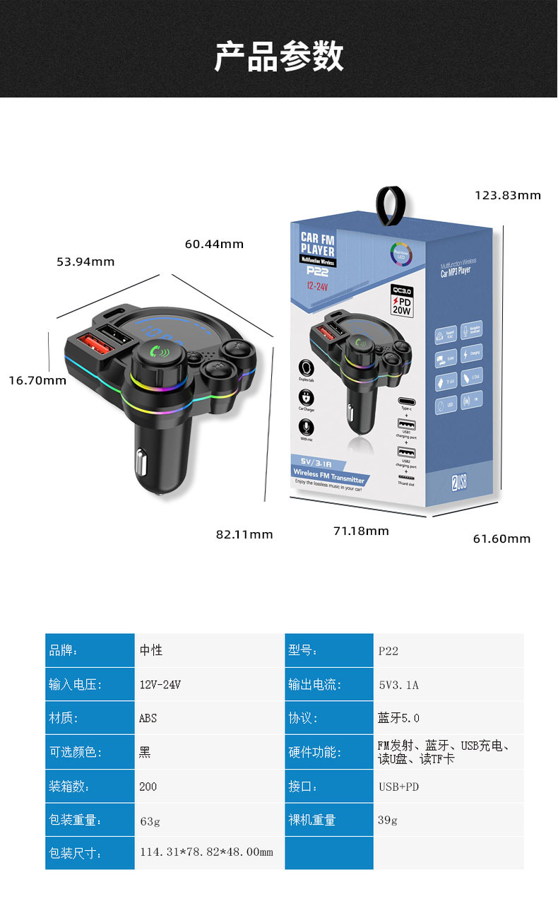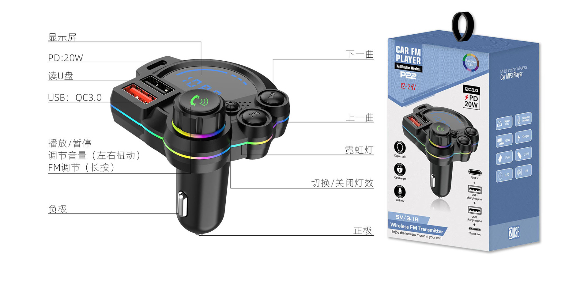 Частная модель P22 автомобильное зарядное устройство для мобильного телефона универсальный световой свет для автомобиля многофункциональный автомобильный зарядный Bluetooth MP3-плеер