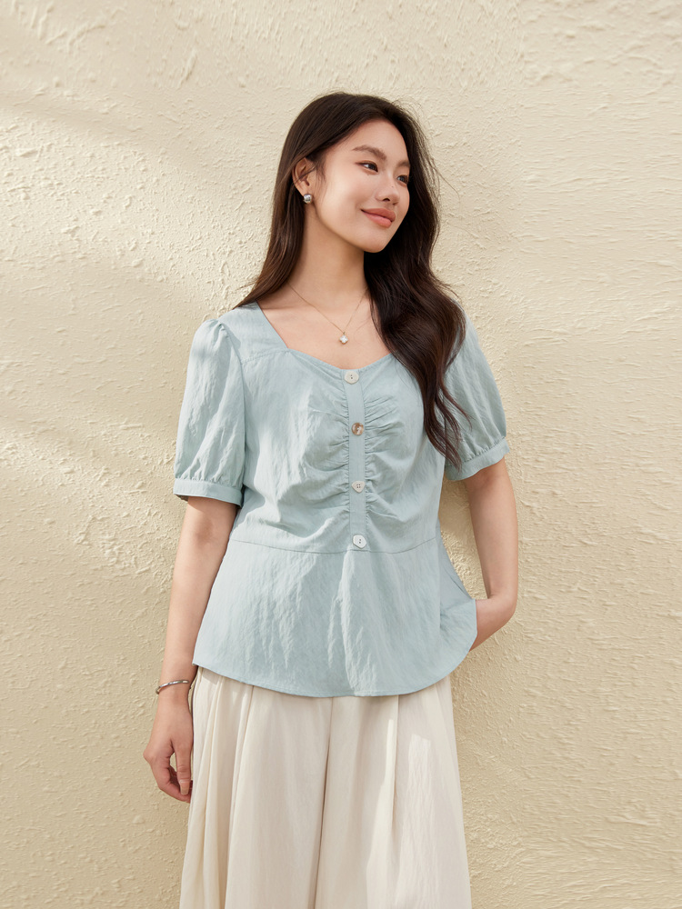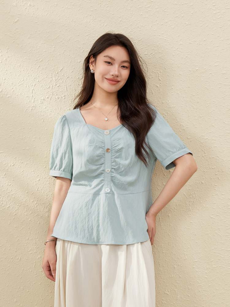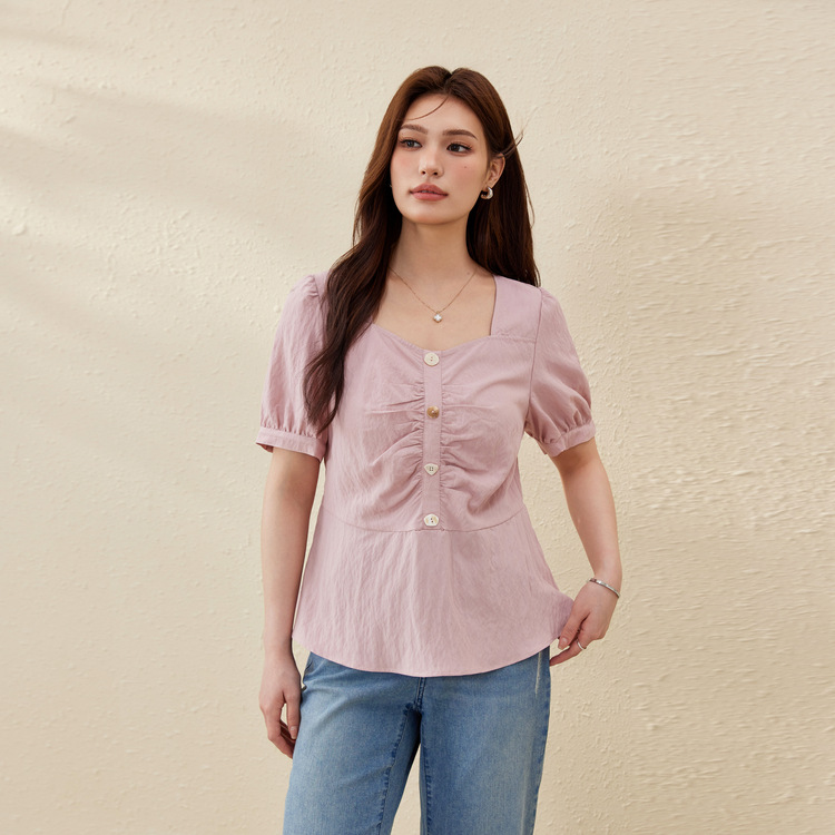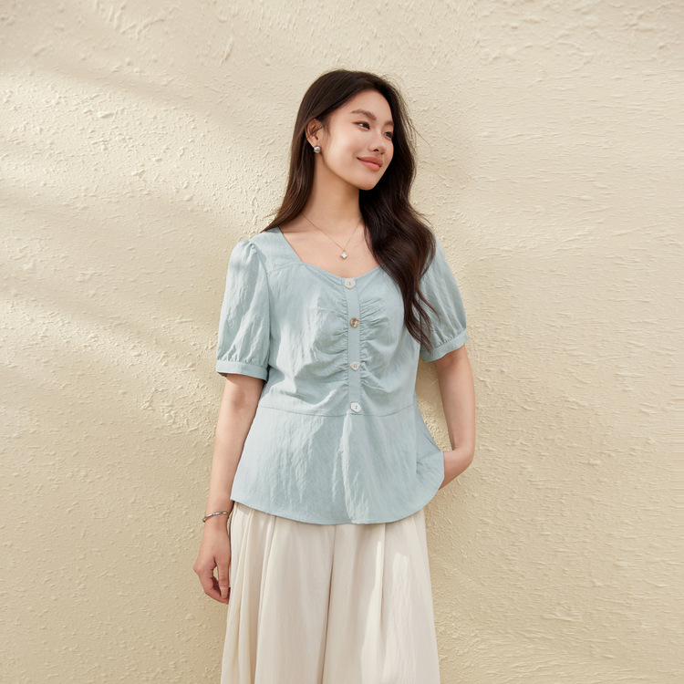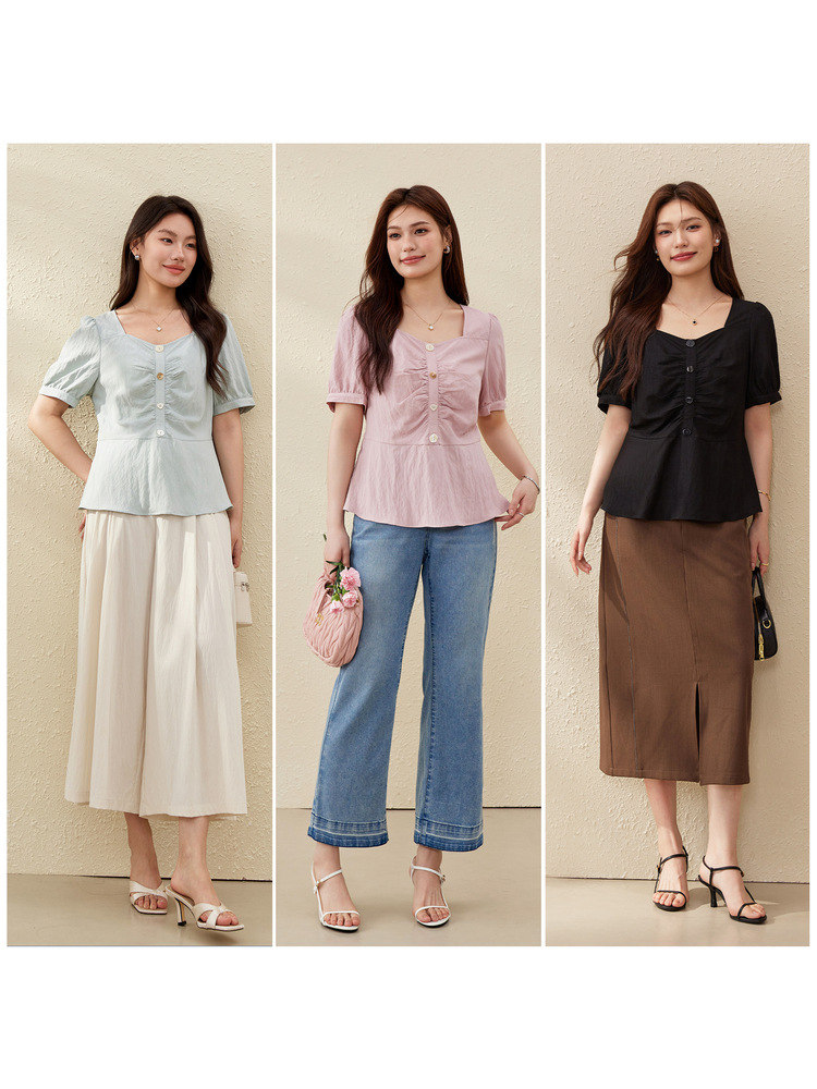 [Французский ретро квадратный воротник, нежная и стройнящая рубашка] Тонкая и красивая женская одежда больших размеров, толстая мм 2025, новый летний стиль