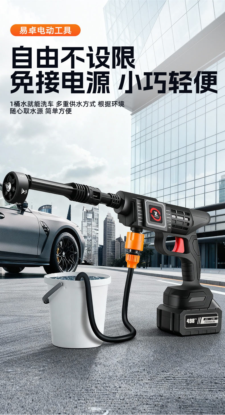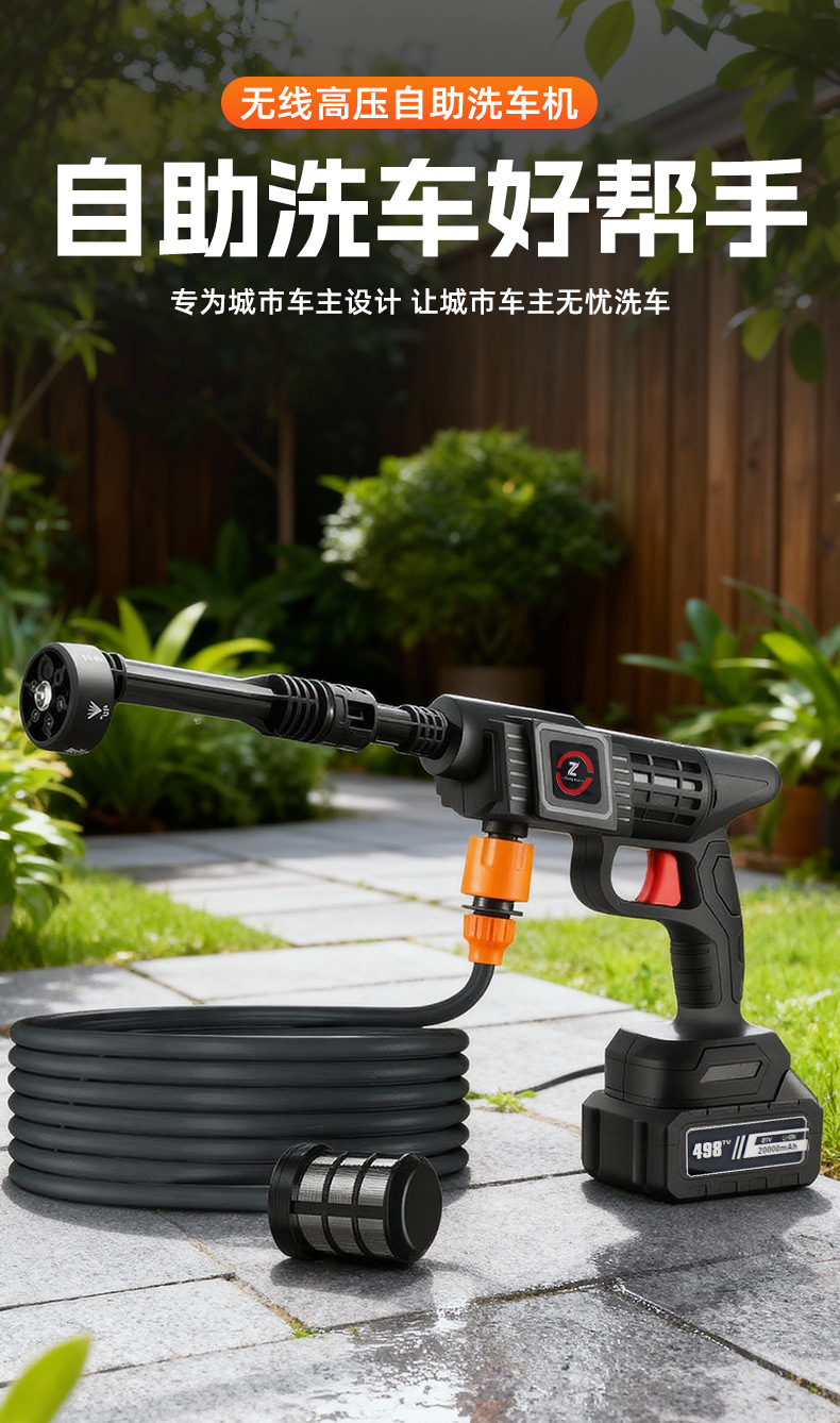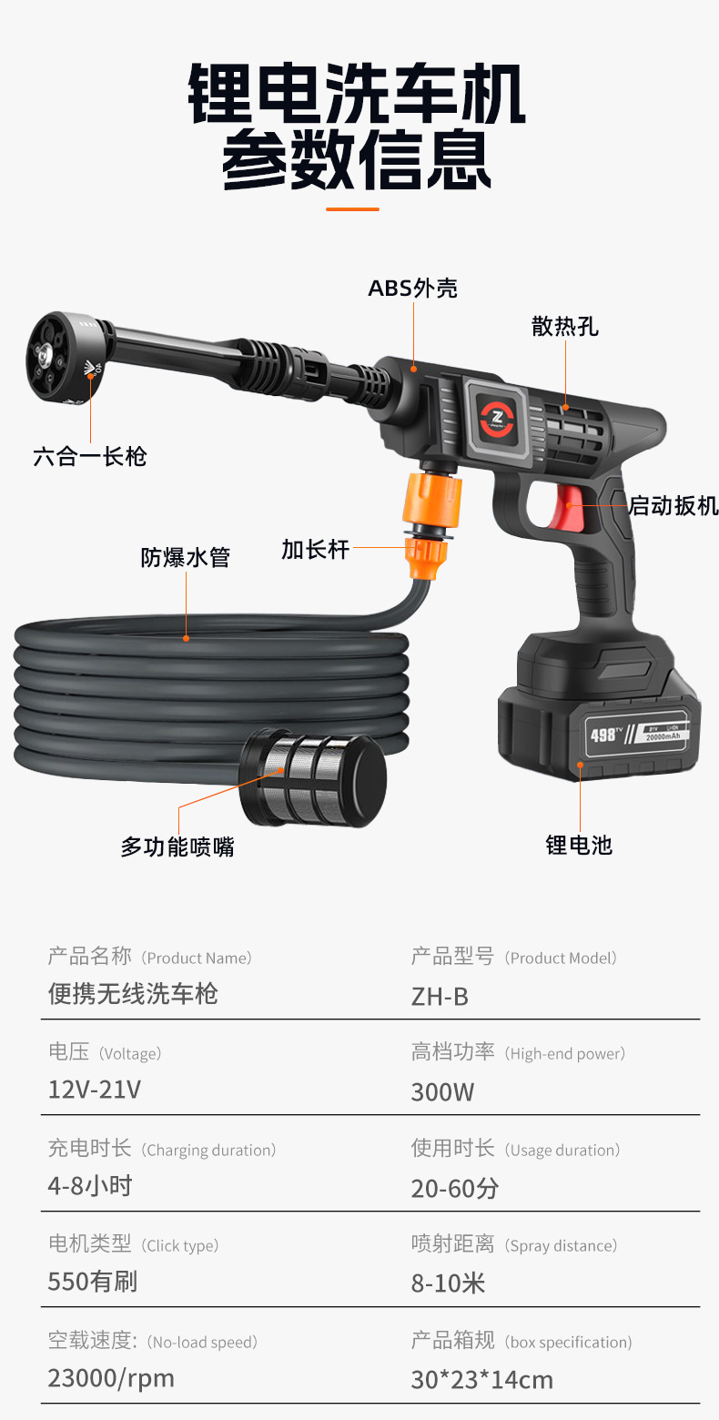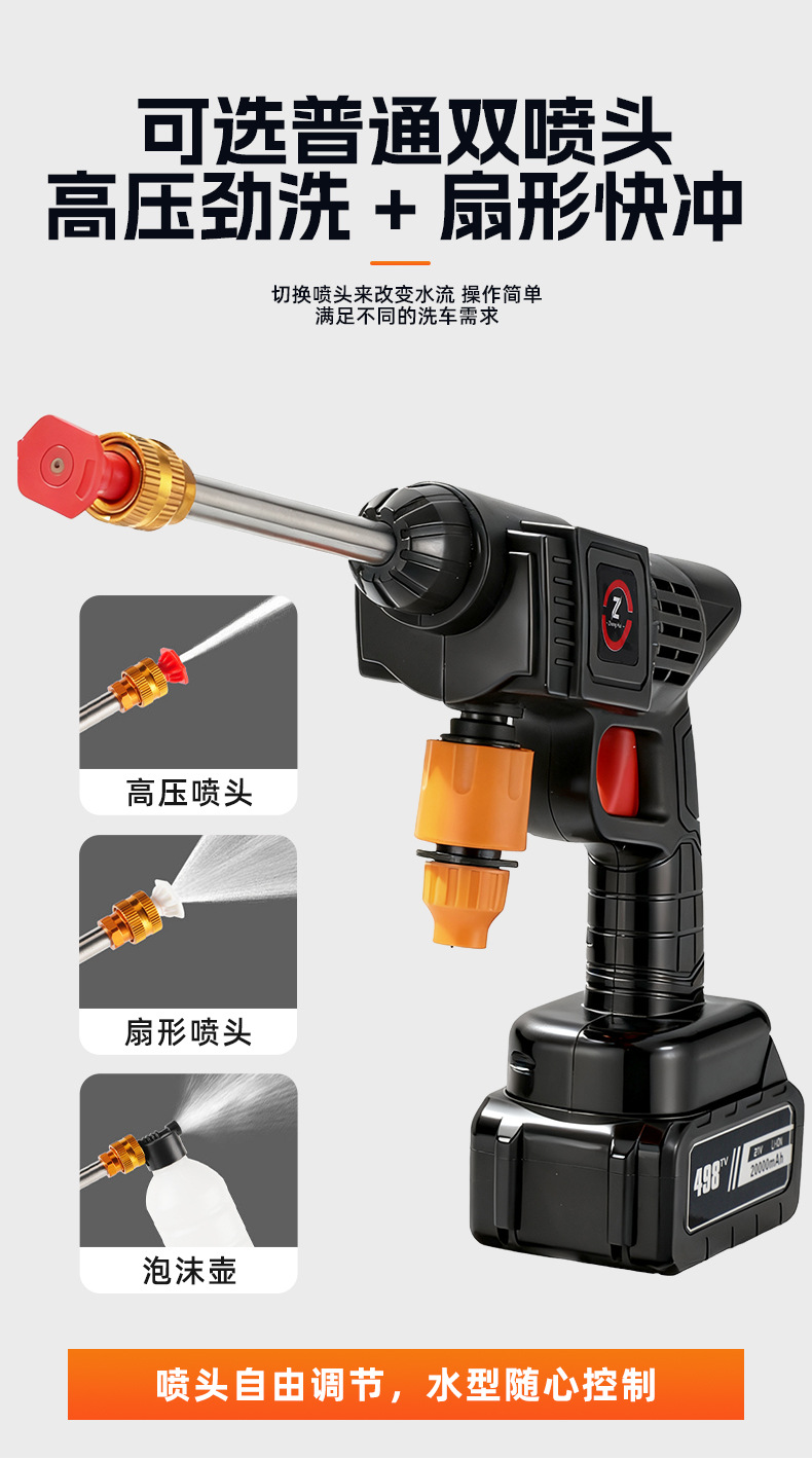Портативный беспроводной высоконапорный пистолет для мойки автомобилей с литиевой батареей, бытовой электрический ручной аппарат для мойки автомобилей оптом