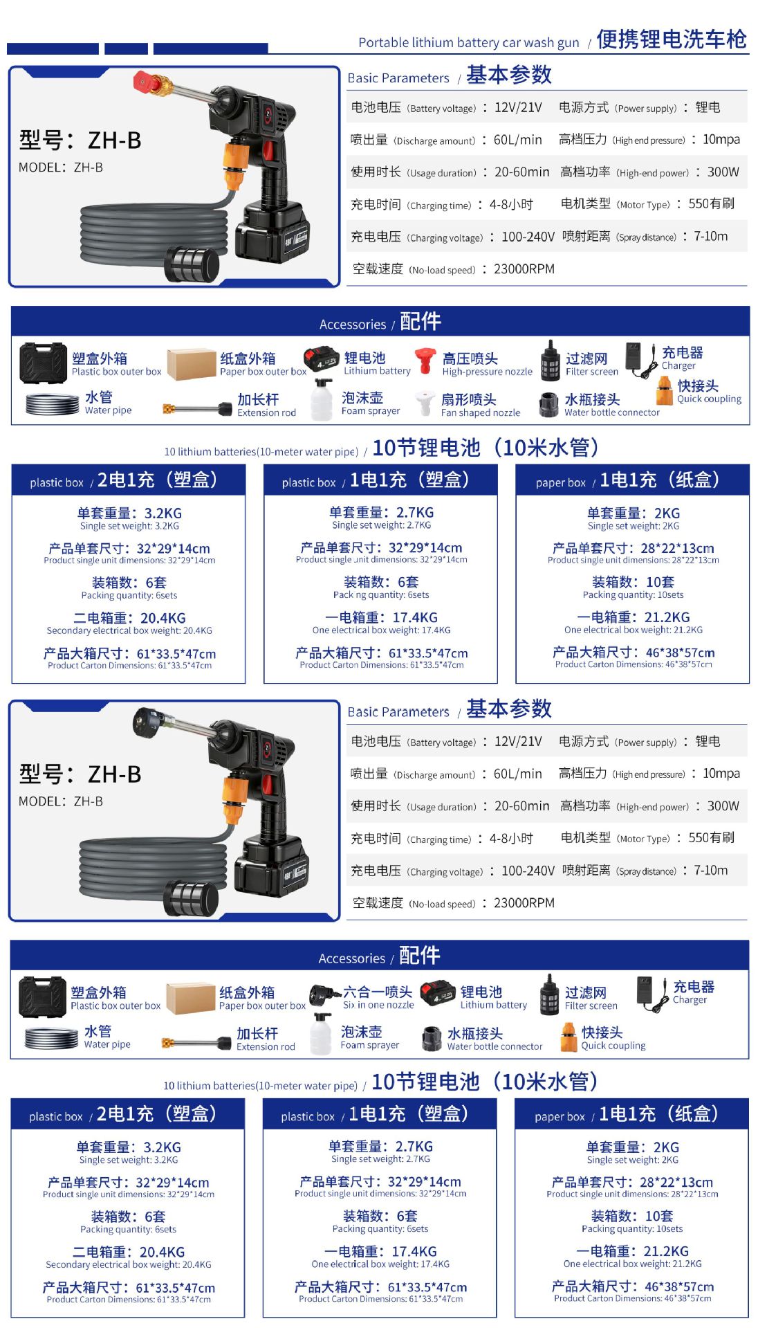 Насадка ZH-B «шесть в одном», пятнадцать секций, одна зарядка и одна зарядка (ящик для инструментов); Насадка ZH-B «шесть в одном», десять секций, одна батарея и один заряд (ящик для инструментов); Насадка ZH-B «шесть в одном», пять секций, одна батарея и один заряд (ящик для инструментов); Насадка ZH-B «шесть в одном», пять секций, две батареи и один заряд (ящик для инструментов); Насадка ZH-B «шесть в одном», десять секций, две батареи и один заряд (ящик для инструментов); Насадка ZH-B «шесть в одном», пятнадцать ячеек, две батареи и один заряд (ящик для инструментов); Насадка ZH-B «шесть в одном», пятнадцать секций, одна батарея и один заряд (коробка); Насадка ZH-B «шесть в одном», десять секций, одна батарея и один заряд (коробка); Насадка ZH-B «шесть в одном», пять секций, одна батарея и один заряд (коробка); Насадка ZH-B «шесть в одном», пять секций, две батареи и один заряд (коробка); Насадка ZH-B «шесть в одном», десять секций, две батареи и один заряд (коробка); Насадка ZH-B «шесть в одном», пятнадцать ячеек, две батареи и один заряд (коробка); Насадка ZH-B обычная, десять секций, две батареи и один заряд (ящик для инструментов); Насадка ZH-B обычная, пятнадцать секций, две батареи и один заряд (ящик для инструментов); Насадка ZH-B обычная, пятнадцать секций, одна загрузка и одна загрузка (ящик для инструментов); Насадка ZH-B обычная, пять секций, две батареи и один заряд (ящик для инструментов); Обычная насадка ZH-B, пять секций, одна батарея и один заряд (ящик для инструментов); Обычная насадка ZH-B, десять секций, одна батарея и один заряд (ящик для инструментов); Насадка ZH-B обычная, десять секций, две батареи и один заряд (картон); Насадка ZH-B обычная, пятнадцать секций, две батареи и один заряд (картон); Насадка ZH-B обычная, пятнадцать секций, одна батарея и один заряд (коробка); Обычная насадка ZH-B, десять секций, одна батарея и один заряд (коробка); Обычная насадка ZH-B, пять секций, одна батарея и один заряд (коробка); Насадка ZH-B обычная, пять секций, две батареи и один заряд (картон); Насадка ZH-B обычная, три секции, две батареи и один заряд (картон); Обычная насадка ZH-B, три секции, одна батарея и один заряд (коробка); Обычная насадка ZH-B, три секции, одна батарея и один заряд (ящик для инструментов); Насадка ZH-B обычная, три секции, две батареи и один заряд (ящик для инструментов); Насадка ZH-B «шесть в одном», три секции, две батареи и один заряд (коробка); Насадка ZH-B «шесть в одном», три секции, одна батарея и один заряд (картонная коробка); Насадка ZH-B «шесть в одном», три секции, две батареи и один заряд (ящик для инструментов); Насадка ZH-B «шесть в одном», три секции, одна батарея и один заряд (ящик для инструментов); ZH-B стандартная насадка, три секции, одна батарея и один заряд (коробка) 10m водопроводная труба; ZH-B стандартная насадка, три секции, одна батарея и один зарядный блок (инструментальный ящик) 10m; ZH-B стандартная насадка, три секции, две батареи и одно зарядное устройство (инструментальный ящик) 10m; Три аккумулятора 12В.; Пять аккумуляторов 21В.; Десять аккумуляторов 21В; Пятнадцать аккумуляторов 21В.