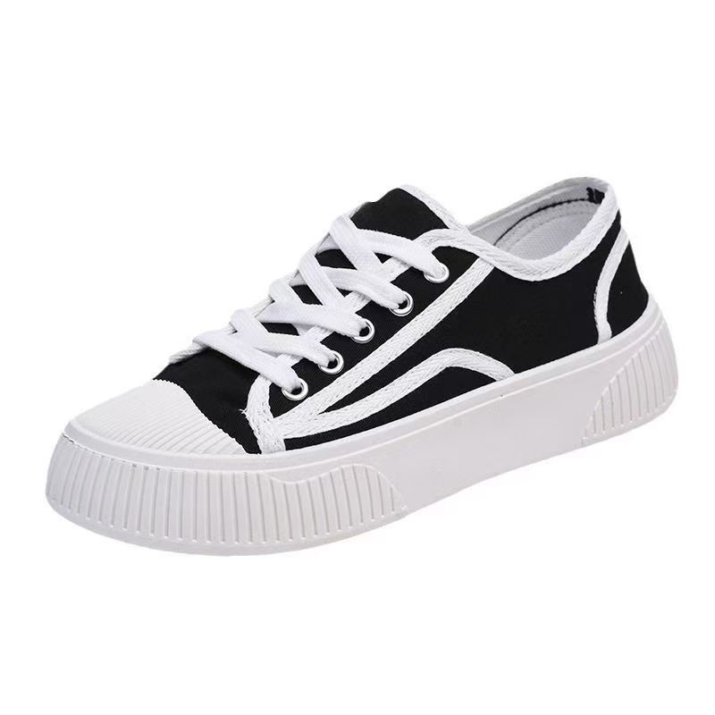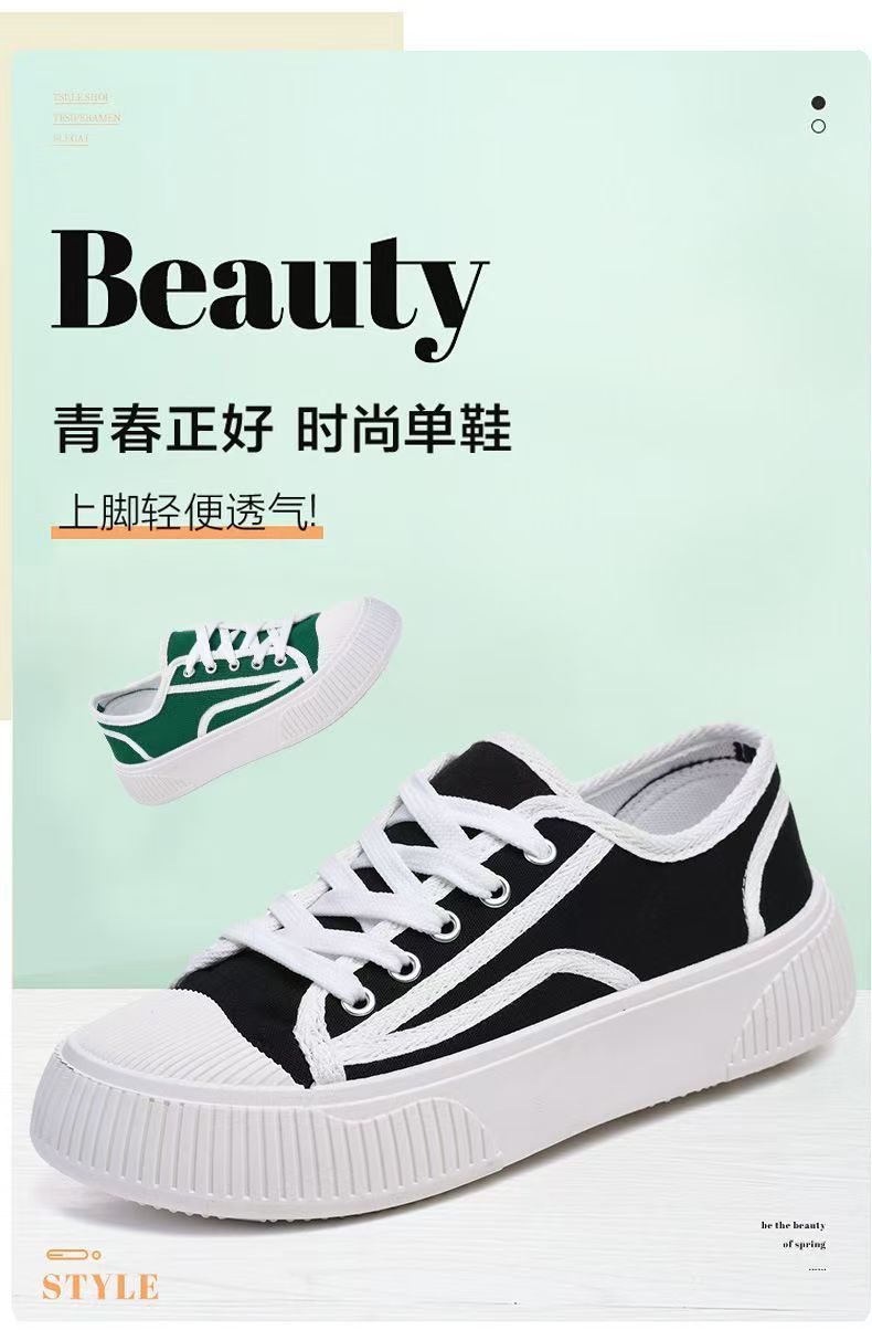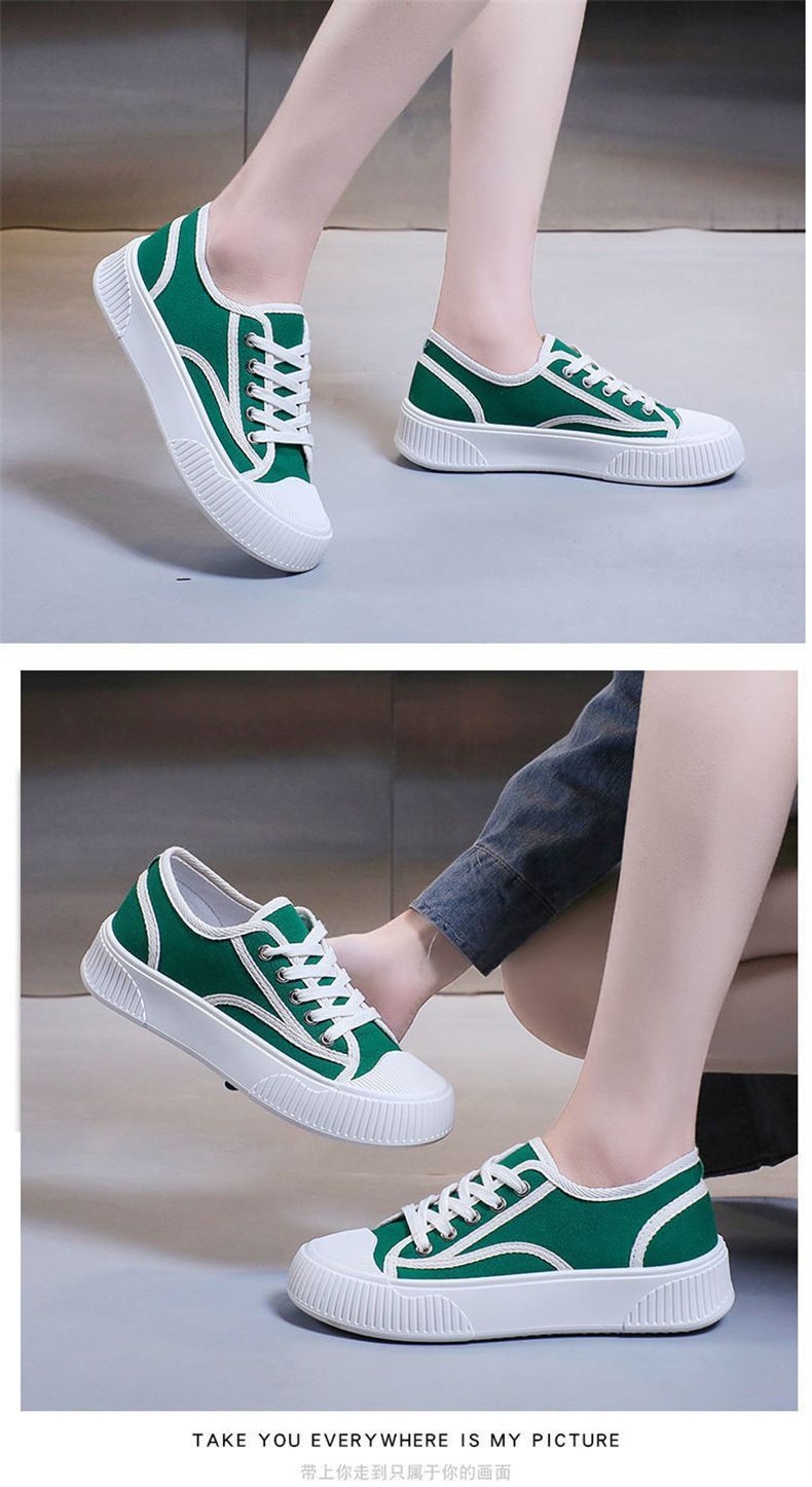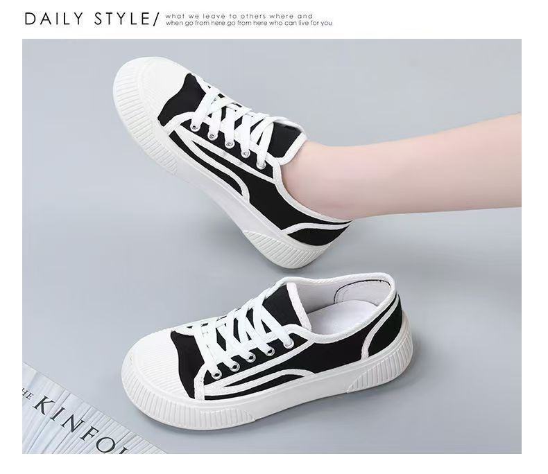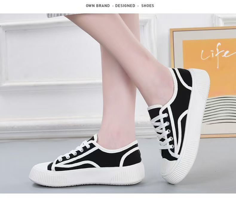 2025 Новые весенне-летние парусиновые туфли для студенток. Универсальные низкие дышащие парусиновые туфли в корейском стиле. Женская обувь на толстой подошве.