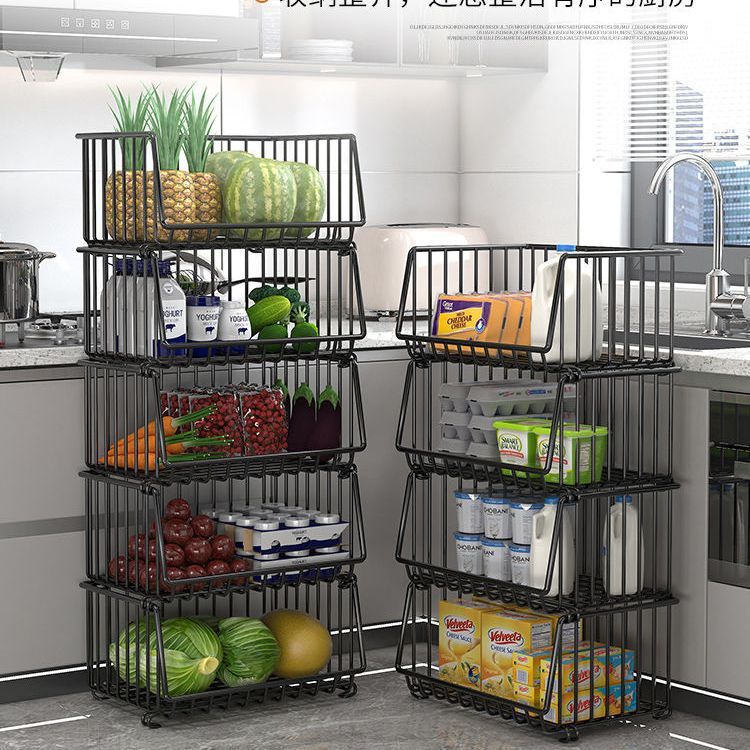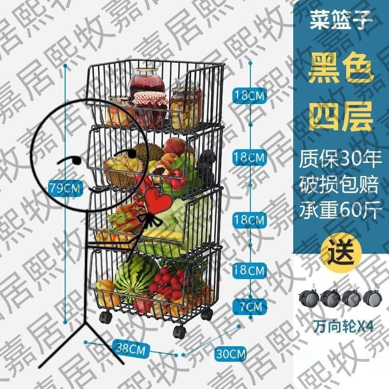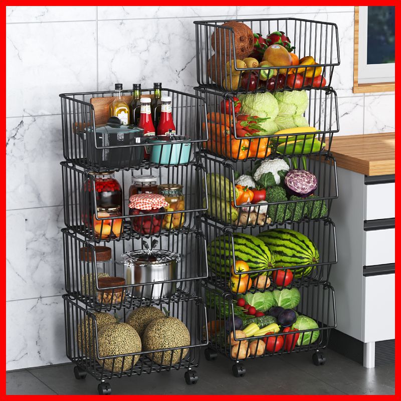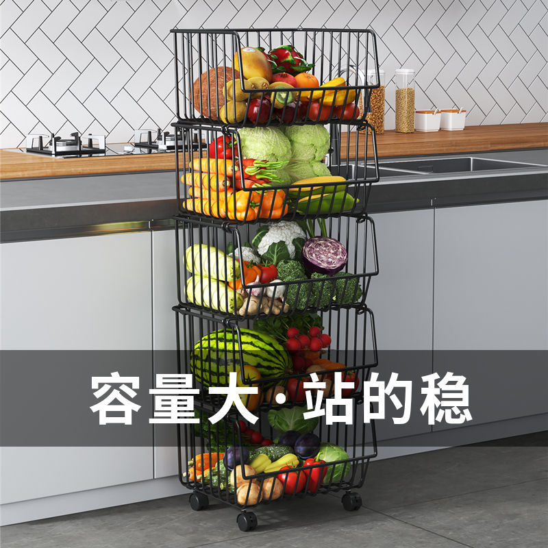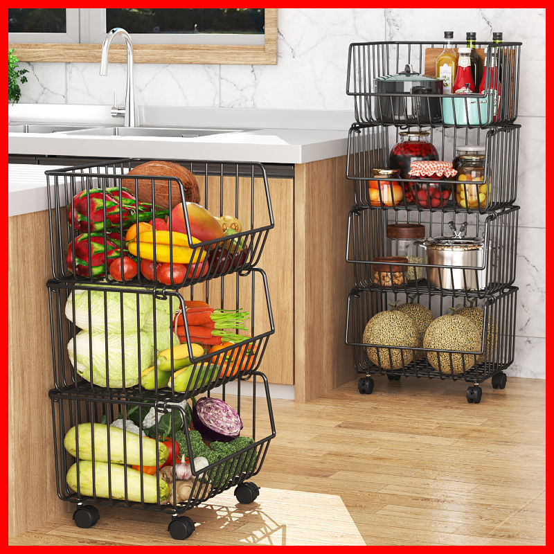 Кухонная стойка, напольная многослойная стойка для хранения овощей и фруктов, корзина для овощей, многофункциональная стойка для овощей на тележке
