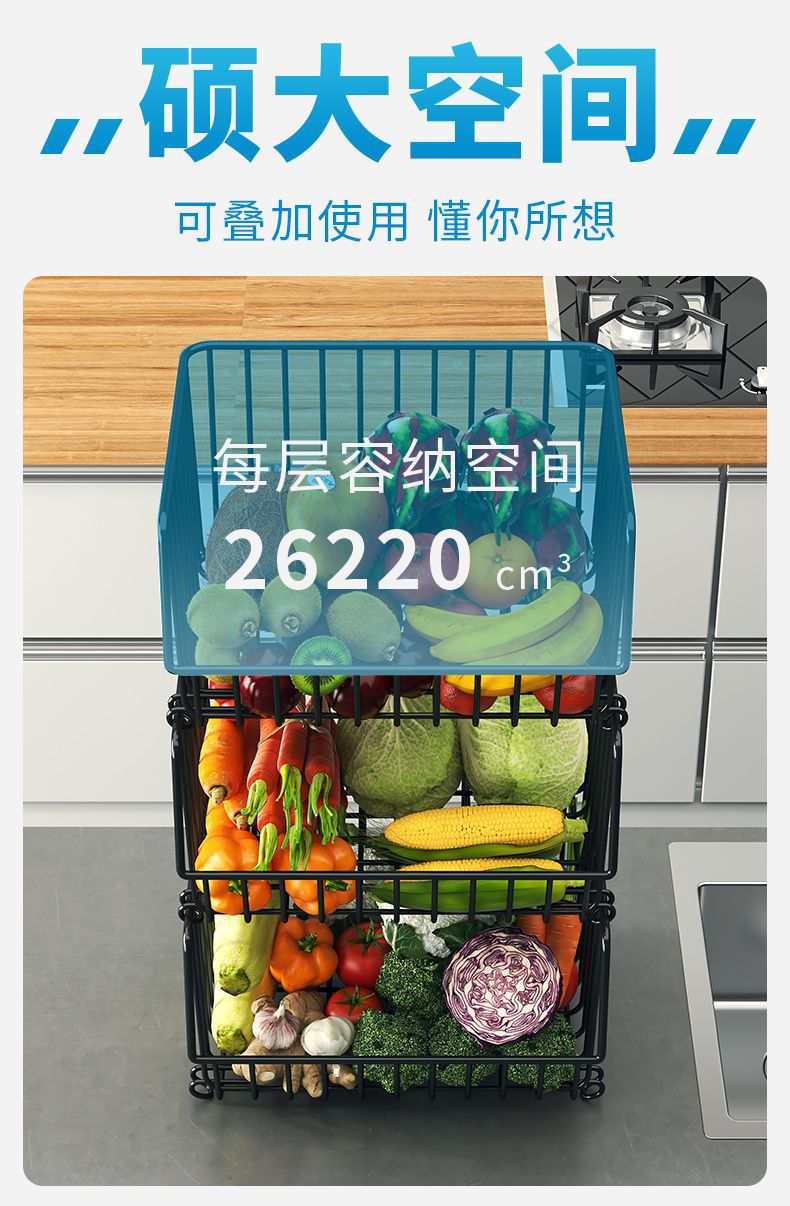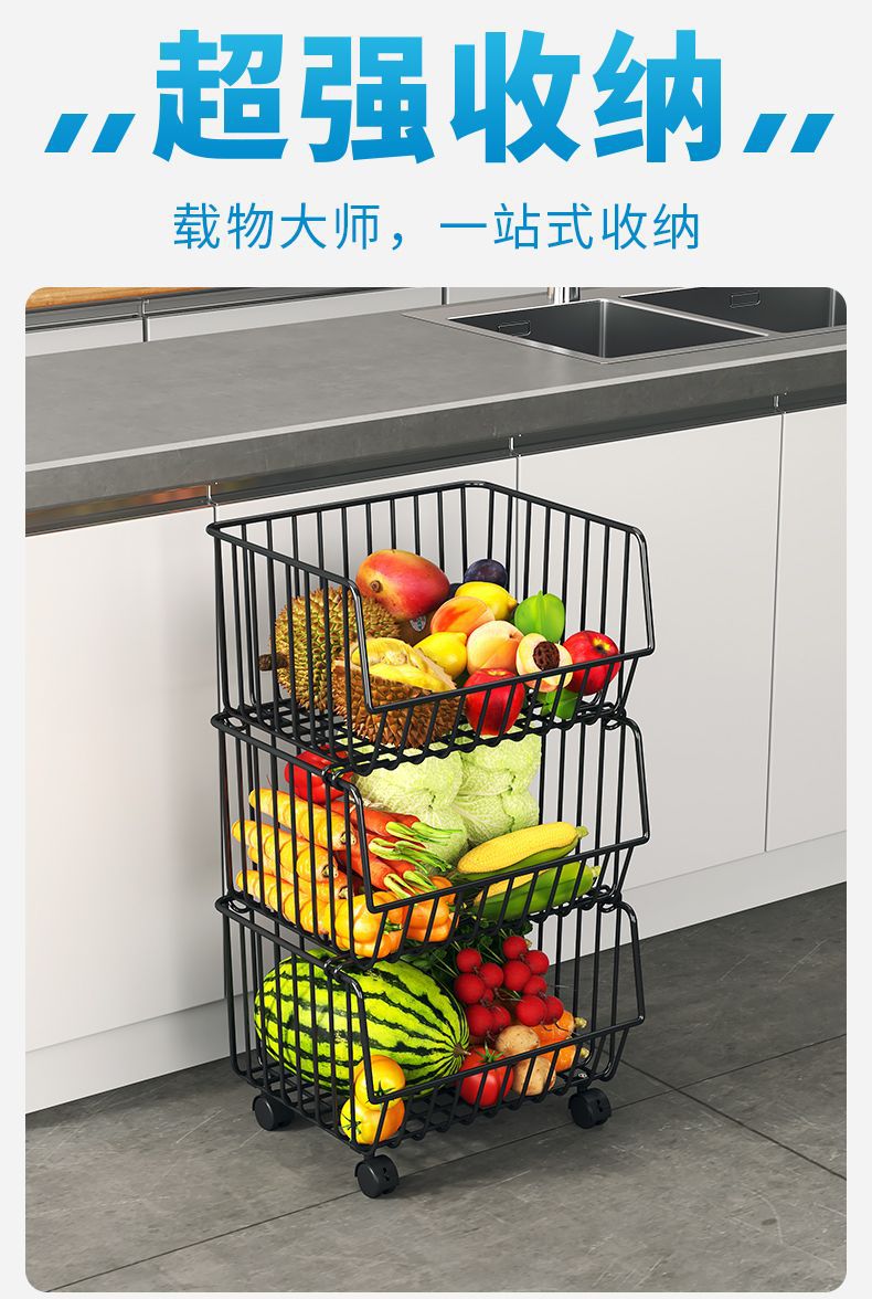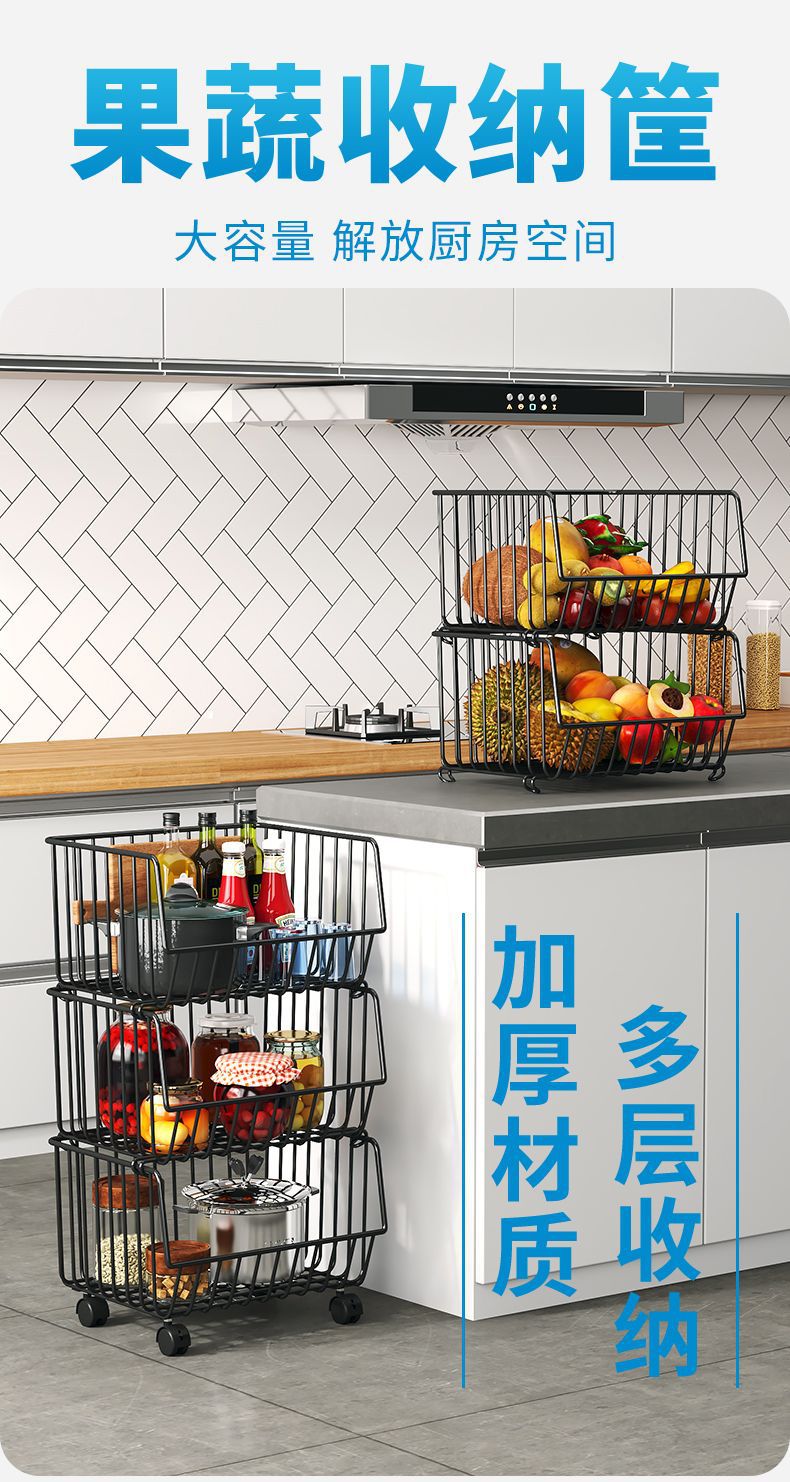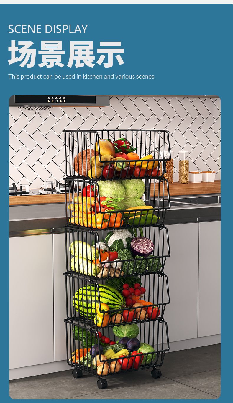 Кухонная стойка, напольная многослойная стойка для хранения овощей и фруктов, корзина для овощей, многофункциональная стойка для овощей на тележке