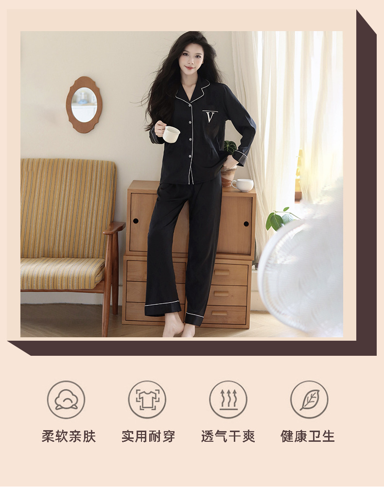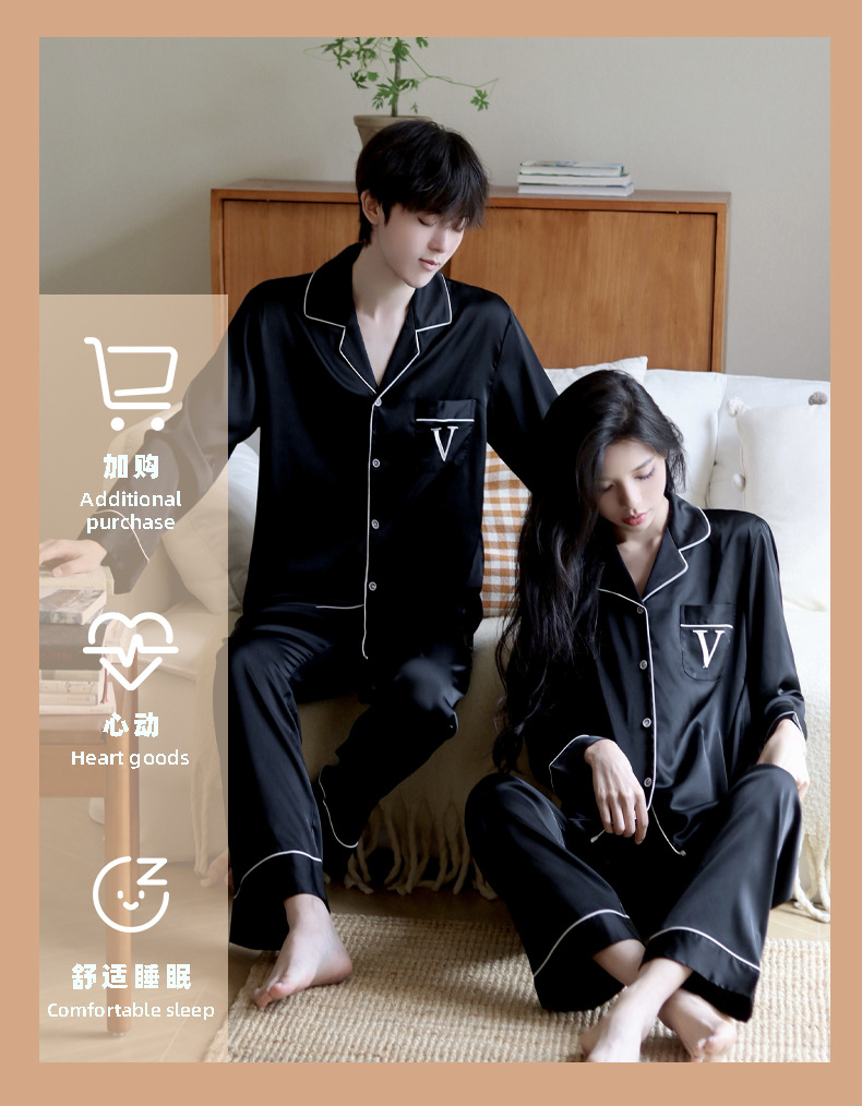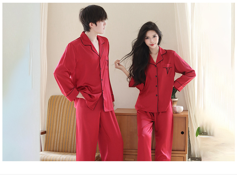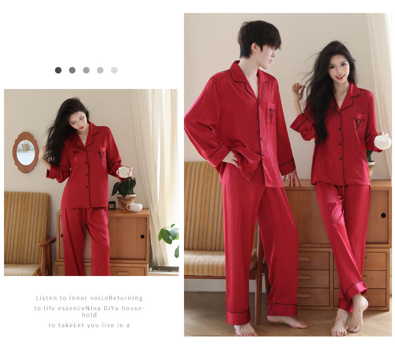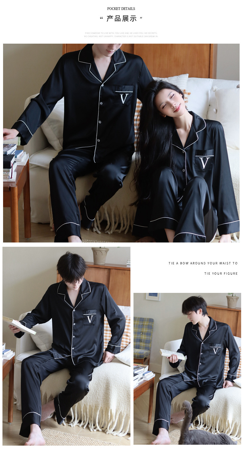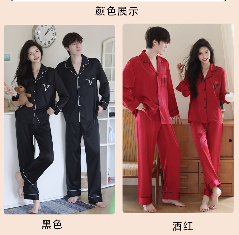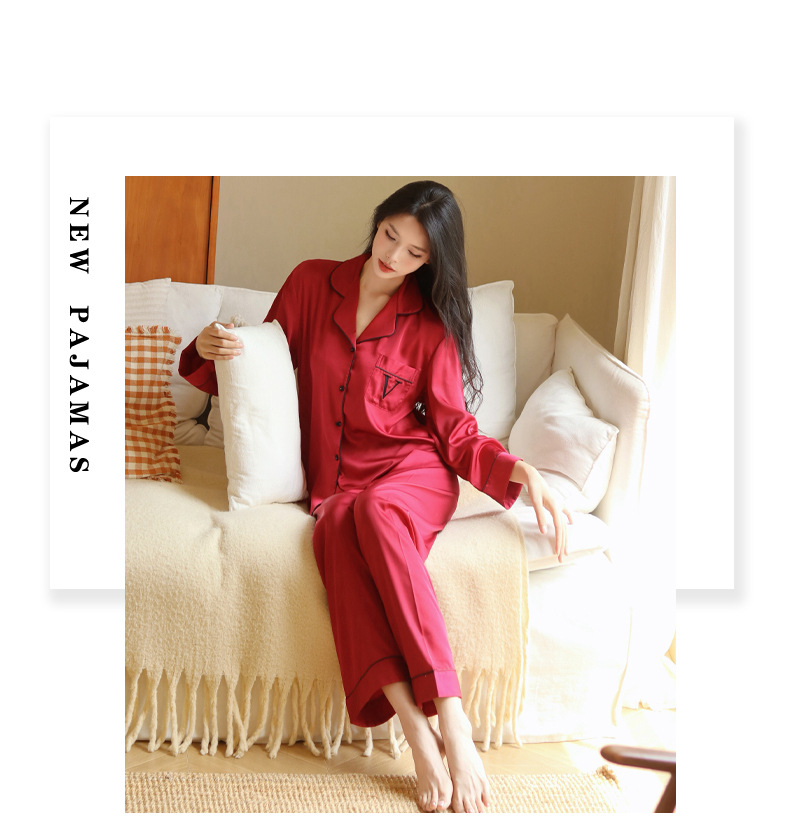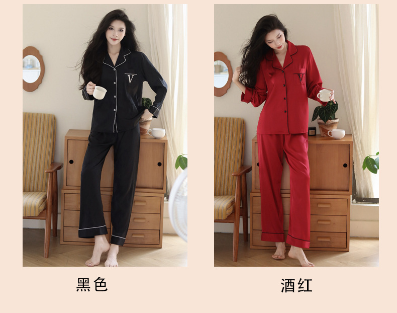 2025 новый ледяной шелк тонкая пара пижамы высокого уровня лацканный воротник с длинными рукавами брюки весна и осень домашняя одежда можно носить на улице