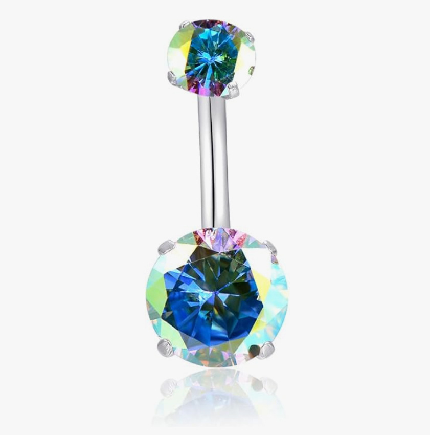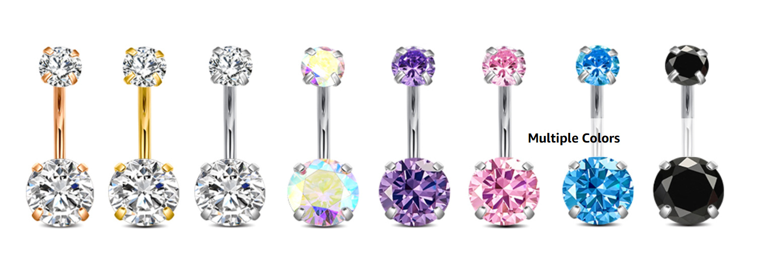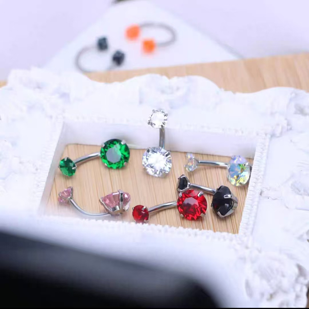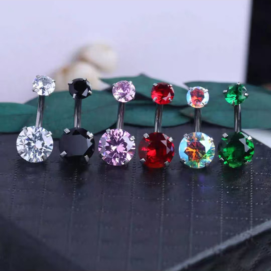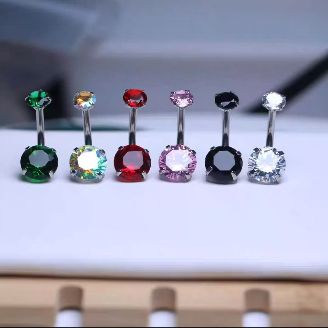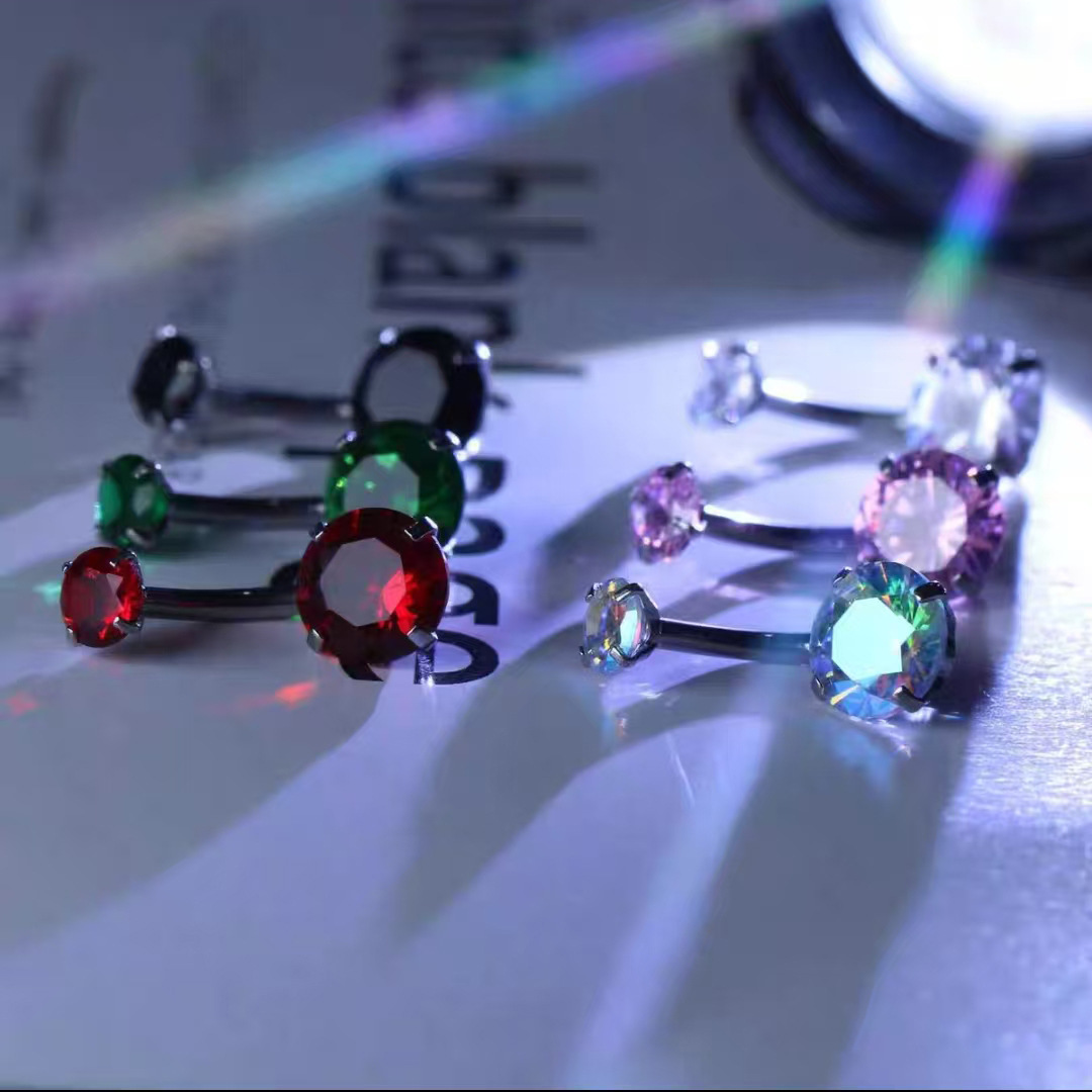 Оптовая продажа пирсинга пупка из титановой стали с четырьмя когтями, двойным цирконием и кольцом из нержавеющей стали 316 для трансграничной торговли на Amazon