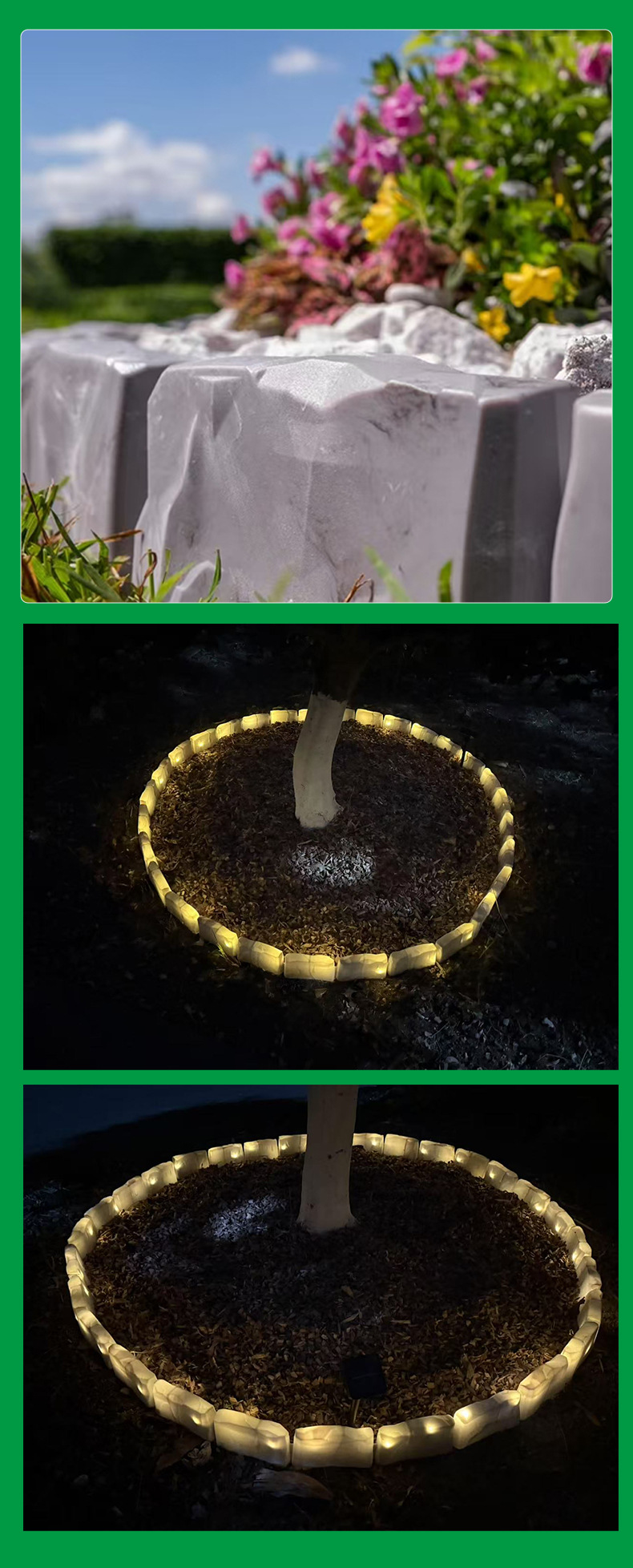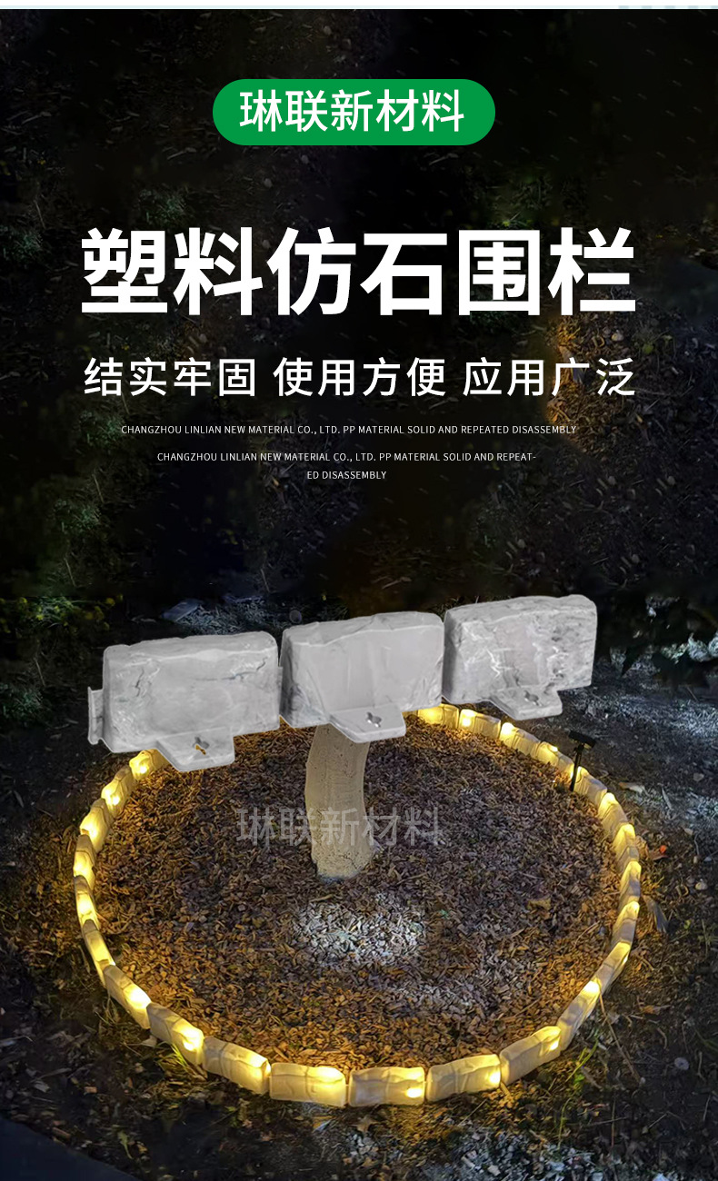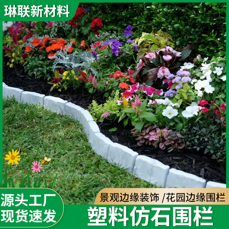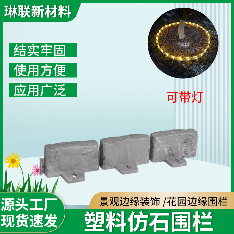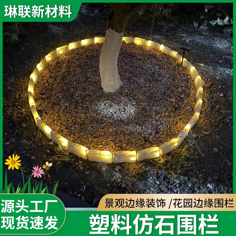 Производитель поставляет пластиковые садовые ограждения, имитирующие камень, для забора, двора, сада, деревьев, а также садовые ограждения и ограждения для защиты.