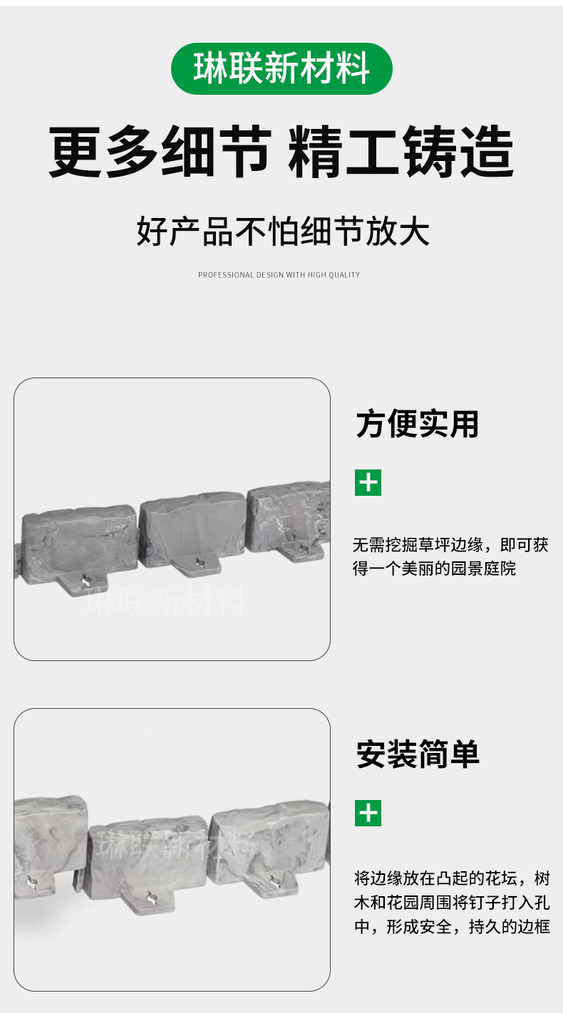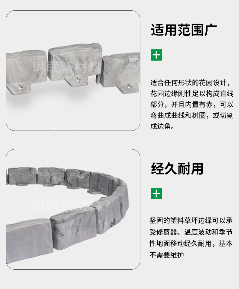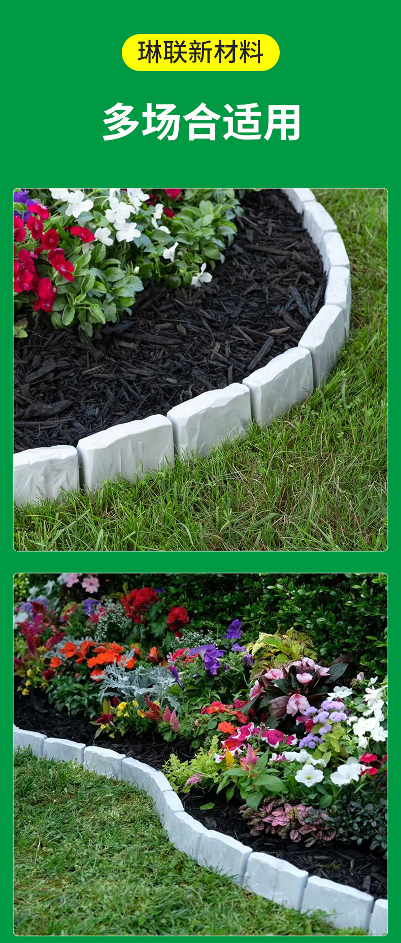 Производитель поставляет пластиковые садовые ограждения, имитирующие камень, для забора, двора, сада, деревьев, а также садовые ограждения и ограждения для защиты.