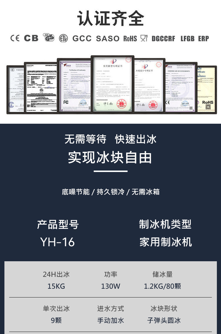 机器配置均按照国外认证的ETL、CE、CB等证书上申报的配件配置生产