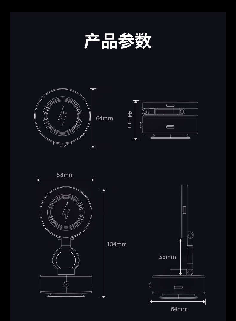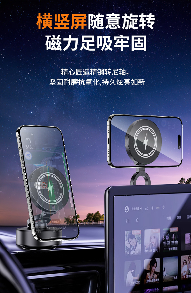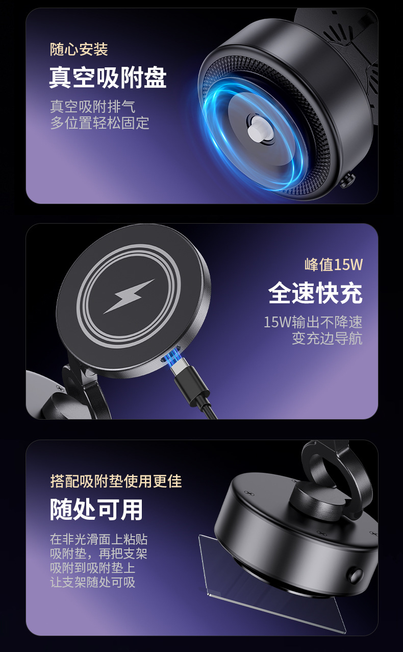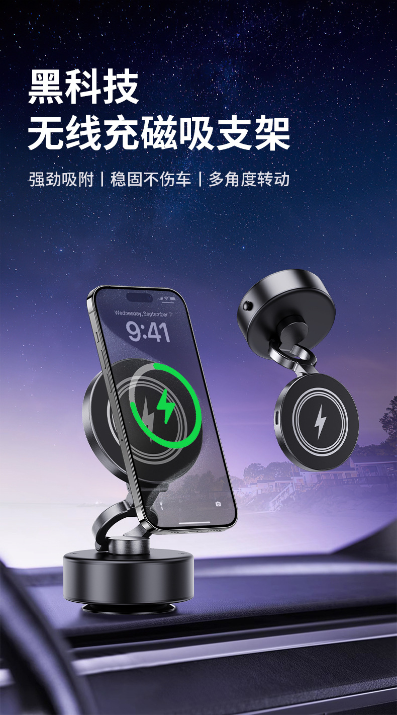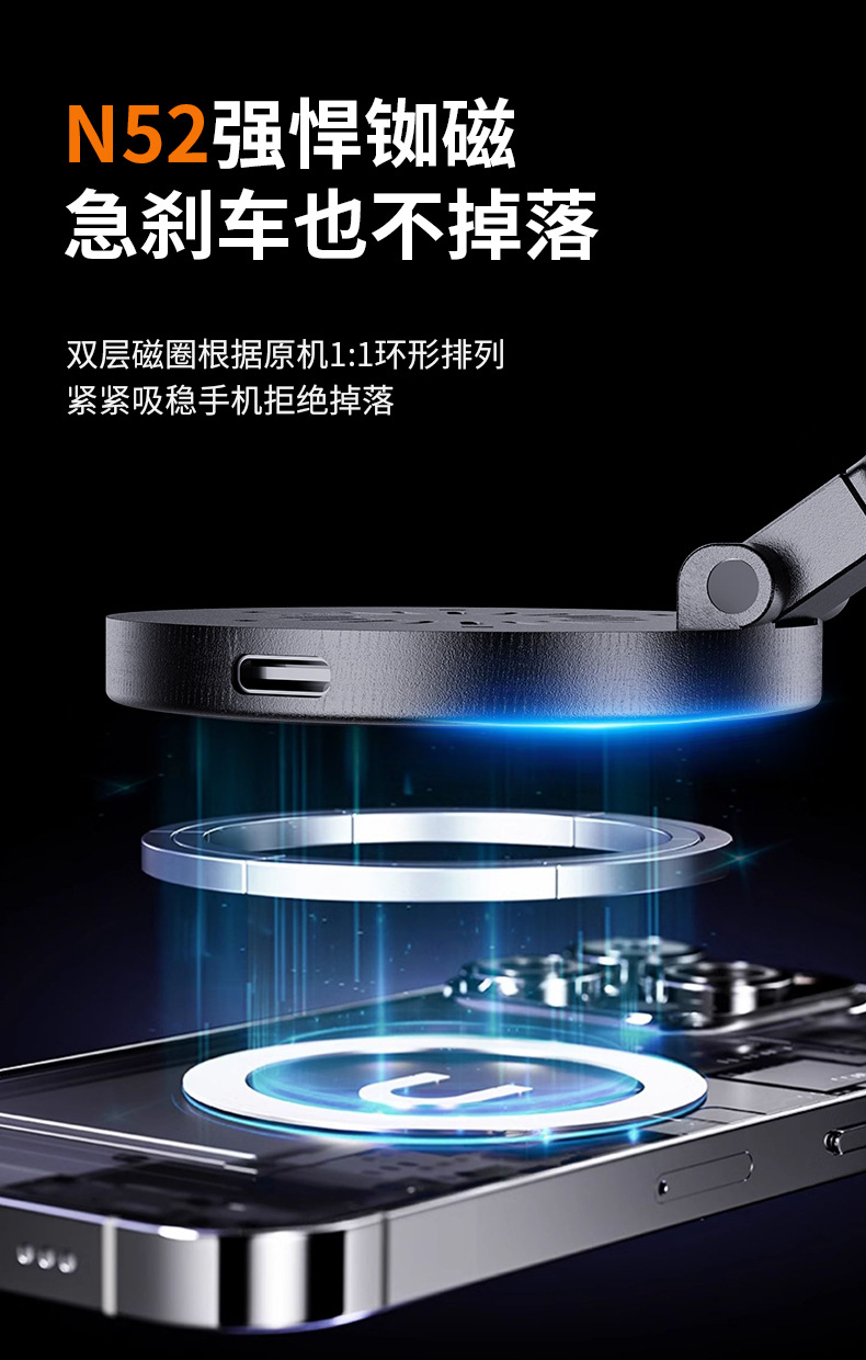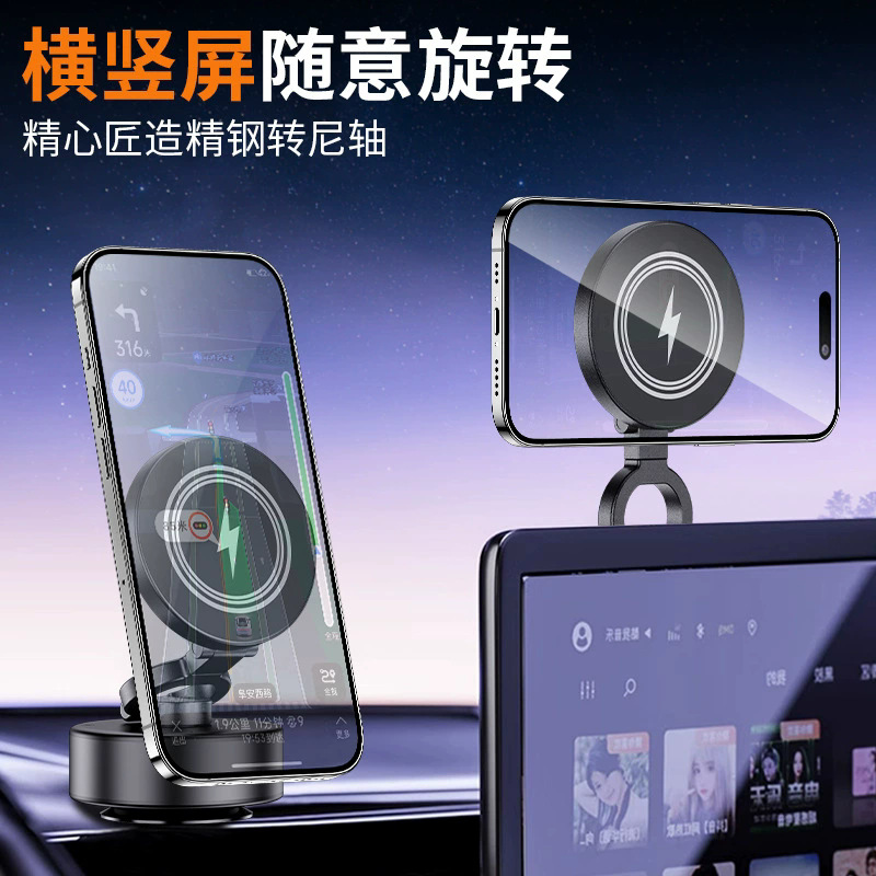 新款折叠多角度旋转车载手机支架15W无线快充magsafe磁吸手机支架