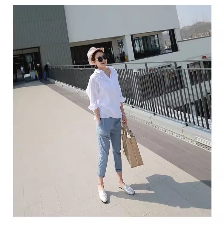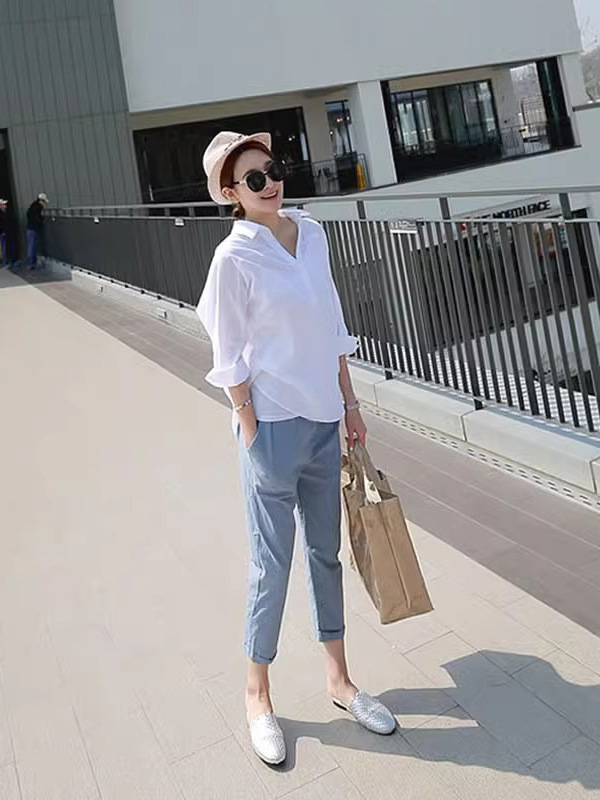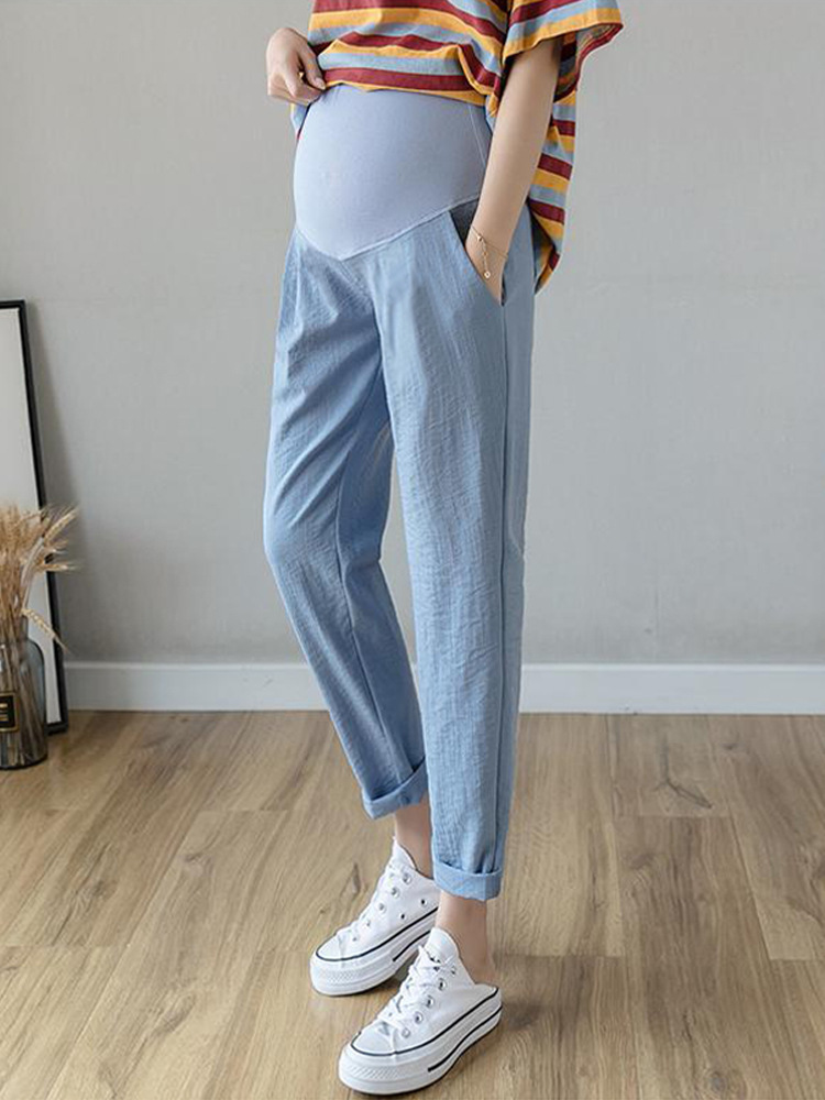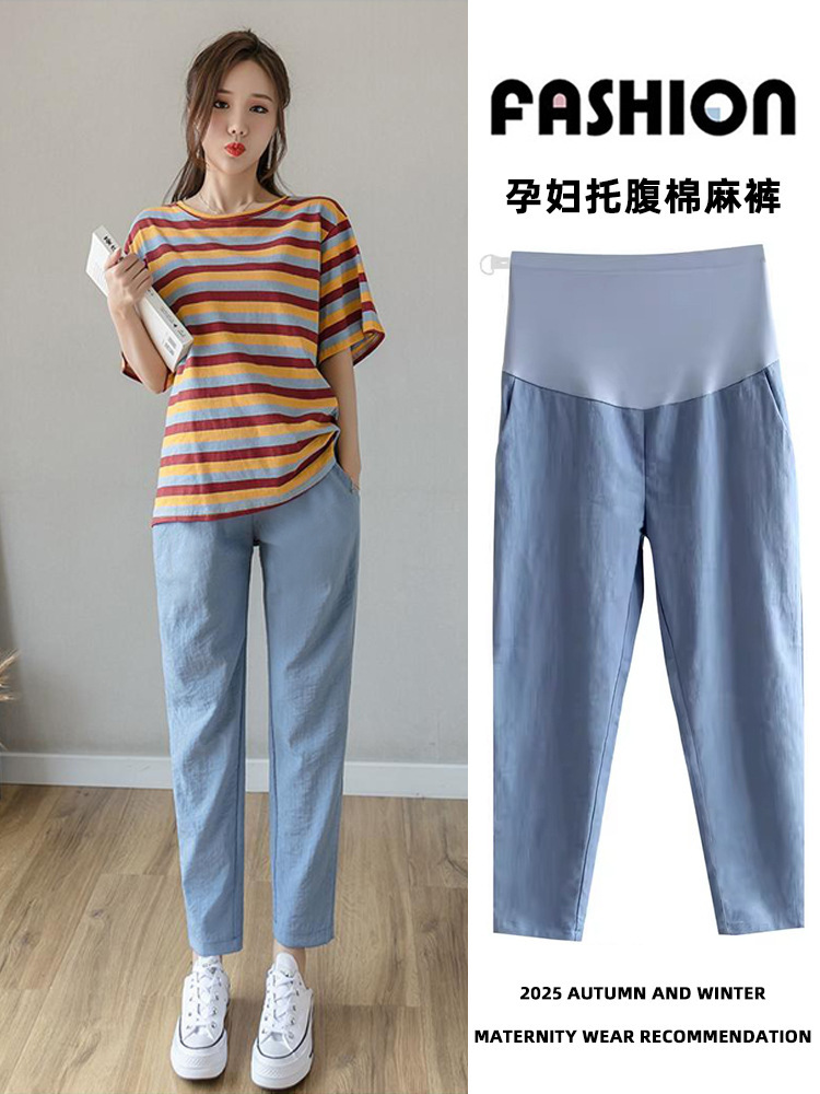 Брюки для беременных, новинка лета 2022 года, свободные универсальные брюки для бега больших размеров в корейском стиле с высокой талией и перекрестной поддержкой живота, широкие брюки