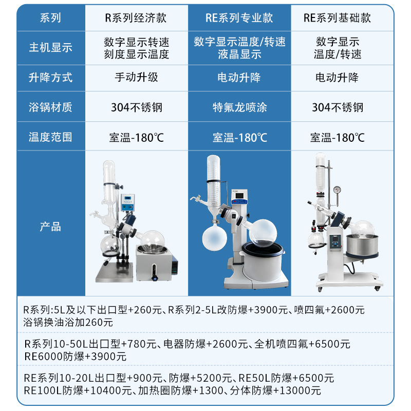 R201D ручной подъем [вращающаяся бутылка 1/2л]; R301 ручной подъем [вращающаяся бутылка 3л]; R501 ручной подъем [вращающаяся бутылка 5л]; R1002 ручной подъем [вращающаяся бутылка 10л]; R2003 ручной подъем [вращающаяся бутылка 20л]; R3002 ручной подъем [вращающаяся бутылка 30л]; R5003 ручной подъем [вращающаяся бутылка 50л]; RE2000B автоматический подъем [вращающаяся бутылка 1/2л]; RE2000E автоматический подъем [вращающаяся бутылка 1/2л]; RE3000B автоматический подъем [вращающаяся бутылка 3л; RE3000E автоматический подъем [вращающаяся бутылка 3л]; RE5000B автоматический подъем [вращающаяся бутылка 5л]; RE5000E автоматический подъем [вращающаяся бутылка 5л]; RE5210 автоматический подъем [вращающаяся бутылка 10л; RE5220 автоматический подъем [вращающаяся бутылка 20л]; RE5250 автоматический подъем [вращающаяся бутылка 50л]; RE52100 автоматический подъем [вращающаяся бутылка 100л]; Индивидуальные и дополнительные специальные снимки