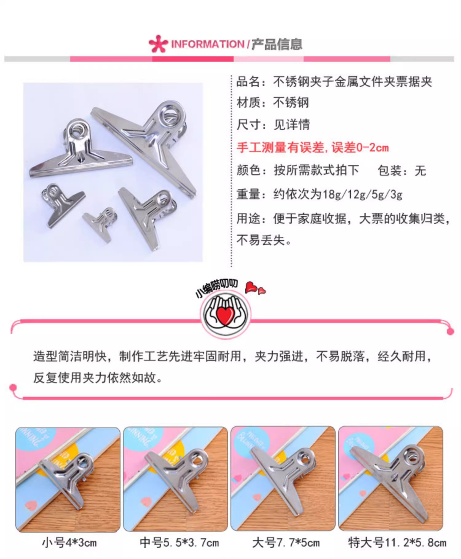 Зажим из нержавеющей стали, папка для файлов, зажим для билетов Yamagata, зажим с плоской головкой, зажим для купюр, зажим для одежды, большой и маленький зажим, железный зажим