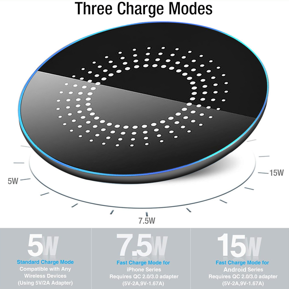 Ультратонкий круглый QI15W Беспроводное зарядное устройство Подарок оптом подходит для Apple Huawei 10W настольный телефон беспроводной зарядки