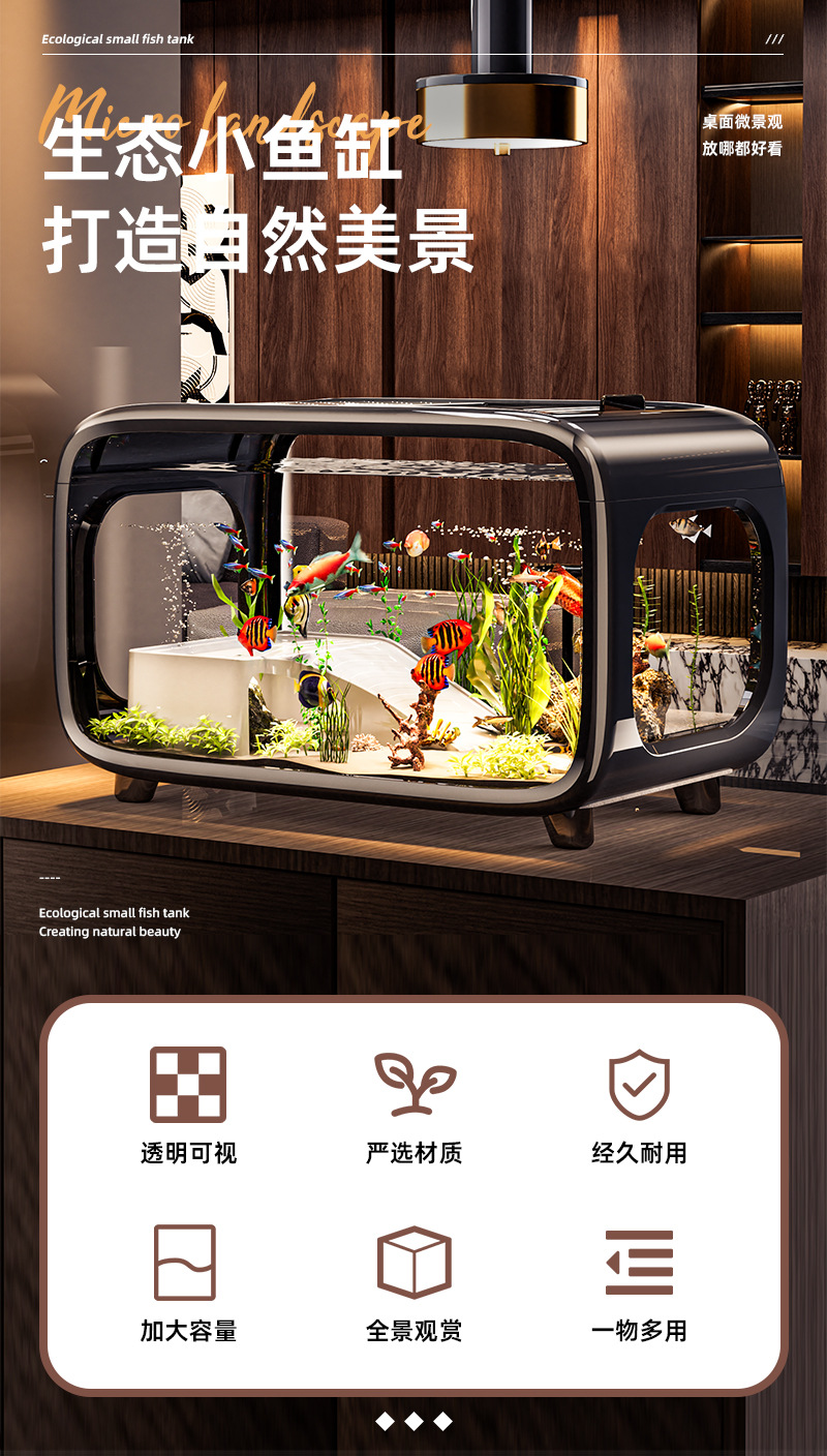 Креативный аквариум с прозрачным покрытием, настольный аквариум, экологический резервуар с золотой рыбкой, украшение для гостиной, ландшафтный дизайн, декоративный аквариум с черепахой