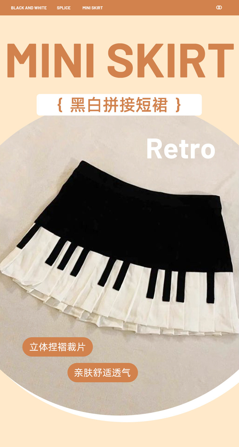 Винтажное черно-белое пианино чувство дизайна vintage художественная юбка Летнее новое маленькое платье