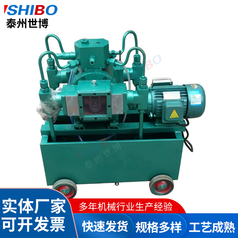 本公司生产的系列电动试压泵是专供各类压力容器、管道、锅炉、钢瓶、阀门、压力容器、消防器材作实验室和水压试验中获得高压液体的理想设备。试压泵产品及配套试压、试验工程,已应用在航空领域的试压试验,并且在国防科研重点开发项目中应用。为我国重大的科研项目如:高压爆破试验、深海试验、空间技术、高温高压试验、异形管试验等,并做出了重大贡献。该泵系按水压试验要求而特殊设计。在试压的初始阶段具有较大流量、能迅速充液和升压,以缩短实验时间。当压力超过1.6MPa后、为使试压过程能较平稳而缓慢地进行。则流量自动减少。所以本泵在高、低压时有两种流量,并能自动变换,凡在额定排出压力以下,可进行任意数值的水压试验。