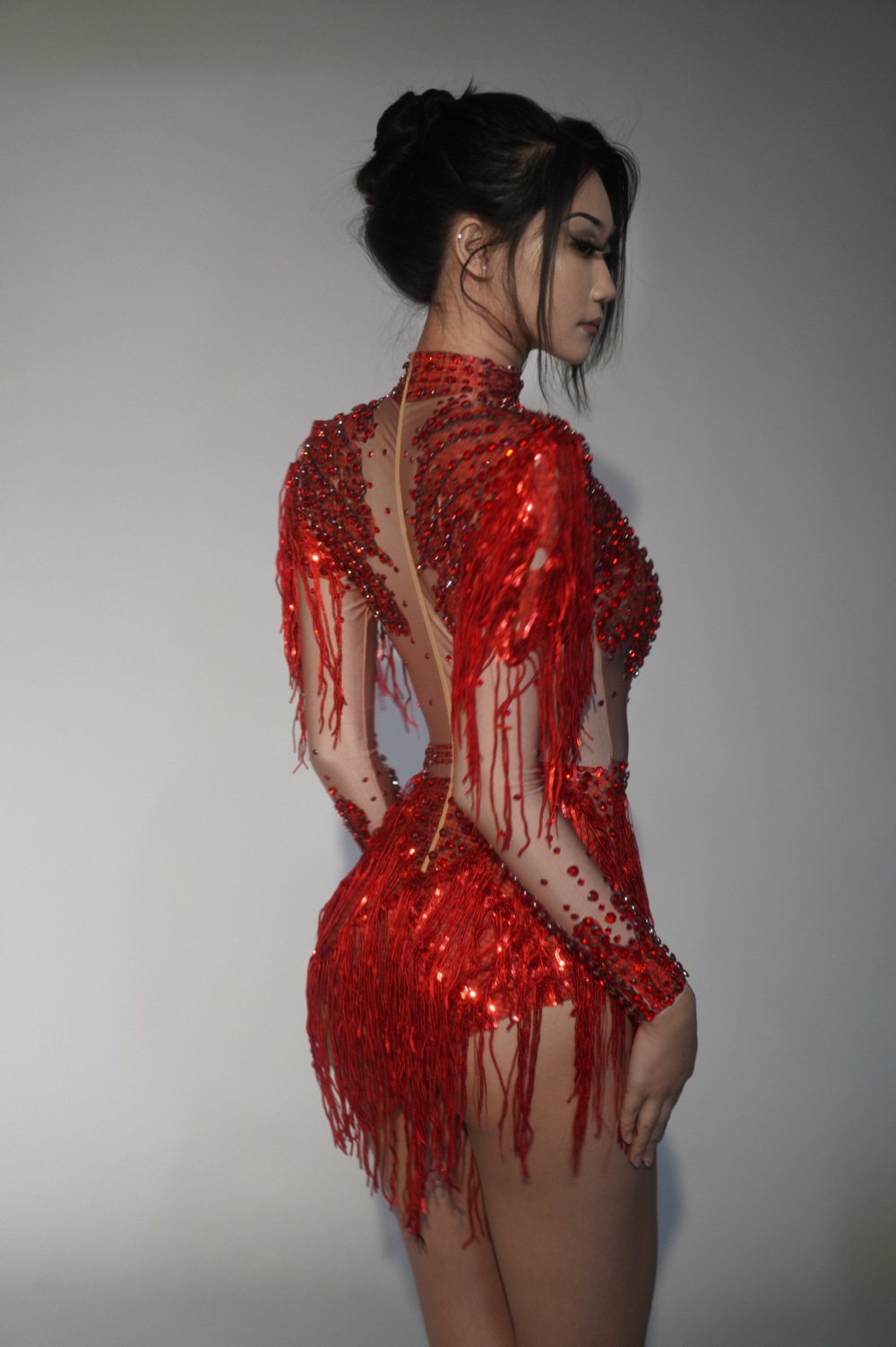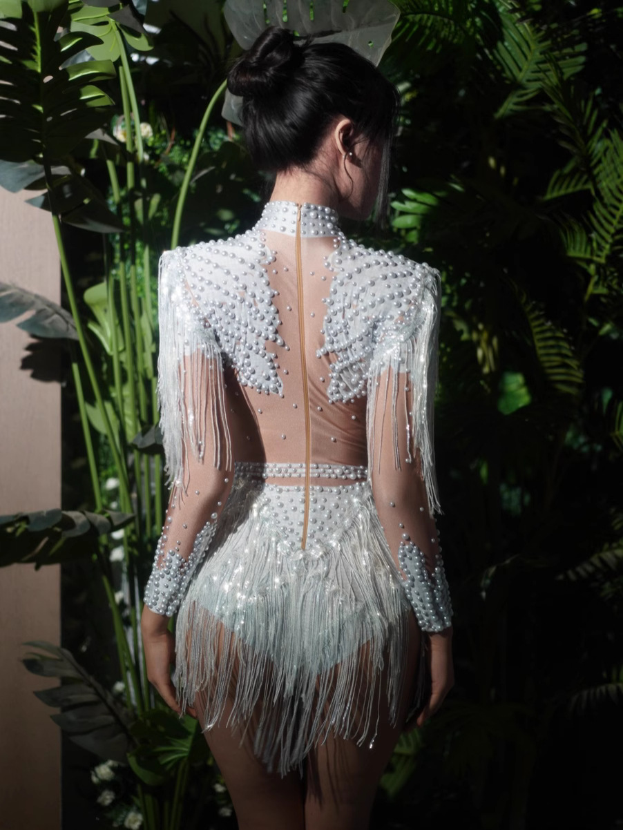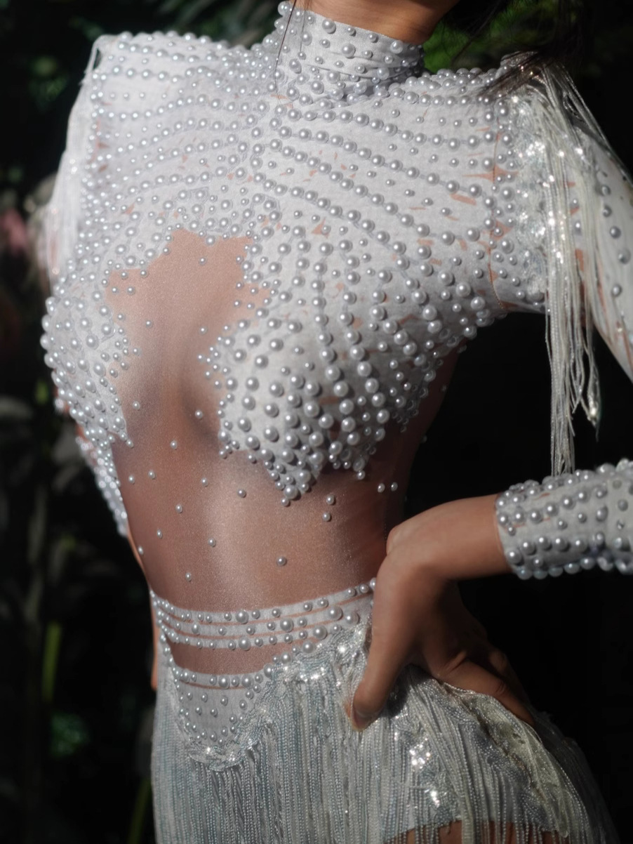 Женский блестящий комбинезон с кисточками для латиноамериканских танцев, одежда для выступлений в ночном клубе