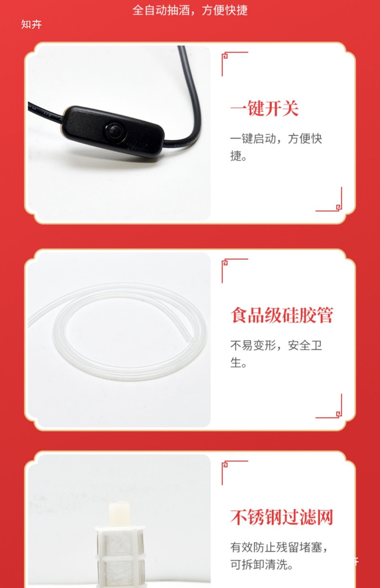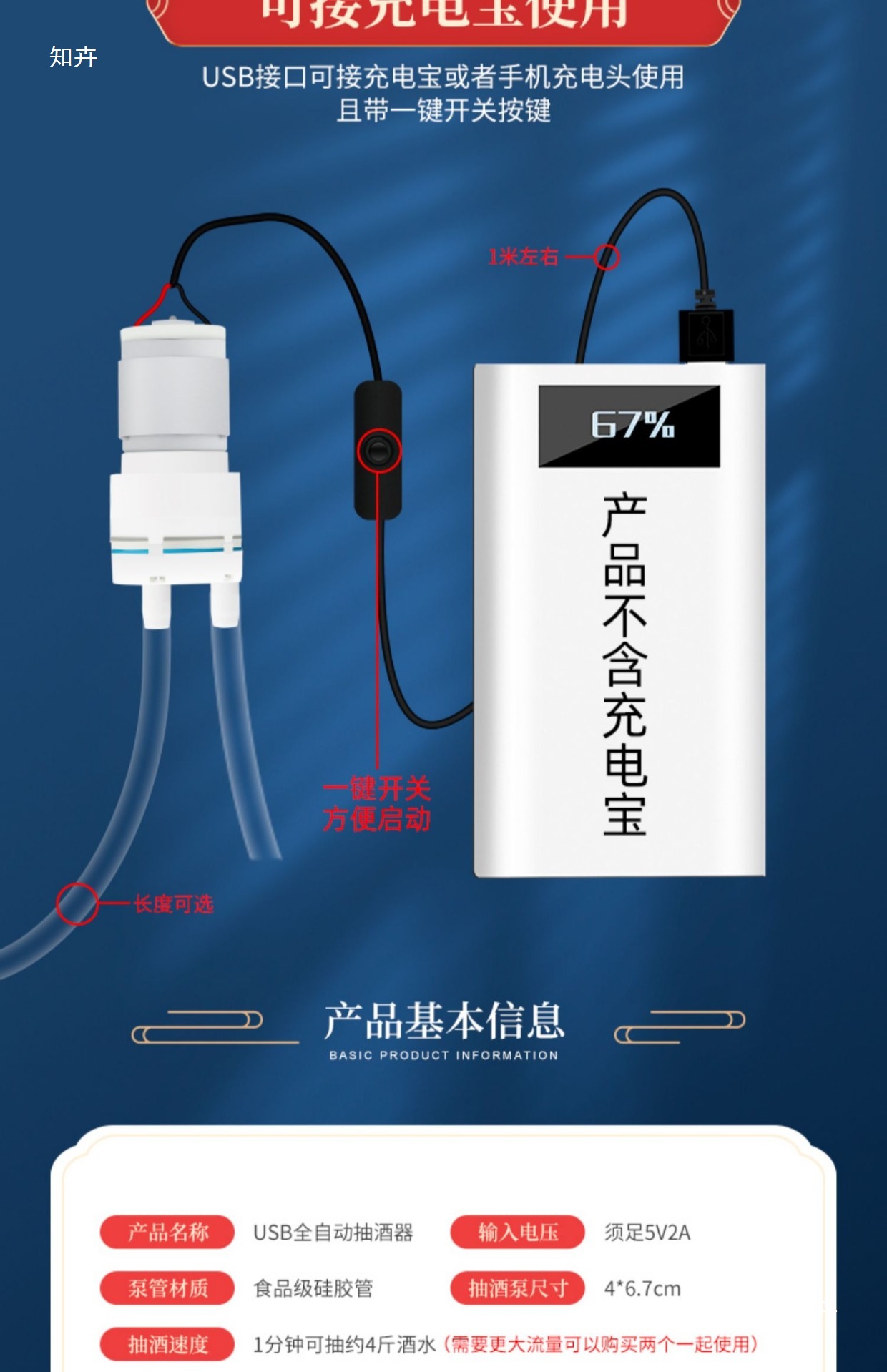 USB-насос для вина с переключателем + фильтр + силиконовая трубка 1.6m; USB-насос для вина с переключателем + фильтр + силиконовая трубка 2m; USB-насос для вина с переключателем + фильтр + силиконовая трубка 2.5m; USB-насос для вина с переключателем + фильтр + силиконовая трубка 3m; Аксессуары: зарядная головка от 220 В до 5 В, 2 А, один USB-порт