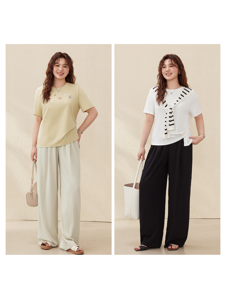 [Ленивый и расслабляющая повседневная, тонкая и дикая штаны] Felly Show большой размер женский толстый mm2025 летний новый