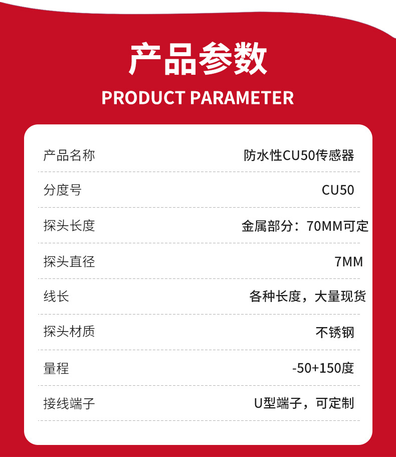 Датчик термометра, трехпроводной, сопротивление нагреву, водонепроницаемый, медный сопротивление CU50, датчик температуры WZP-035