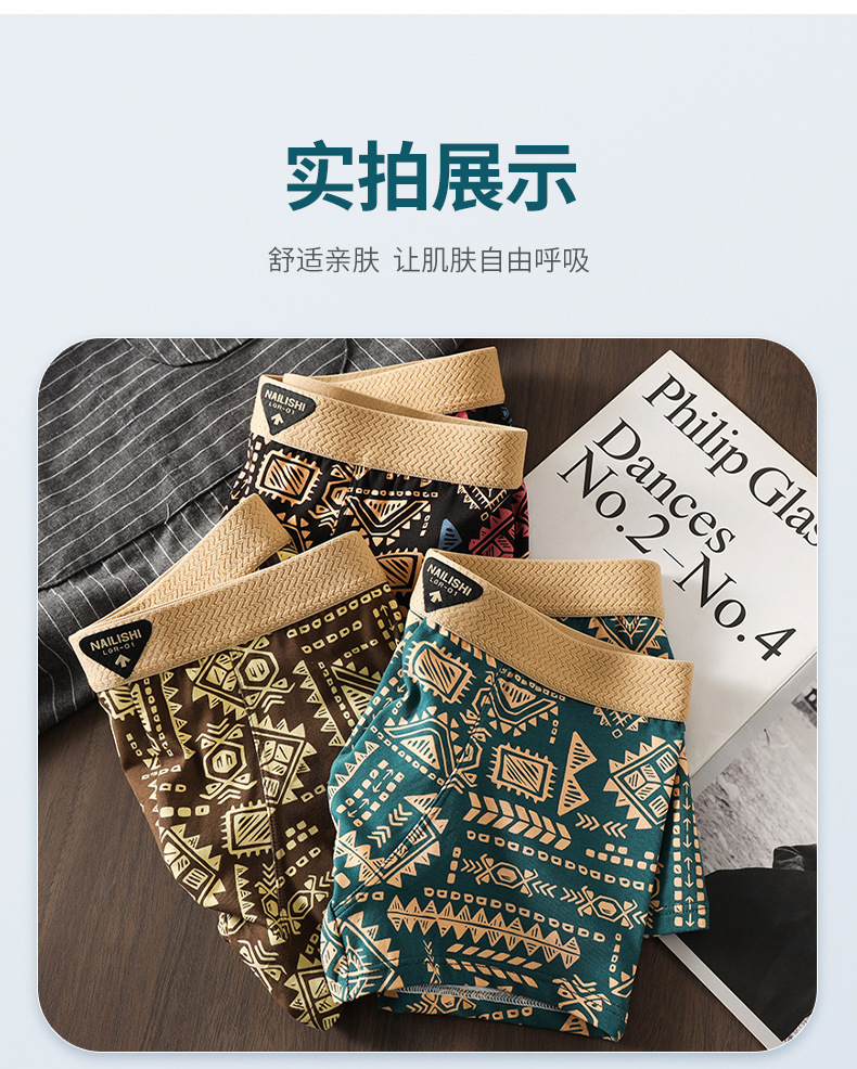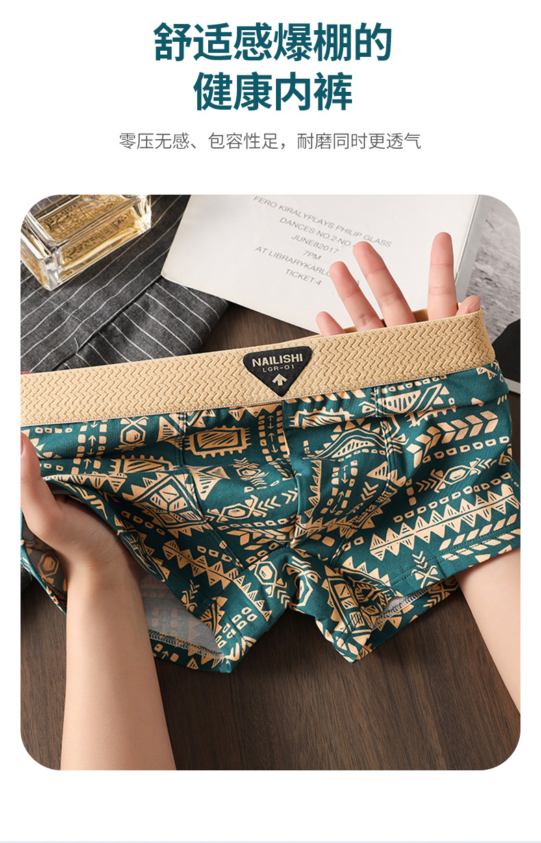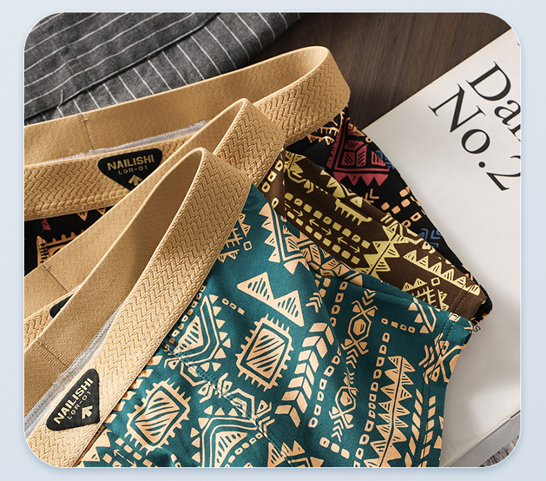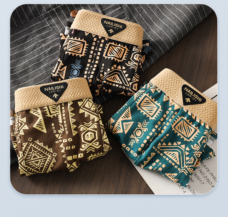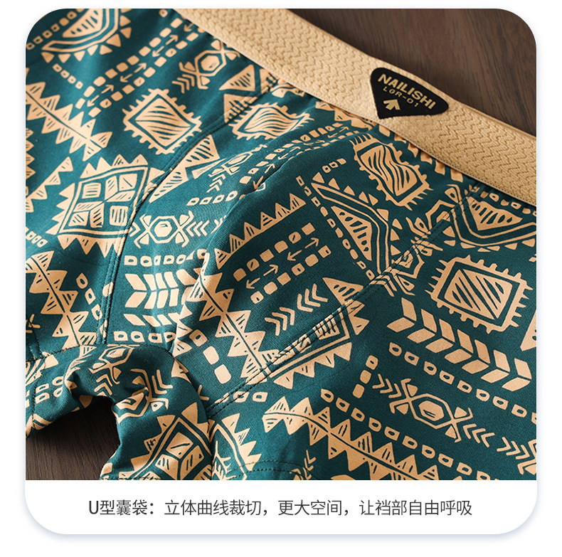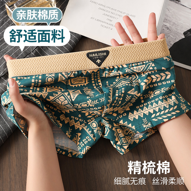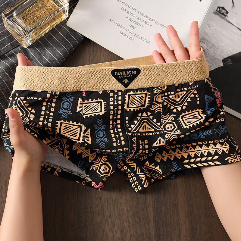 Мужские трусики удобные дышащие четвероногие брюки модные американские ретро национальные роговые брюки с роговыми брюками для мальчиков средней талии шорты