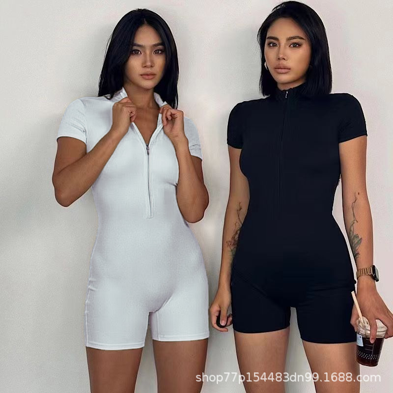 Трансграничная амазонка европейская и американская летняя молния с коротким рукавом йога комбинезон женские танцы фитнес облегающих видов спорта