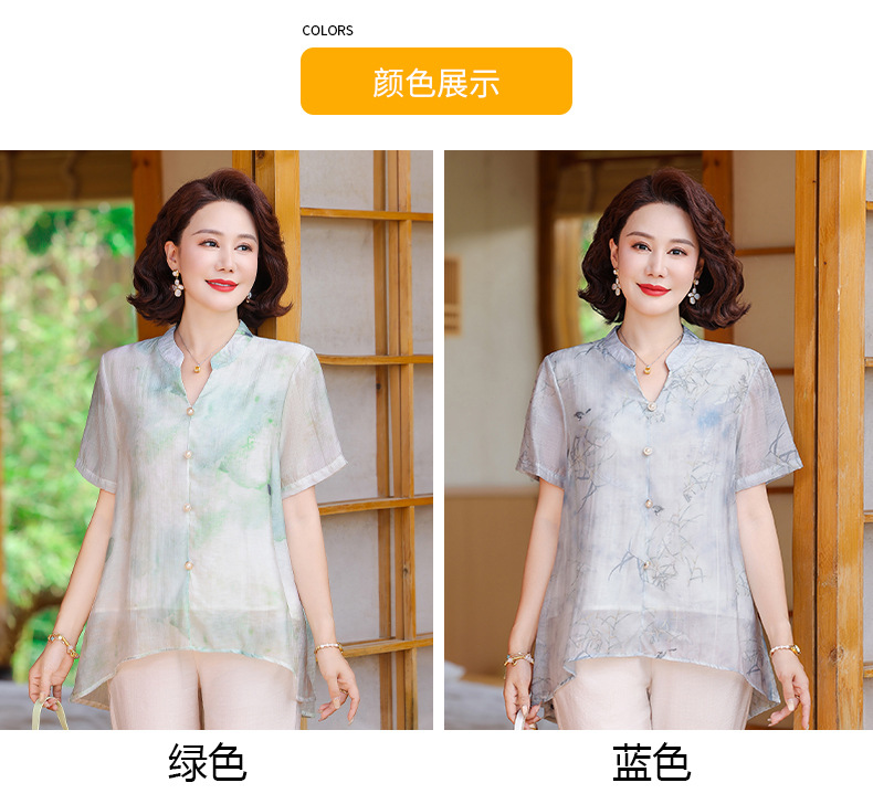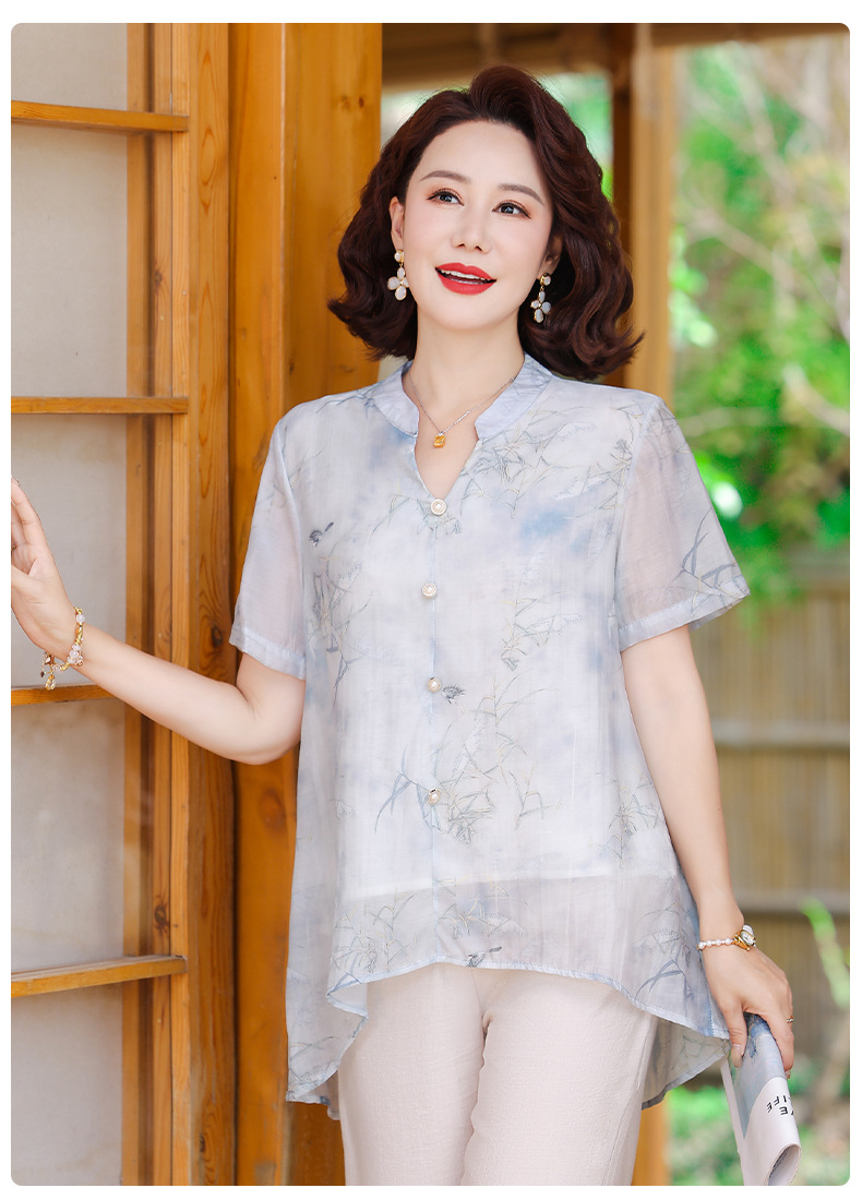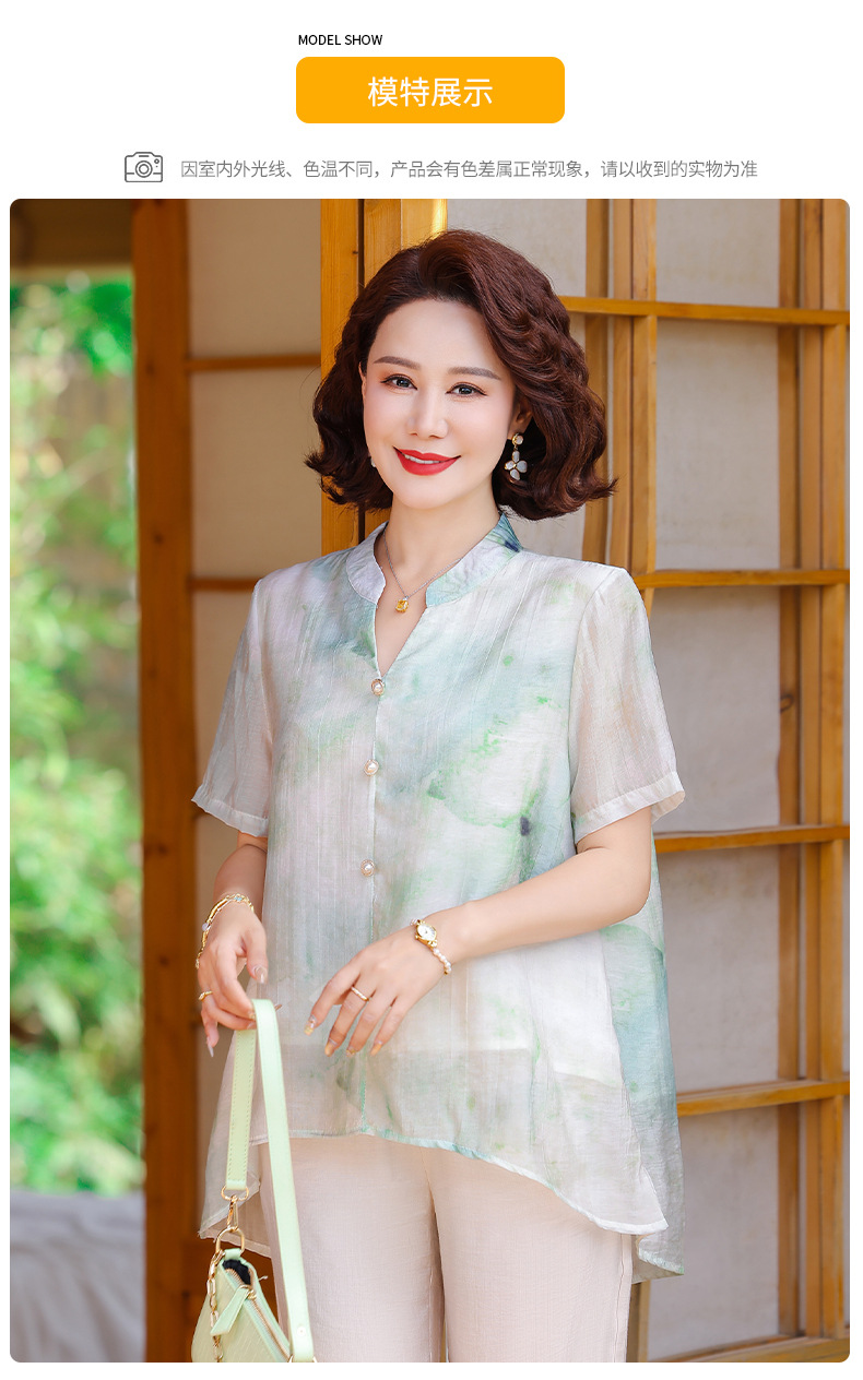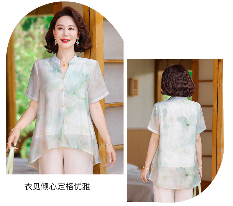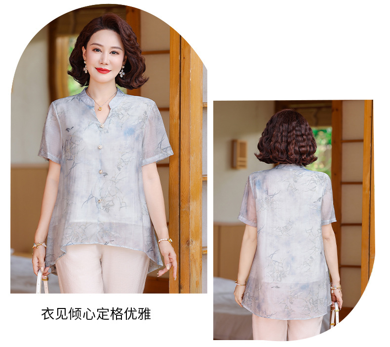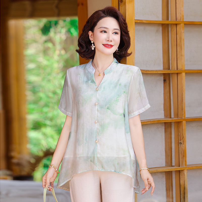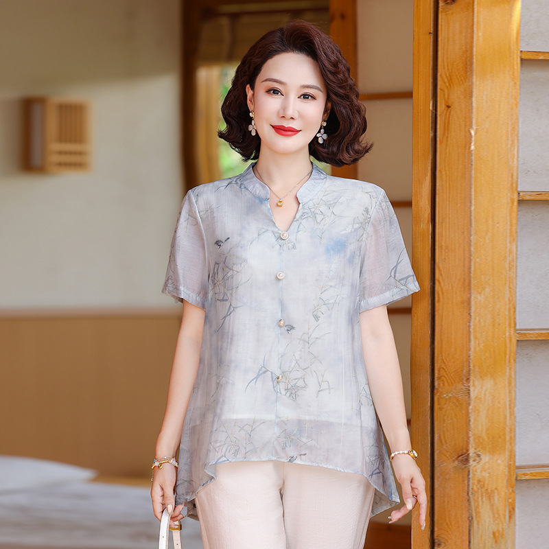Мама среднего возраста летняя шифоновая рубашка 2025 новый средний и пожилой леди рубашка с короткими рукавами показывает молодой топ
