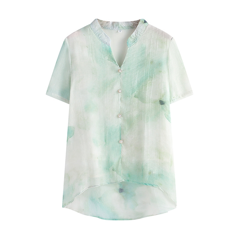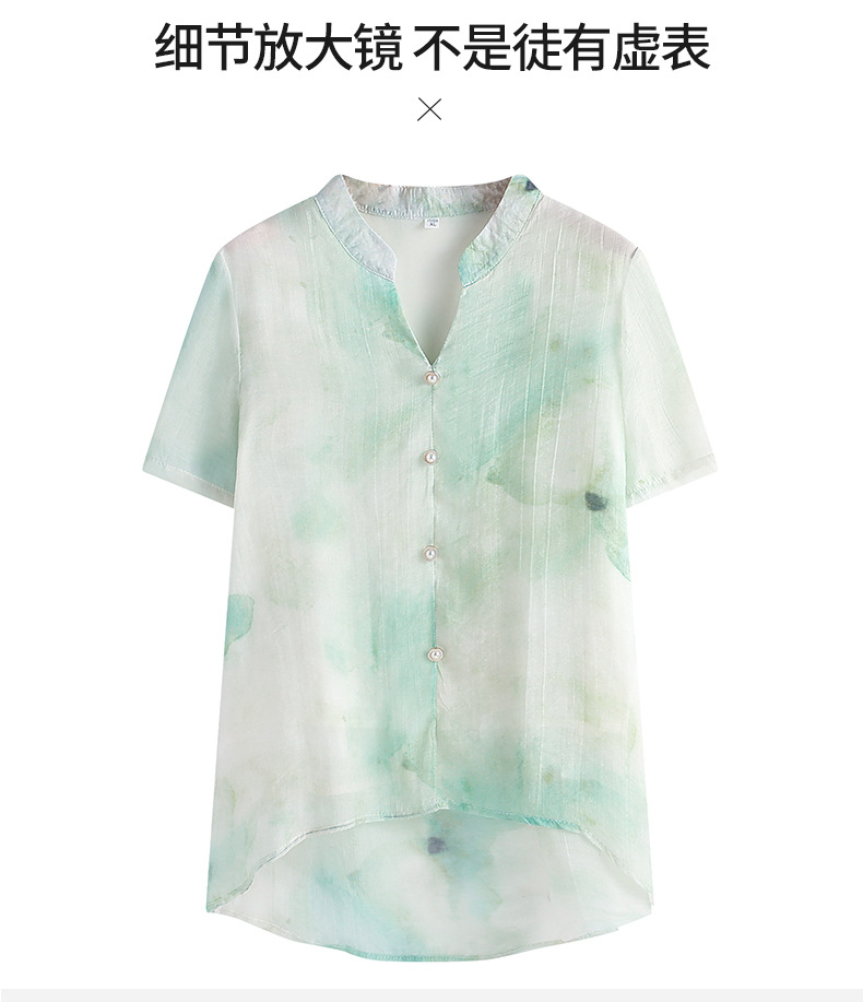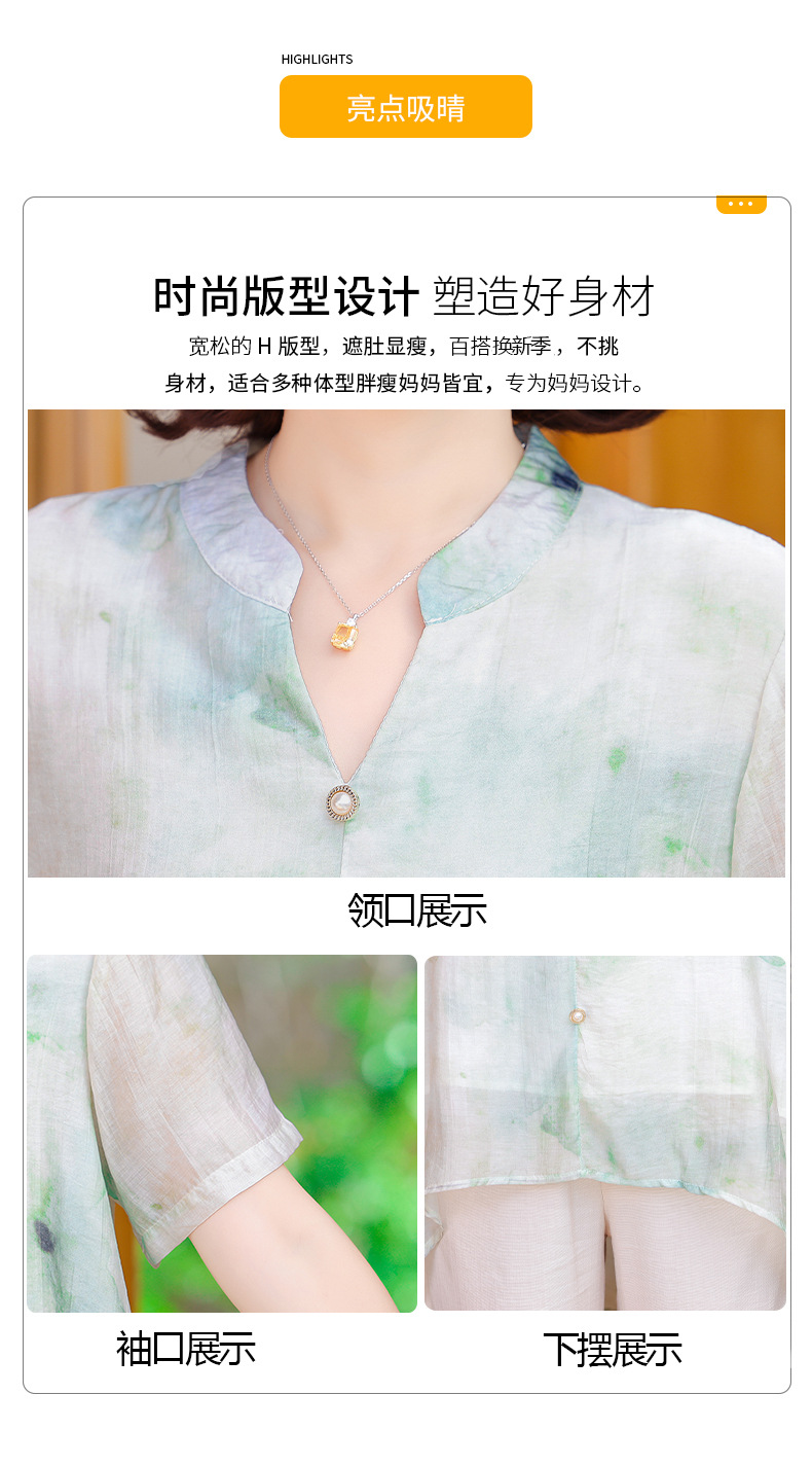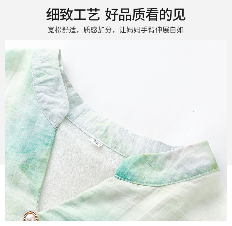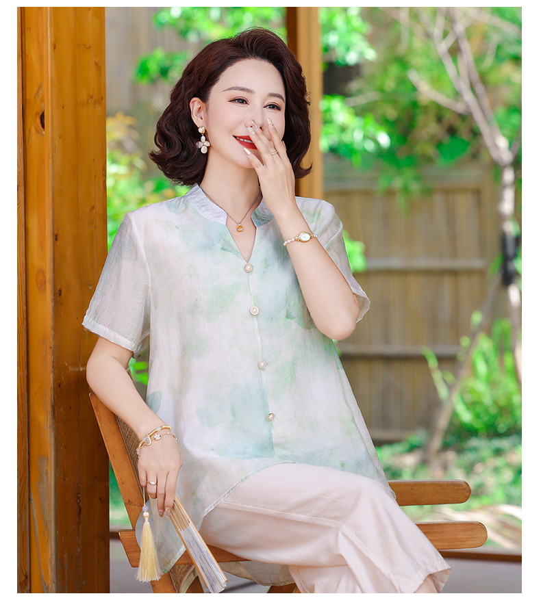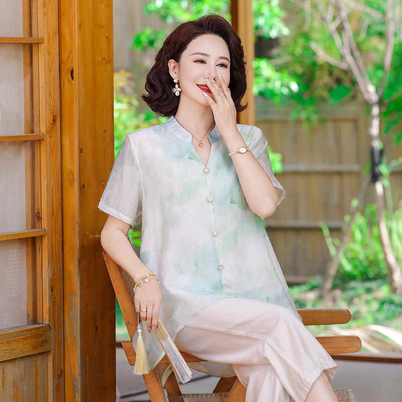 Мама среднего возраста летняя шифоновая рубашка 2025 новый средний и пожилой леди рубашка с короткими рукавами показывает молодой топ