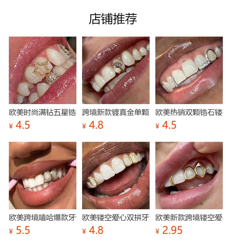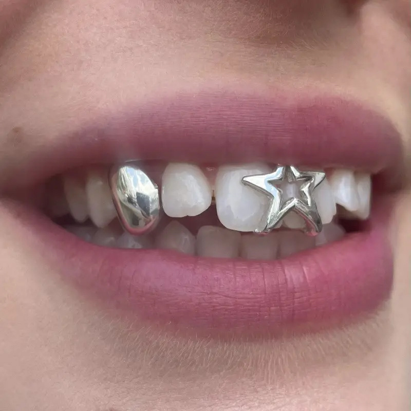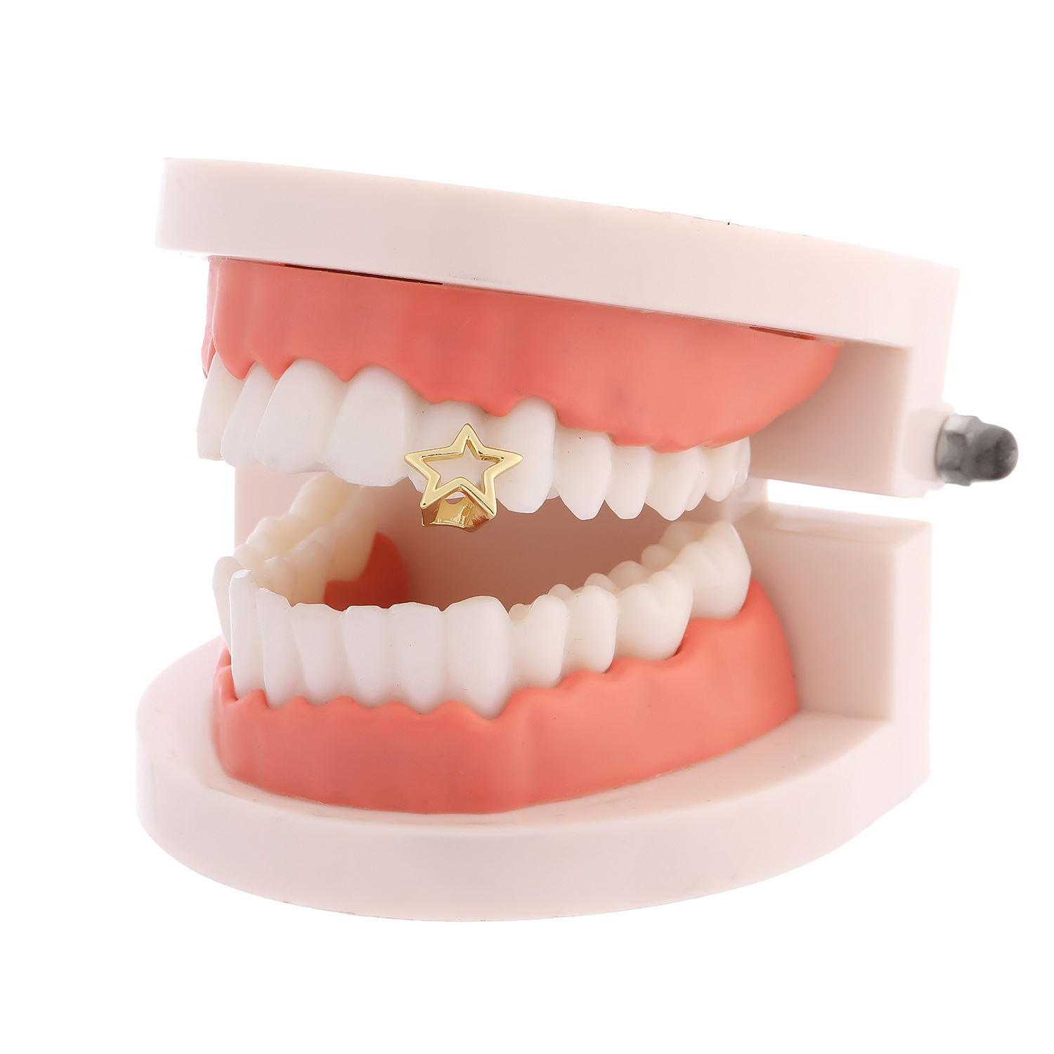 Трансграничные горячие продажи, нишевый дизайн, пятиконечная звезда, зубные украшения, брекеты в стиле хип-хоп, рэп, модные простые золотые брекеты, ювелирные изделия