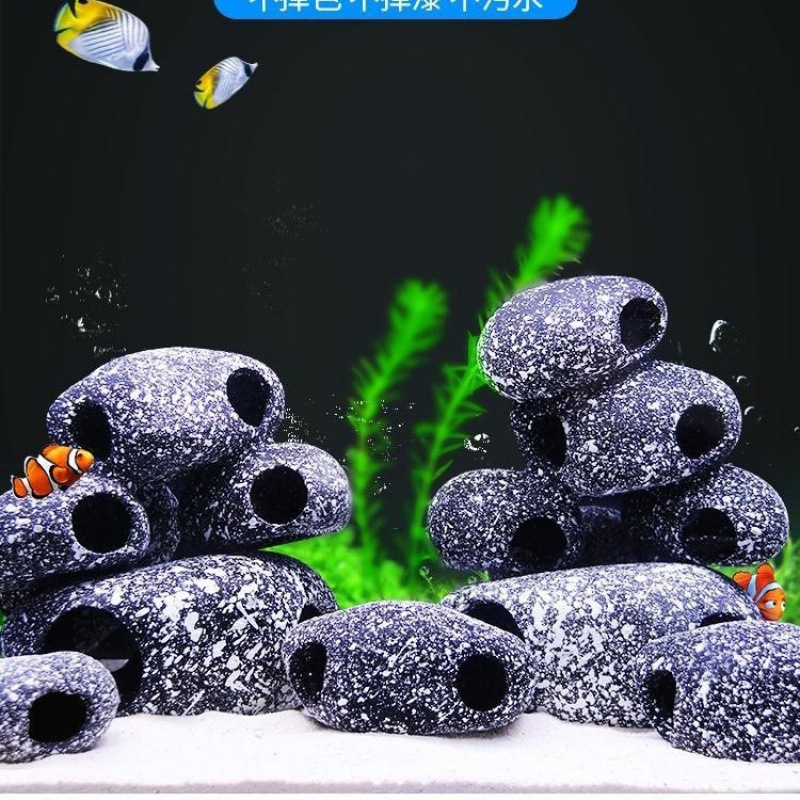 Резервуар для разведения рыбы и креветок, глиняный горшок, укрытие для короткоталых рыбок, аквариум с тремя озерами, ландшафтные каменные украшения, набор из 5 предметов